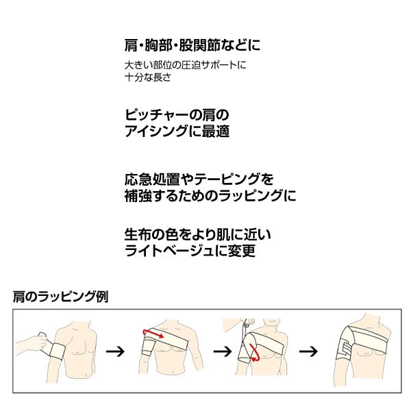 ●肩・胸部・股関節などの大きい部位の圧迫サポートに十分な長さ