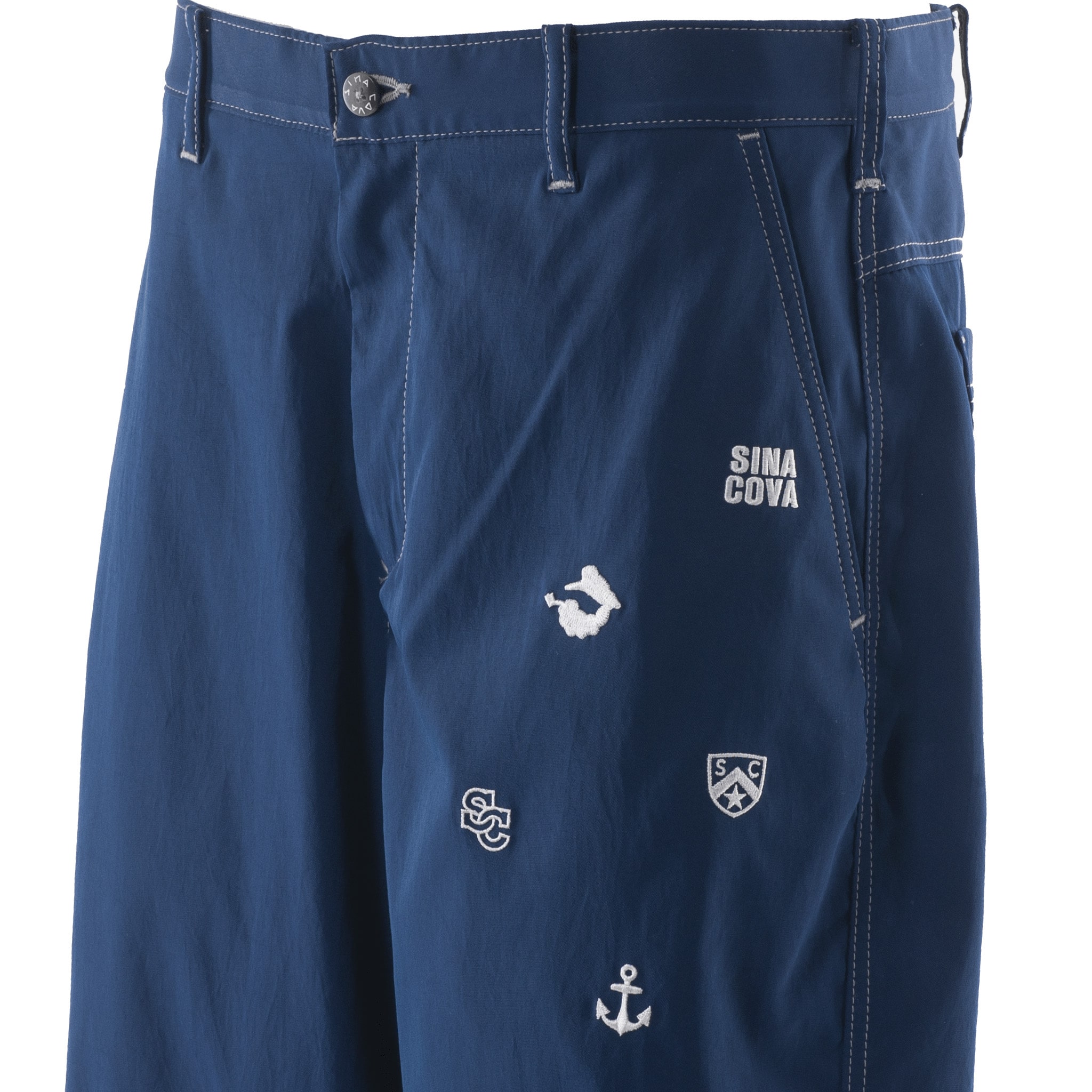 従来のシナコバスポーツ(ゴルフ)パンツに比べ全体的にタイトなシルエットのノータックパンツです。左ももにシナコバモチーフを刺繍でデザインし右バックポケットにSINA COVA文字を2色のカラーでデザインしました。生地にはUVカット・接触冷感・吸水速乾・透け防止の素材を使用した高機能パンツです。・ゴルフパンツ・UVカット・ひんやり素材の接触冷感・吸水速乾・カラー:ホワイト透けにくい・ややタイトなシルエット【SINA COVA 2023 Spring & Summer Style Book】掲載商品