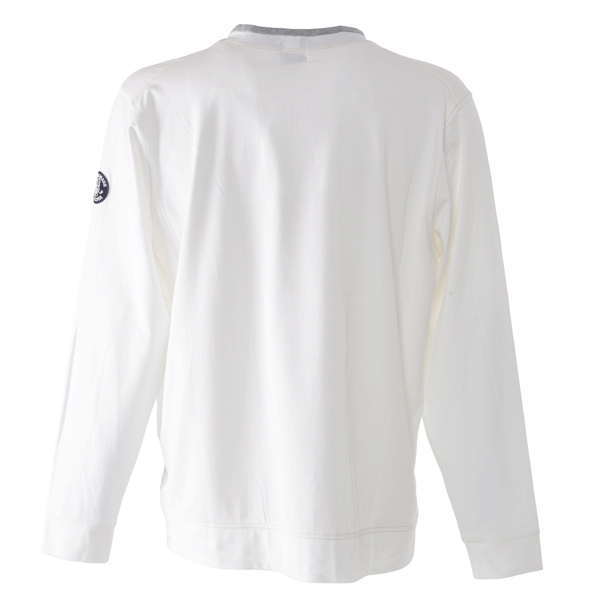 ネックはやや衿の高くなっているモックネックで切替デザインにしアクセントとカラーオフホワイトとオフホワイトは首周りの汚れも目立ちにくくなります。
