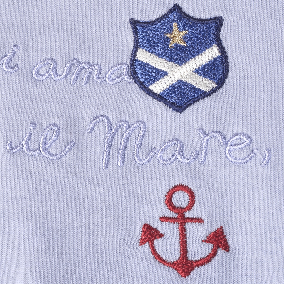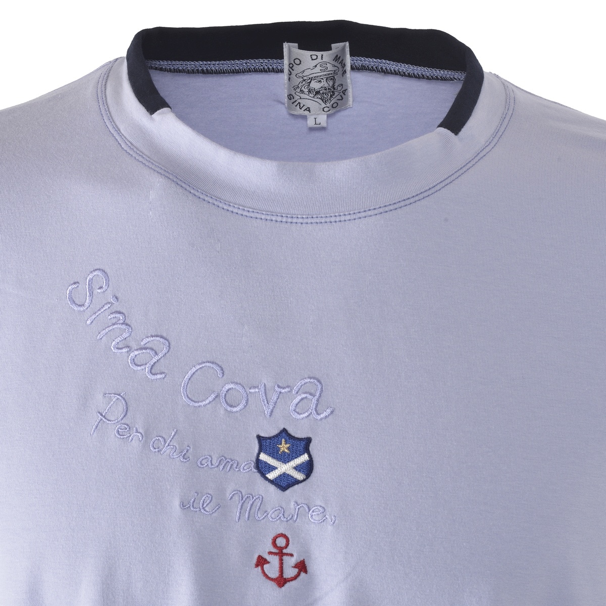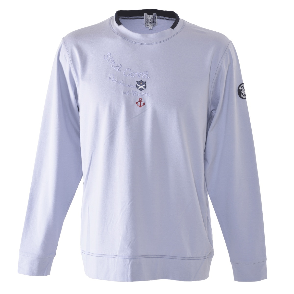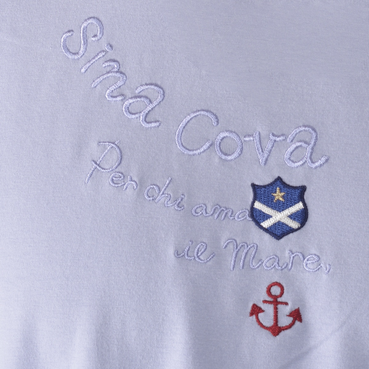 SINACOVA文字、イカリの刺繍やエンブレム調のワッペンをデザインしたモックネック長袖Tシャツです。刺繍のデザインは上着を着た際に程よく見えるように中央付近にデザインしました。ネックはやや衿の高くなっているモックネックで切替デザインにしアクセントとカラーオフホワイトとサックスは首周りの汚れも目立ちにくくなります。・オーガニックコットン使用・ベア天竺素材で高ストレッチ・なめらかな肌触り