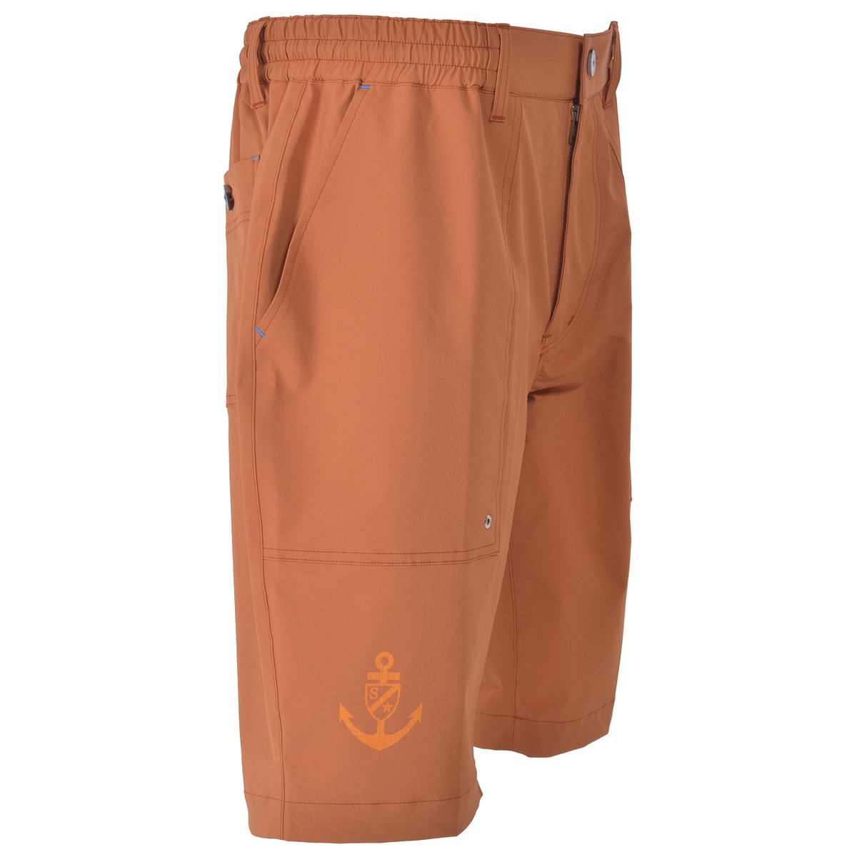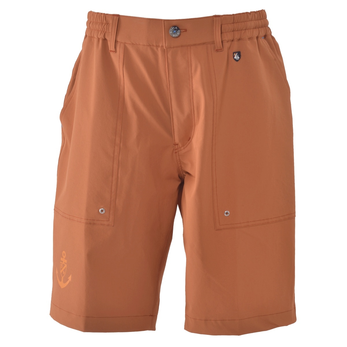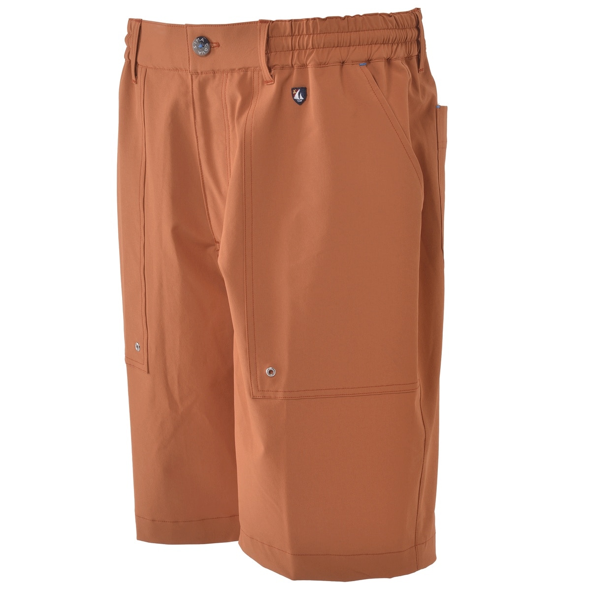 右裾にマリンモチーフのイカリ刺繍、左ベルトループ下部に小さなワッペンをあしらい、アクセントの鳩目をちりばめたショートパンツです。正面はストレートで後ろシャーリングに仕上げており、素材には2wayストレッチ、防シワ、接触冷感、UVカット、透湿など、多機能高品質素材を使用している為、機能性抜群のアイテムとなっています。・後ろシャーリング・2wayストレッチ・防シワ・透湿加工・接触冷感・UVカット【SINA COVA 2024 Spring & Summer Style Book】掲載商品モデル着用 カラー:ネイビー男性 身長:180cm / 着用:L size