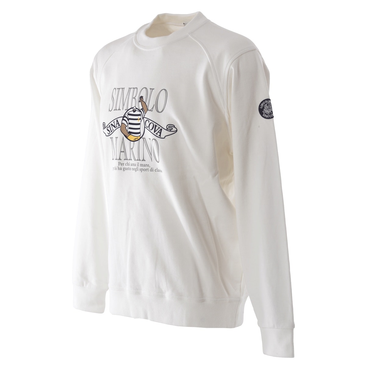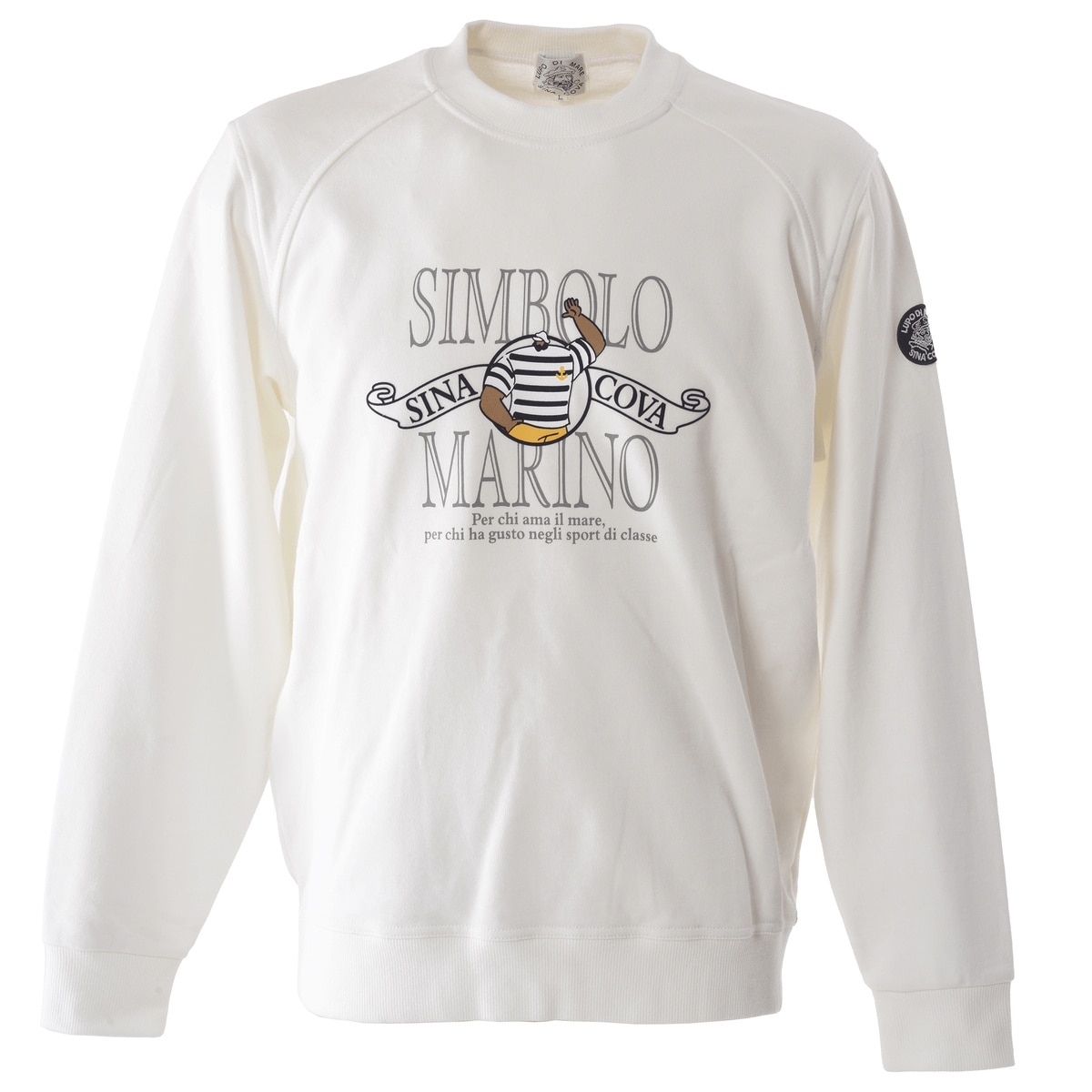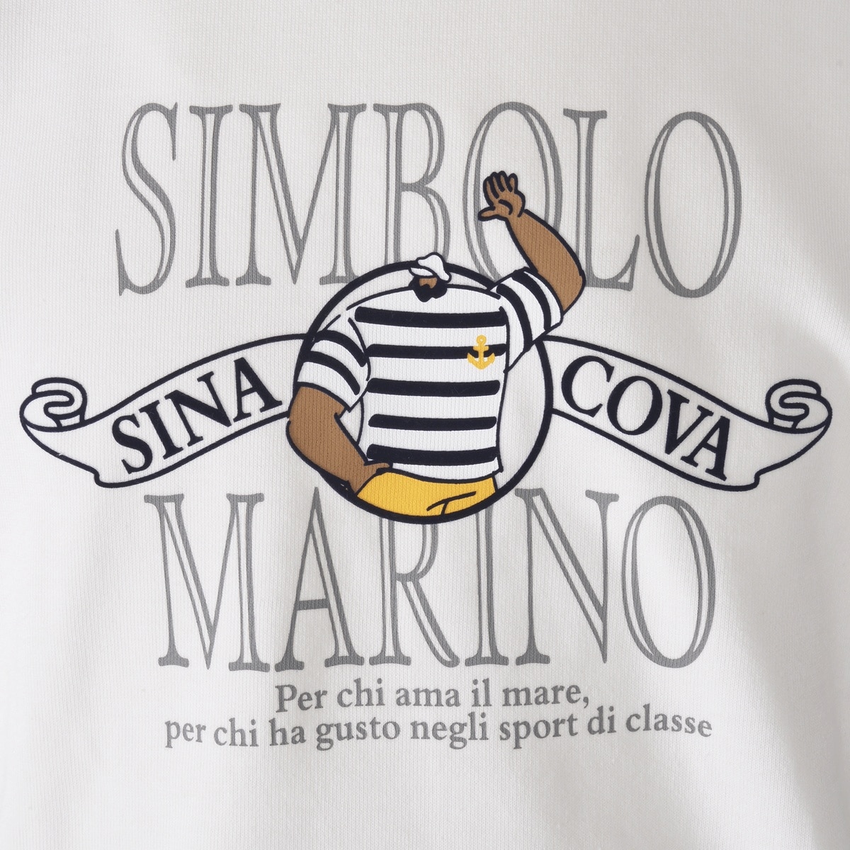 シナコバキャプテンとSIMBOLO MARINO文字をラバー、フロッキープリントでデザインしたクルーネックトレーナーです。ラグランスリーブのような切替のデザインが特徴です。生地には時間をかけてゆっくり編むことでストレッチ性、耐久性に優れ、ソフトなタッチながらもしっかりとしたコシのある一着です。・スウェットプルオーバー・裏毛・毛玉ができにくい・ハリとコシがある