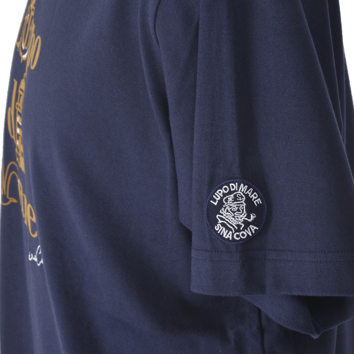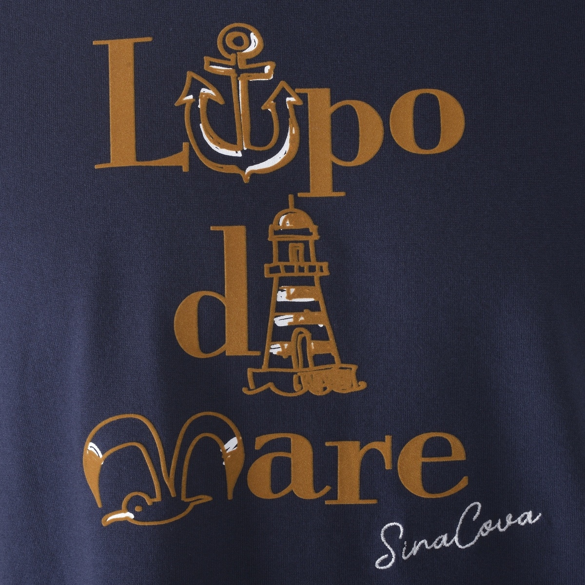 胸元にマリンモチーフのLUPO DI MAREをプリントした半袖Tシャツです。シルエットは従来のTシャツと同様のシルエットですが、素材にはソフトでコシのあるコーマ糸を使用している為、くたびれにくく、柔らかな仕上がりになっております。シンプルでありながらも、シナコバらしいマリンテイストを加えたヘビーユーズアイテムです。・半袖Tシャツ・シンプル・コーマ糸・マリンテイストモデル着用カラー:ホワイト男性 身長:180cm / 着用:L size