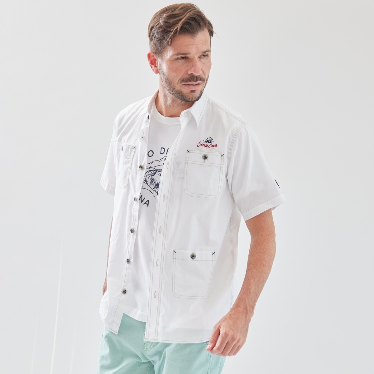 [SINA COVA(シナコバ)]半袖ワークシャツ 24124520 オフホワイト M