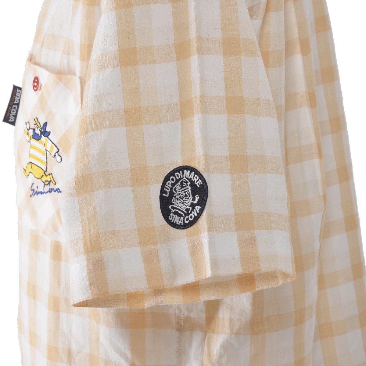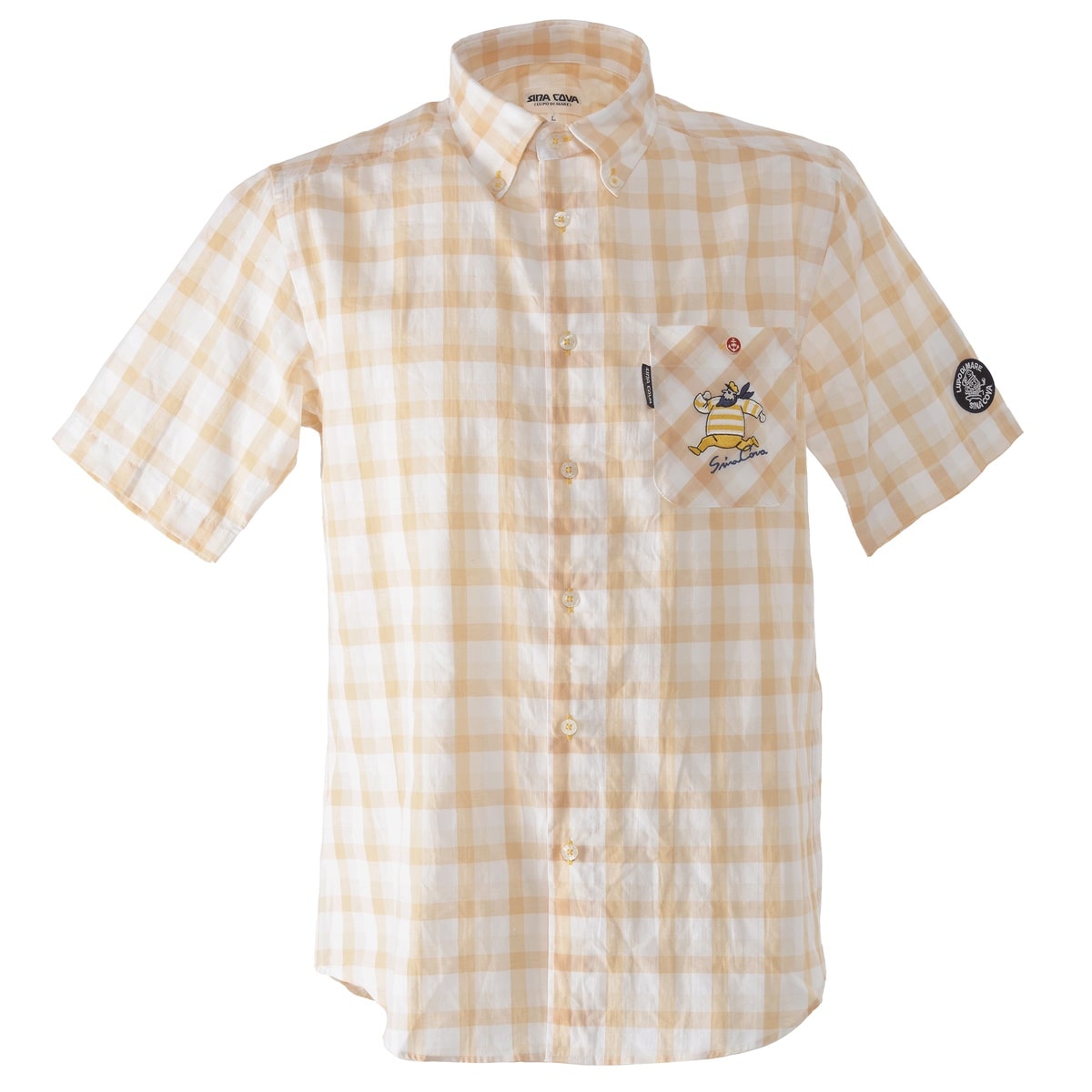 左胸ポケット部分にキャプテンのアップリケ刺繍をあしらった半袖ボタンダウンシャツ。素材には綿と麻を織り交ぜた生地を使用しており、やわらかく軽い仕上がりで、爽やかな雰囲気を演出してくれます。暑い季節のカジュアルシーンにはもちろん、Tシャツの羽織りアイテムとしても使えるマルチアイテムとなっておりますので、長くなってきた夏のベストアイテムとしてお使いください。・ヘビーユーズアイテム・半袖ボタンダウンシャツ・アップリケ刺繍・左胸:ポケット×1【SINA COVA 2024 Spring & Summer Style Book】掲載商品モデル着用 カラー:イエロー、ブルー男性 身長:180cm / 着用:L size※こちらの生地は生地表面に細かい綿カスが見られますが、天然の素材を楽しむためにあえてそのままで生地のベースを染色をしない「綿カス残し」という手法の商品です。天然素材のナチュラルな風合いをお楽しみください。
