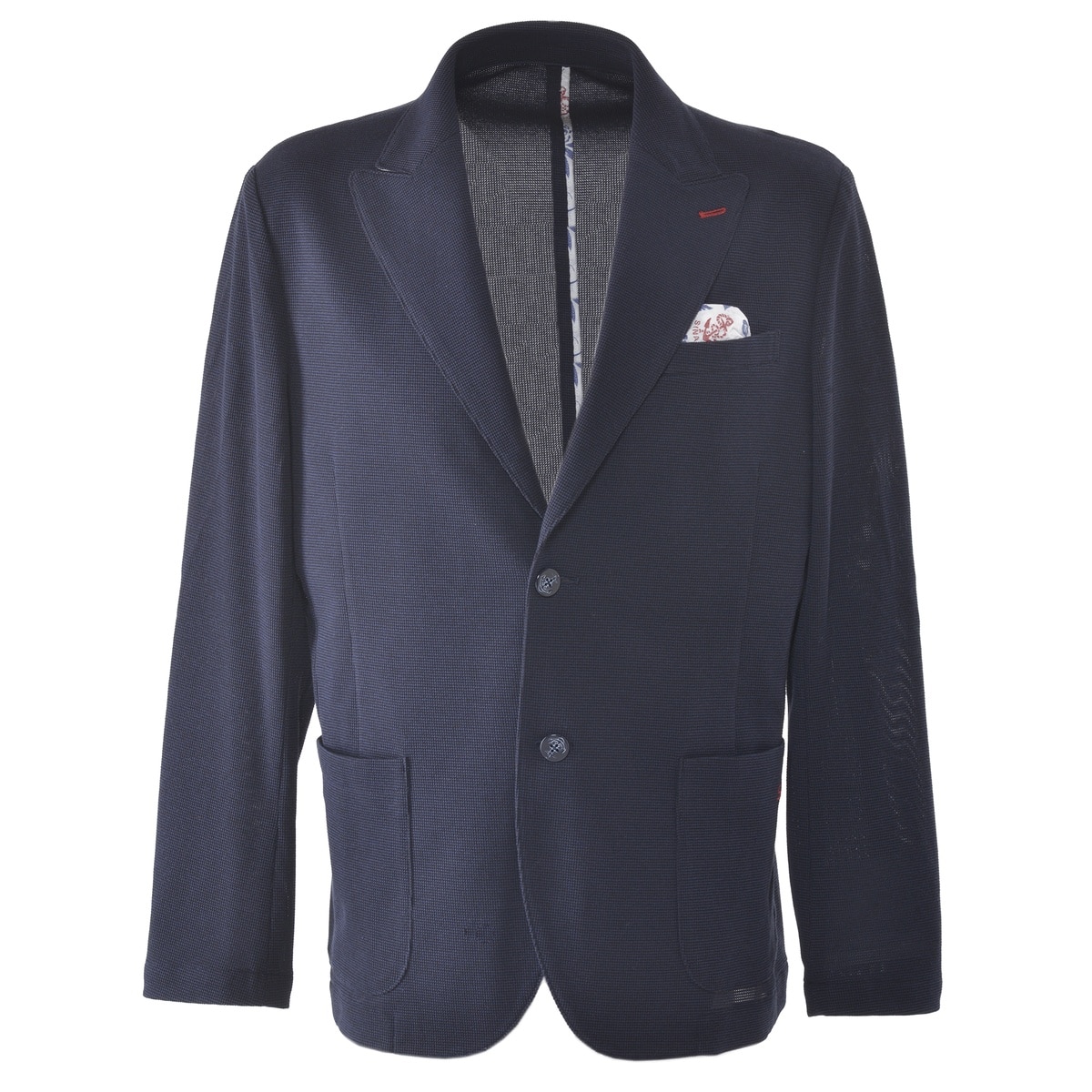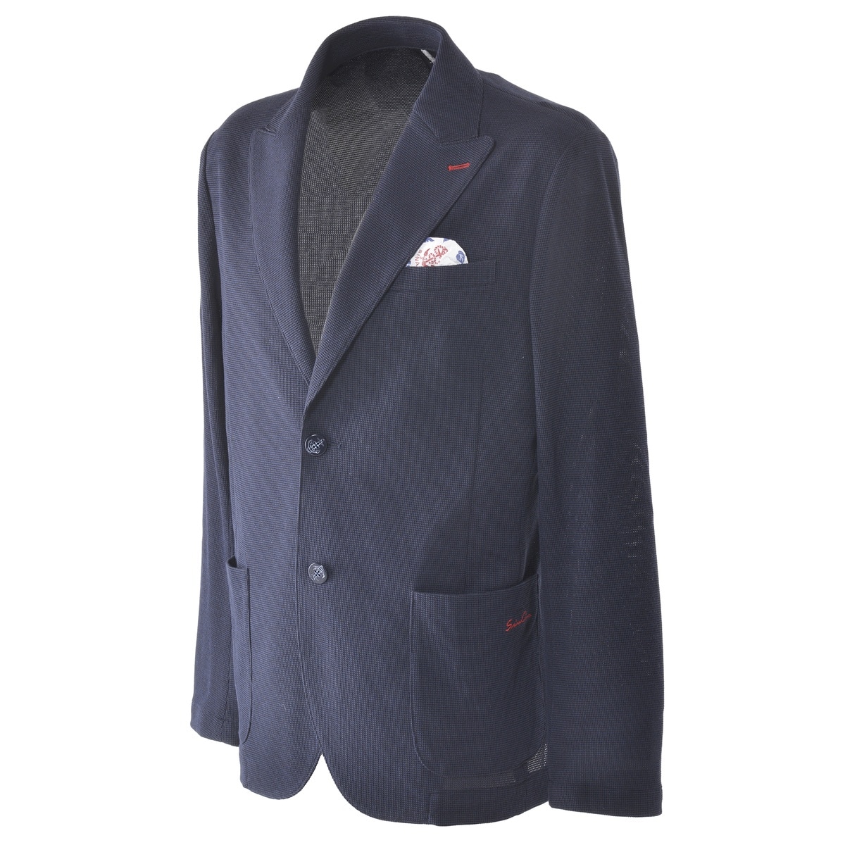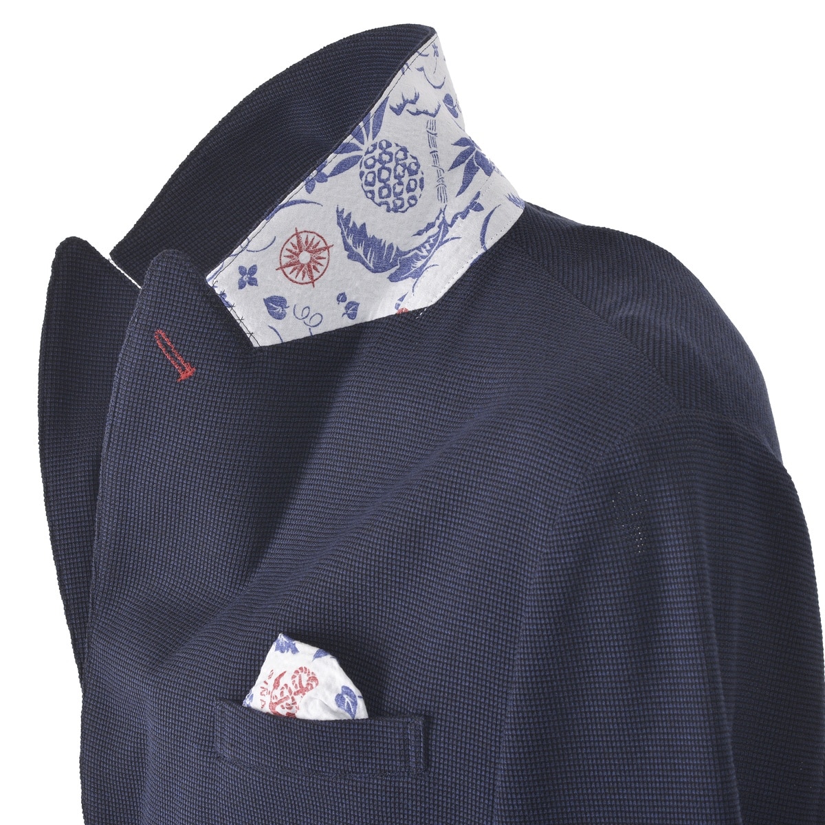 綿ポリエステルの混紡糸をハイゲージで編み上げたテーラードジャケットです。春夏に着るジャケットらしく、凹凸のあるミニワッフル状のニットを使用し、清涼感ある仕上がりとなっております。また、シナコバらしく胸ポケット・バックシーム・衿の裏地にはトロピカル柄の裏地を使用しており、胸ポケット裏地を商品画像のように出すことで、ハンカチーフ風の演出の可能になるアイテムです。・テーラードジャケット・サマーニット・ミニワッフル・トロピカル柄裏地【SINA COVA 2024 Spring & Summer Style Book】掲載商品モデル着用カラー:ベージュ男性 身長:180cm / 着用:L size