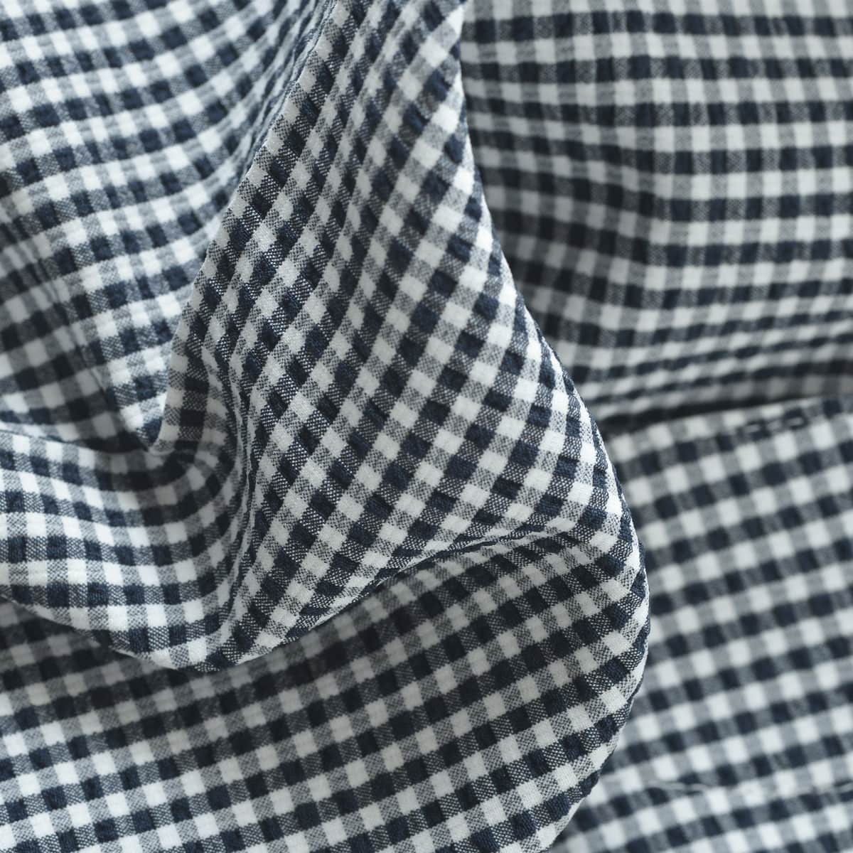 左ポケット下部にSCロゴを刺繍したギンガムチェック柄ノータックパンツです。