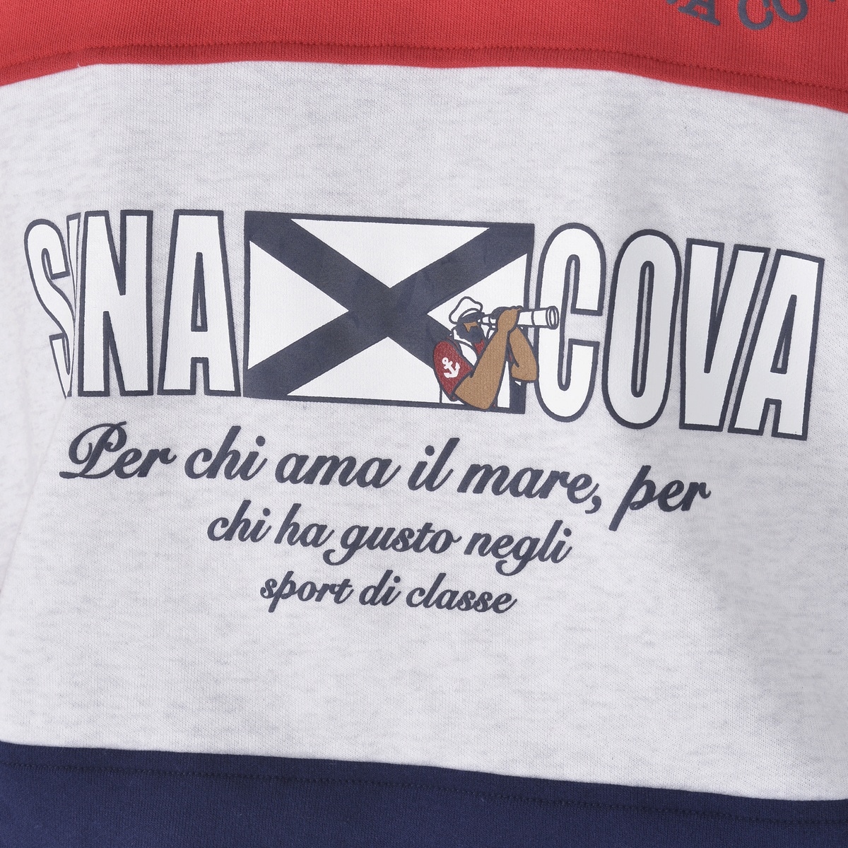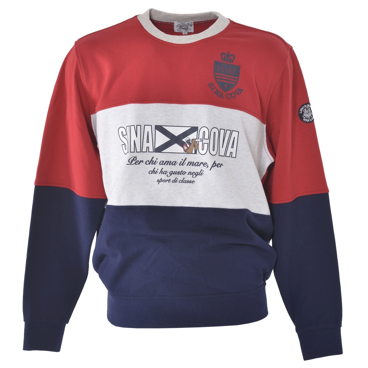 クラブチームのユニフォームのようなシナコバオリジナルのプリントをデザインした切替トレーナーです。シナコバらしいきれいな発色と配色は一枚着でも存在感のある一着です。素材にはコーマ糸ミニ裏毛の薄過ぎず厚過ぎない生地を使用し長いシーズン使用できるトレーナーです。・薄過ぎず厚過ぎないスウェット生地・切り替えデザイン・バックプリント有り・春・秋・冬のロングシーズン使用可能
