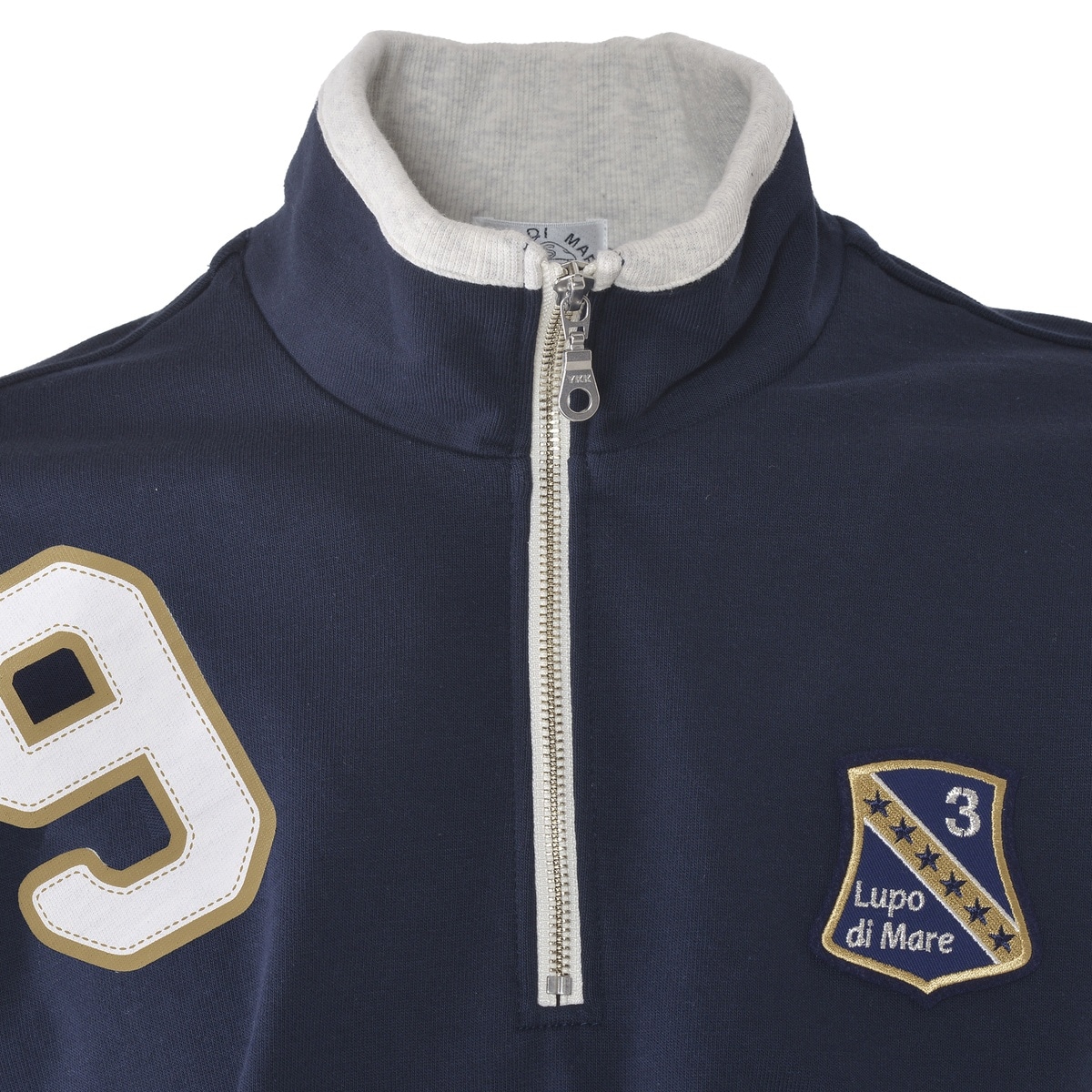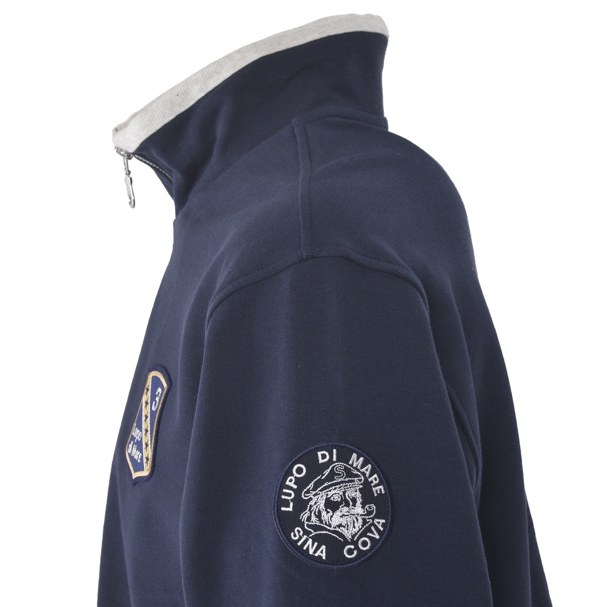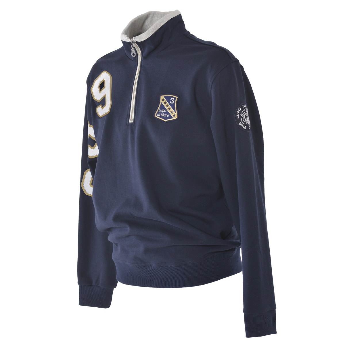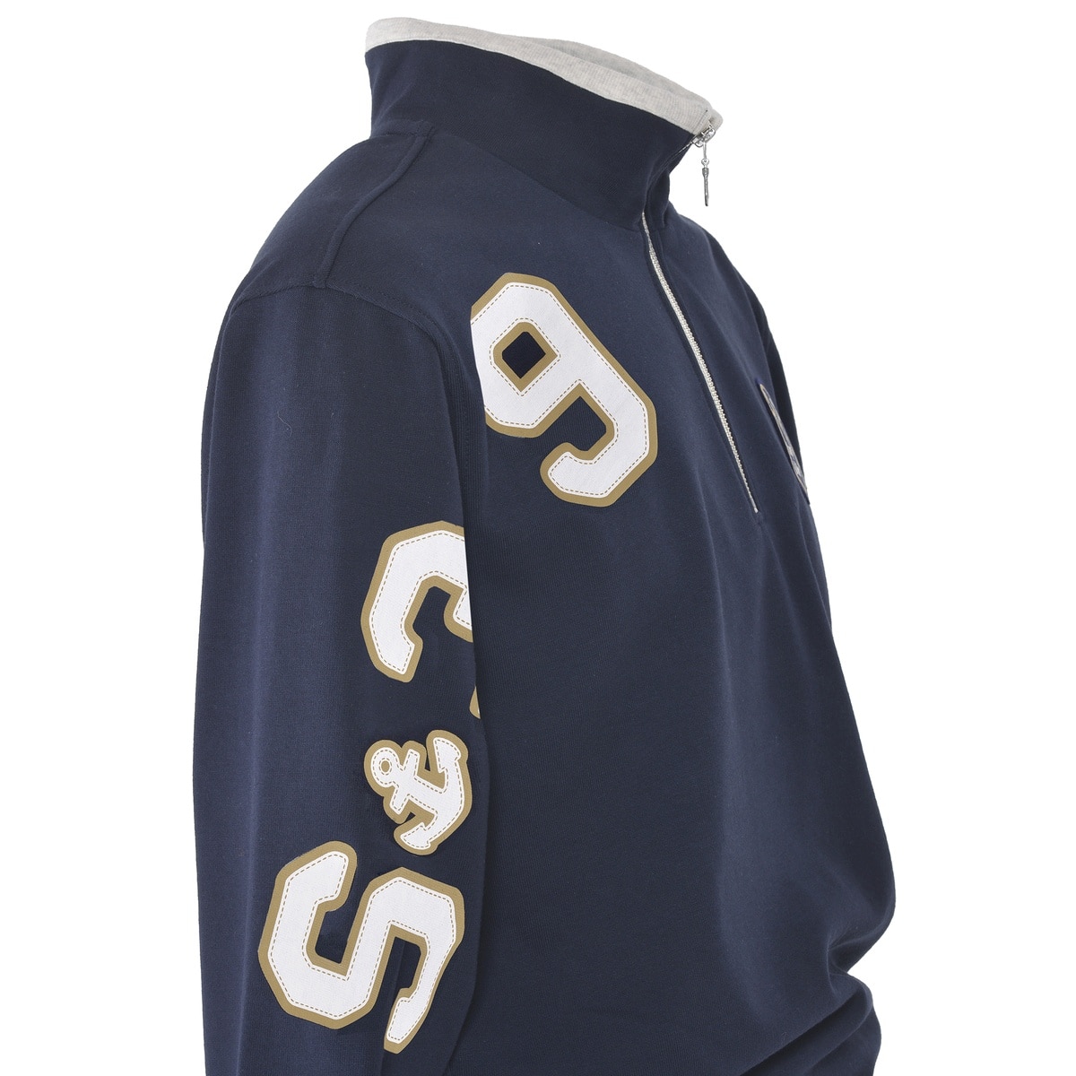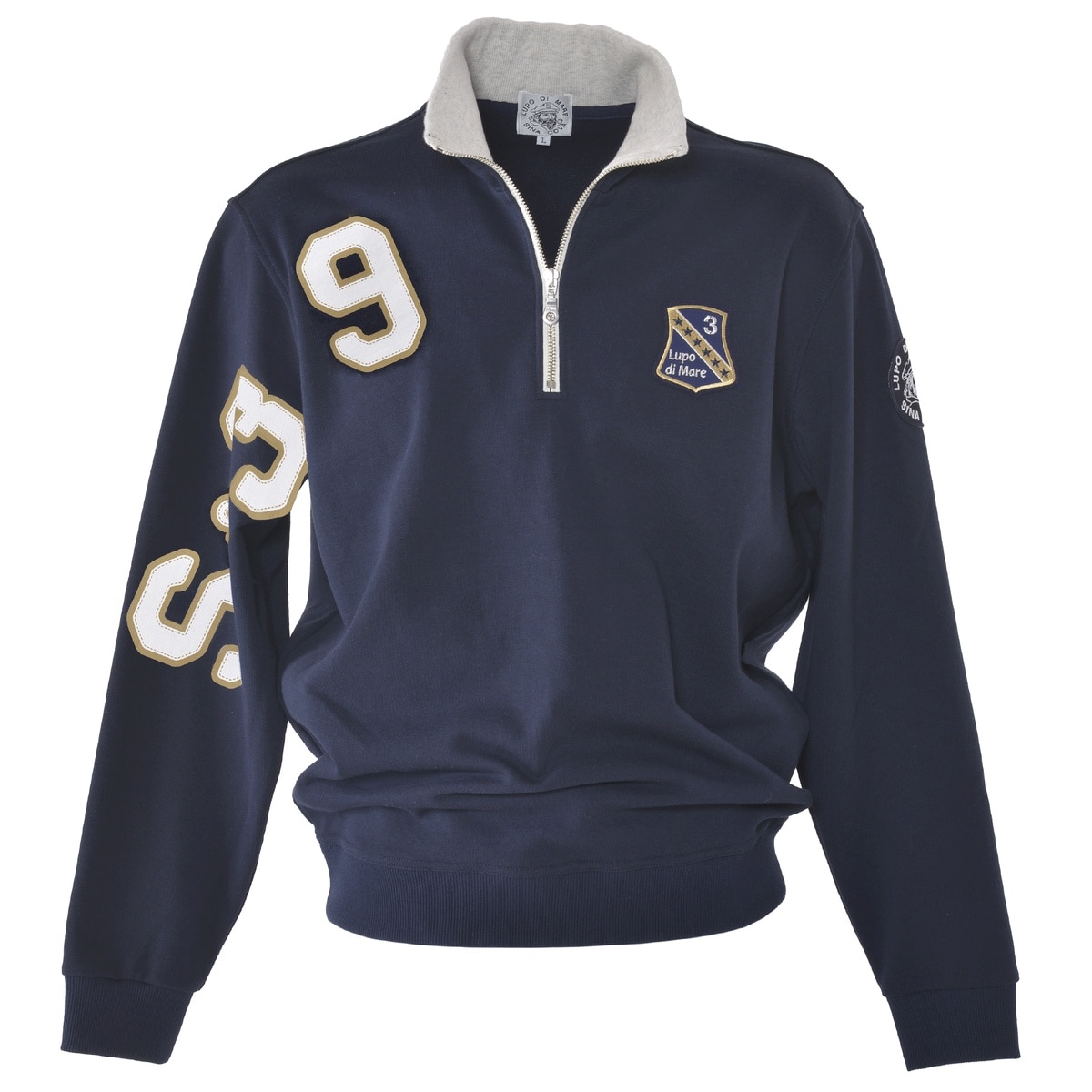 フロントにエンブレムワッペンと腕から肩にかけてSINACOVAの「S」とイタリアの国際番号「39」をプリントでデザインしたハーフジッププルオーバーです。