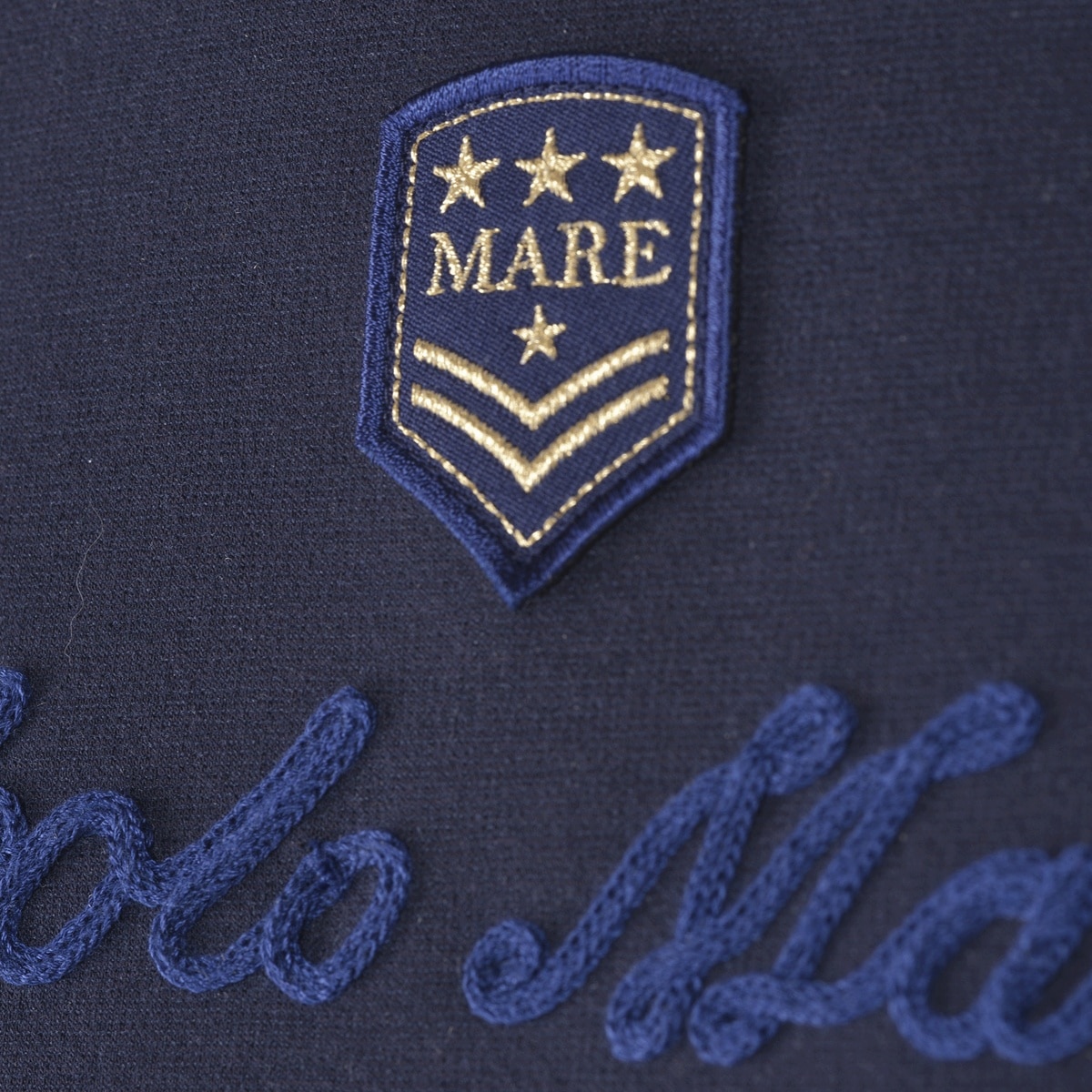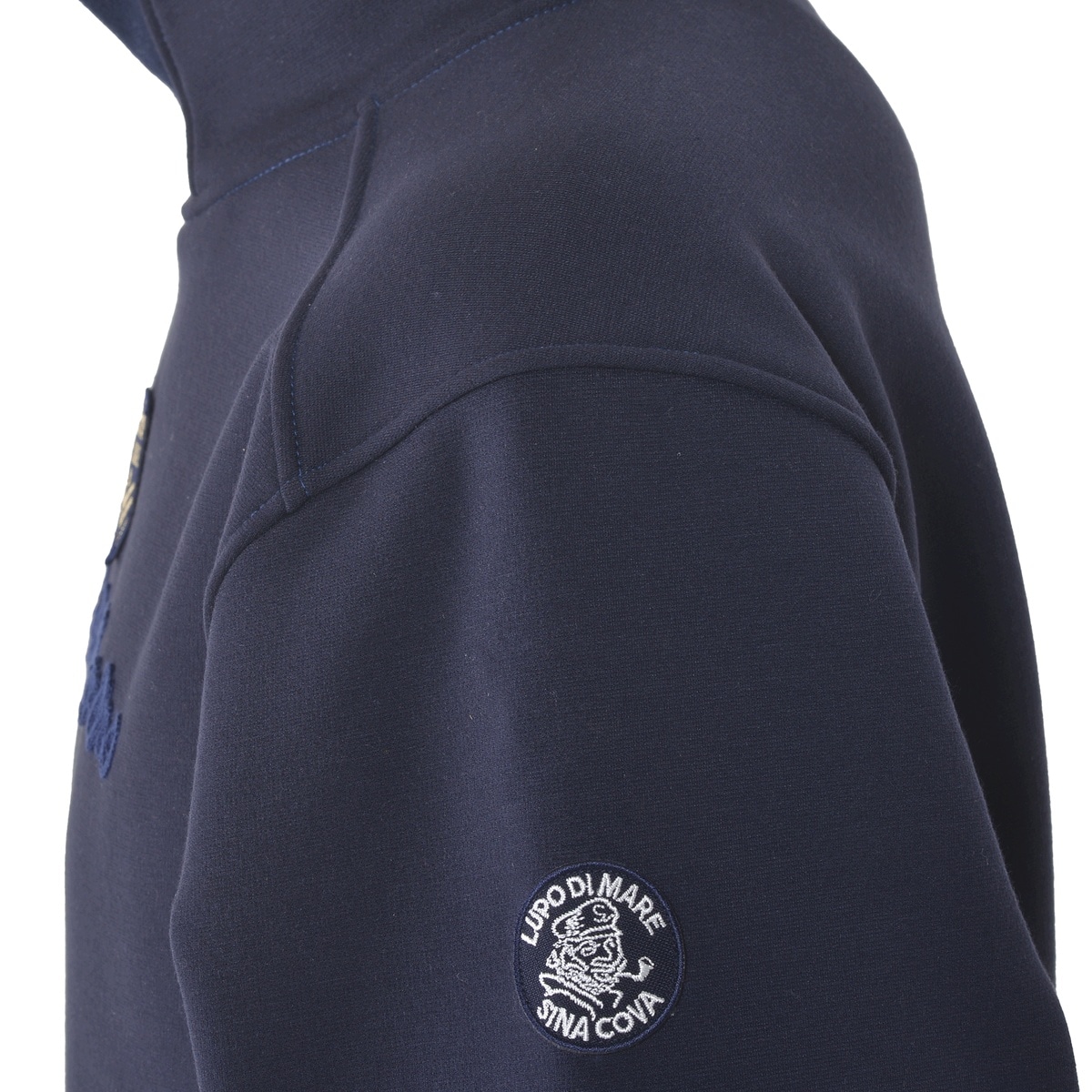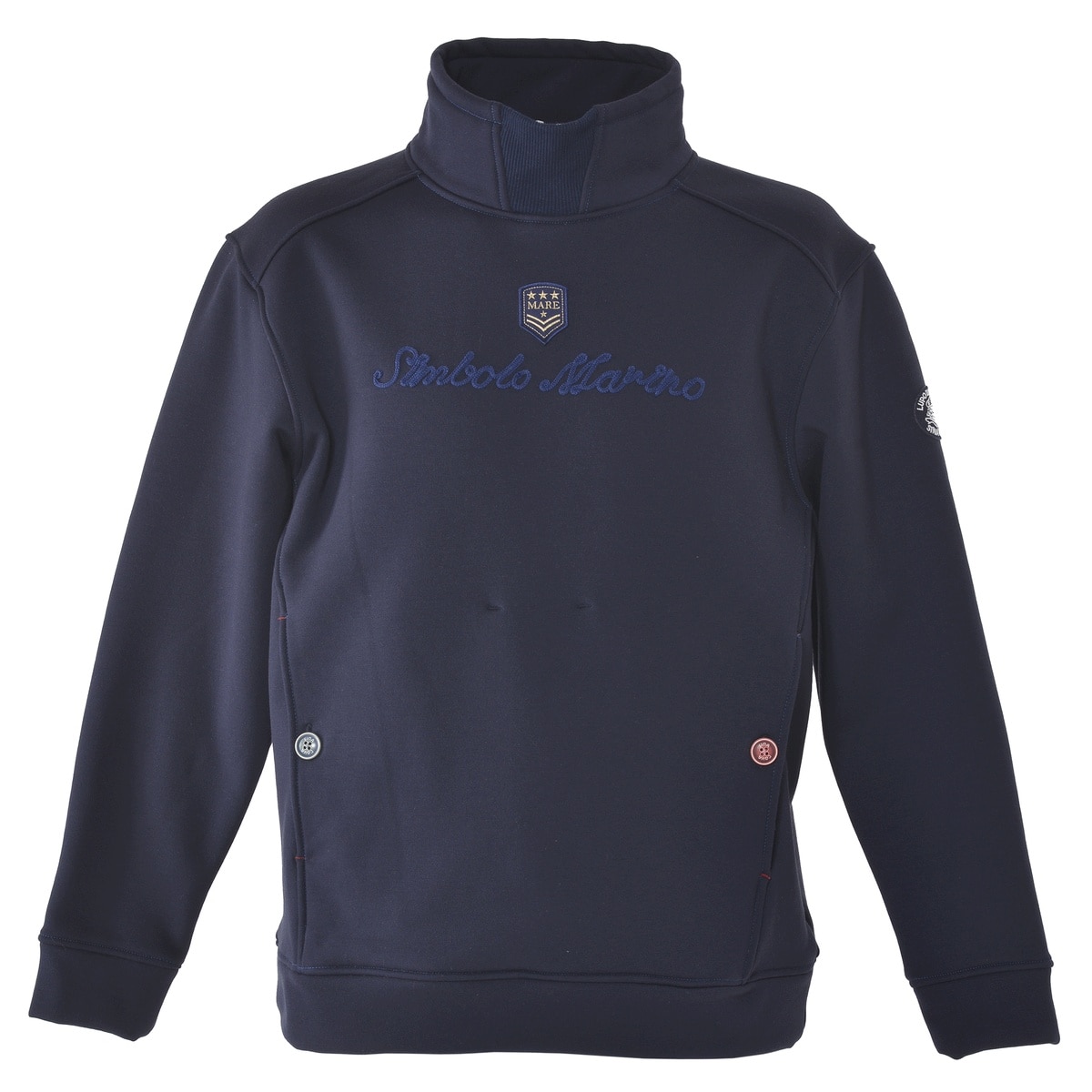 フロントにコード刺繍とワッペン、エルボーパッチやポケットボタンは船の左舷と右舷を表したグリーンとレッドの配色をデザインしたハイネックプルオーバーです。