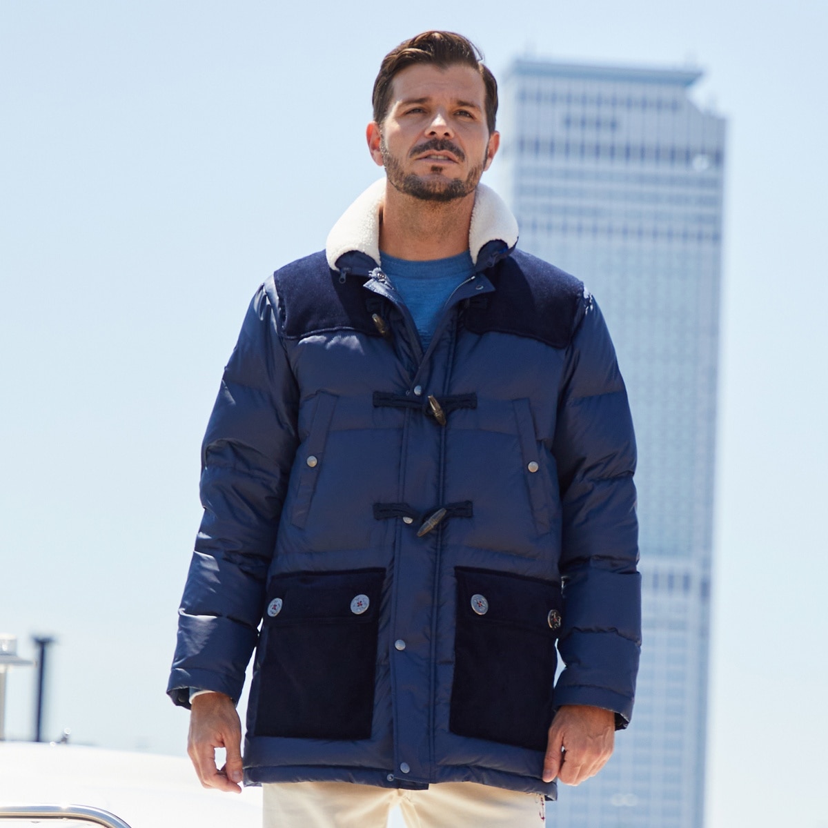 右袖に2種類のワッペン、背裏にはシンボルマークのロゴをプリントしたクルージングハーフダウンコートです。衿部分にはボアが収納されておりシーンによって衿のデザインを変更できます。コーデュロイ生地やトグルボタンを使用した表情豊かな一着です。・衿ボアで暖かい・撥水加工・制電で静電気の発生を抑える・ポケット 外側:2個 内側:1個(左胸) ※物を落としにくいフラップポケット・イカリボタン・ダッフル風デザイン(トグルボタン)・ダウンコート【SINA COVA 2024 Autumn & Winter Style Book】掲載商品