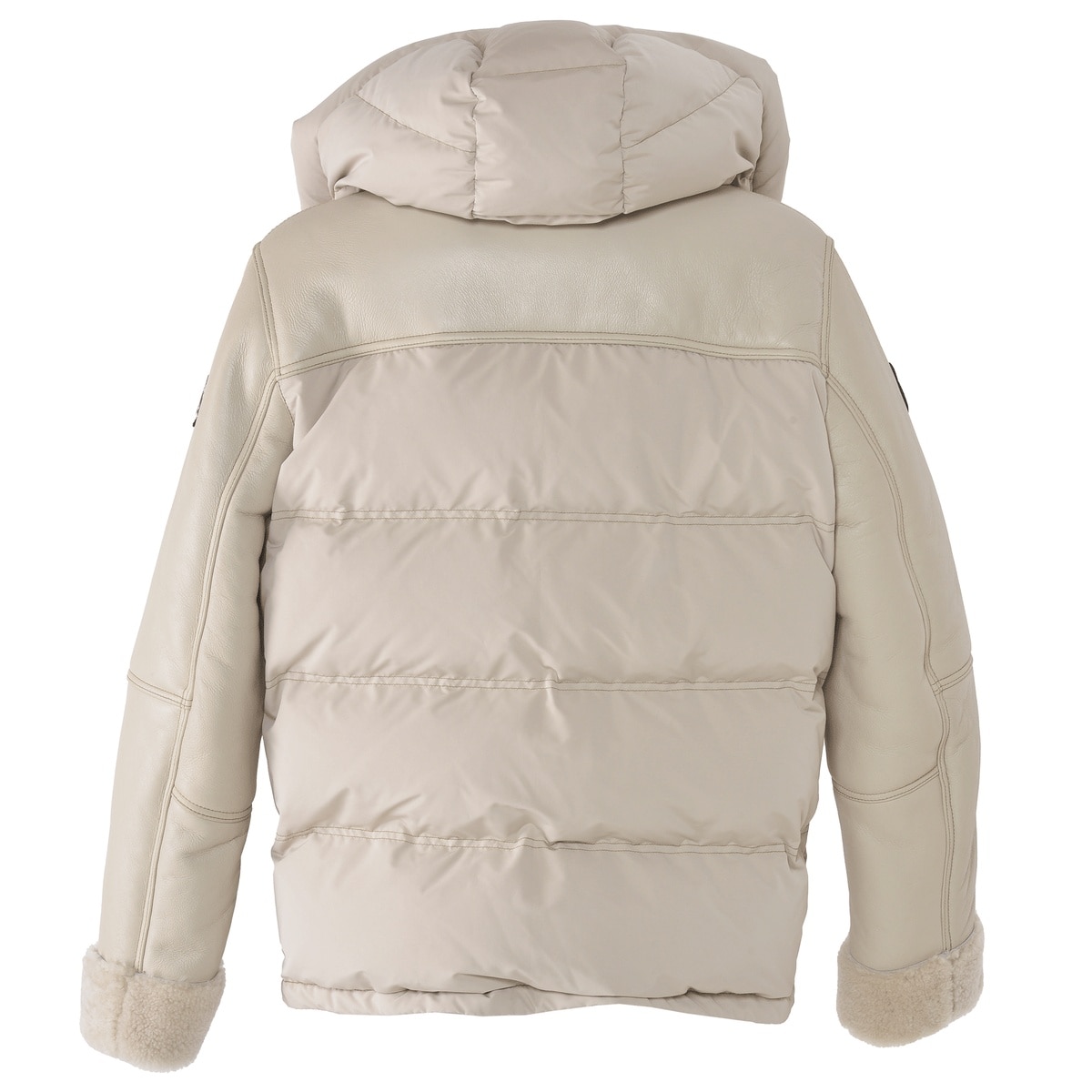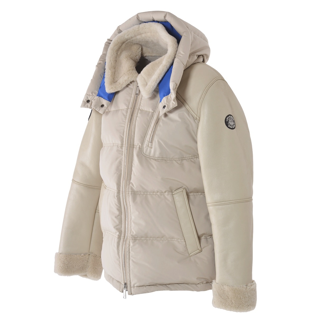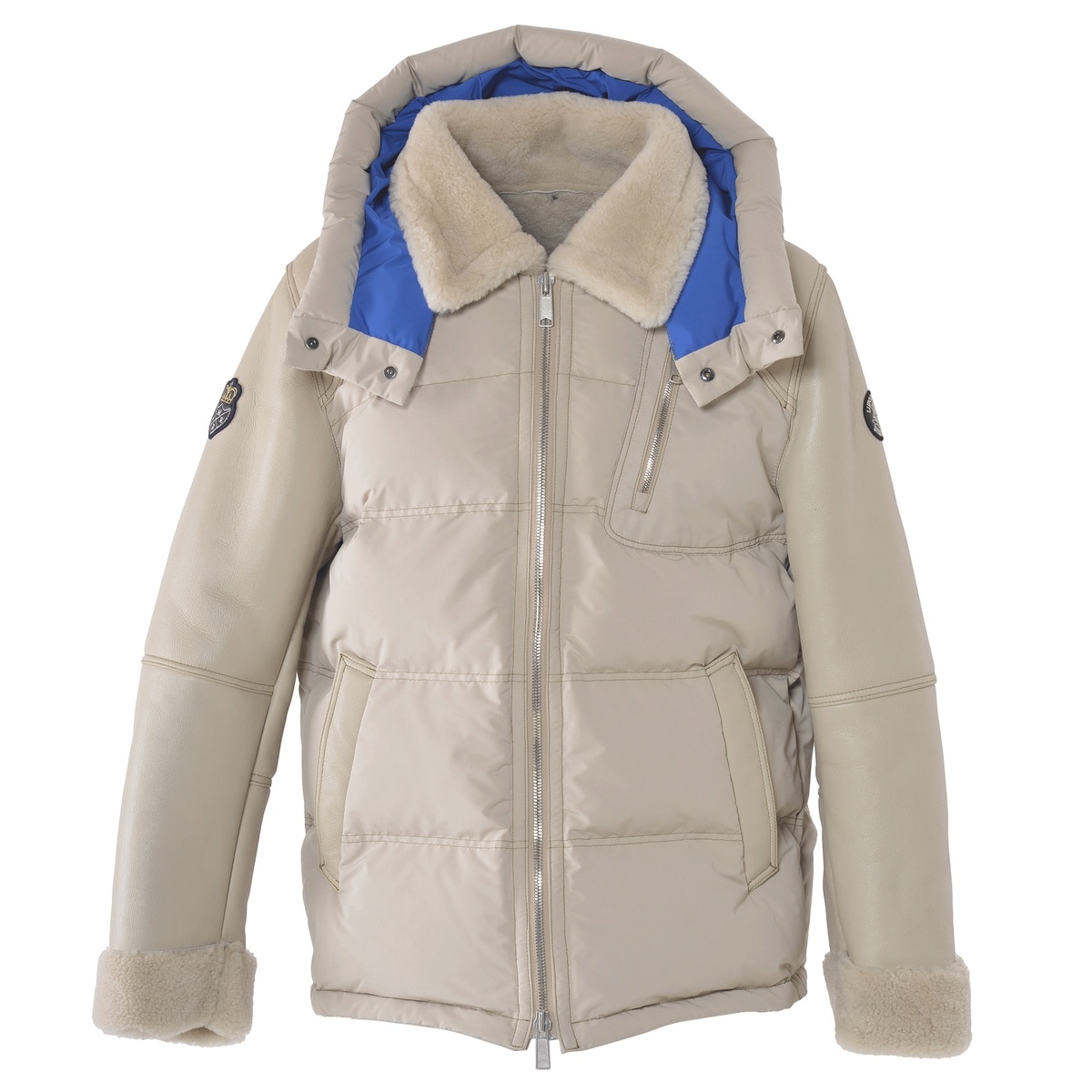 スペインラム・メリノ種でスペインの気候や環境に適応するように改良された羊革の中でも最も柔らかく、毛質も均一に保たれおり、耐久性にも優れているムートンと、高密度でありながら肉厚も厚すぎず、薄すぎないソフトで滑らかな風合いの生地を使ったダウンとのハイブリット仕様の商品です。この仕様にすることで、高級感がありながらダウンの軽さとムートンの贅沢さを感じて頂きたいハーフコートに仕上げています。袖にはワッペン付き。【SINA COVA 2024 Autumn & Winter Style Book】掲載商品モデル着用カラー:ベージュ男性 身長:180cm / 着用:L size