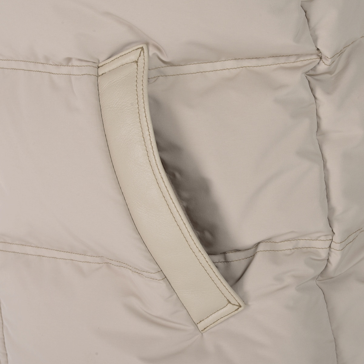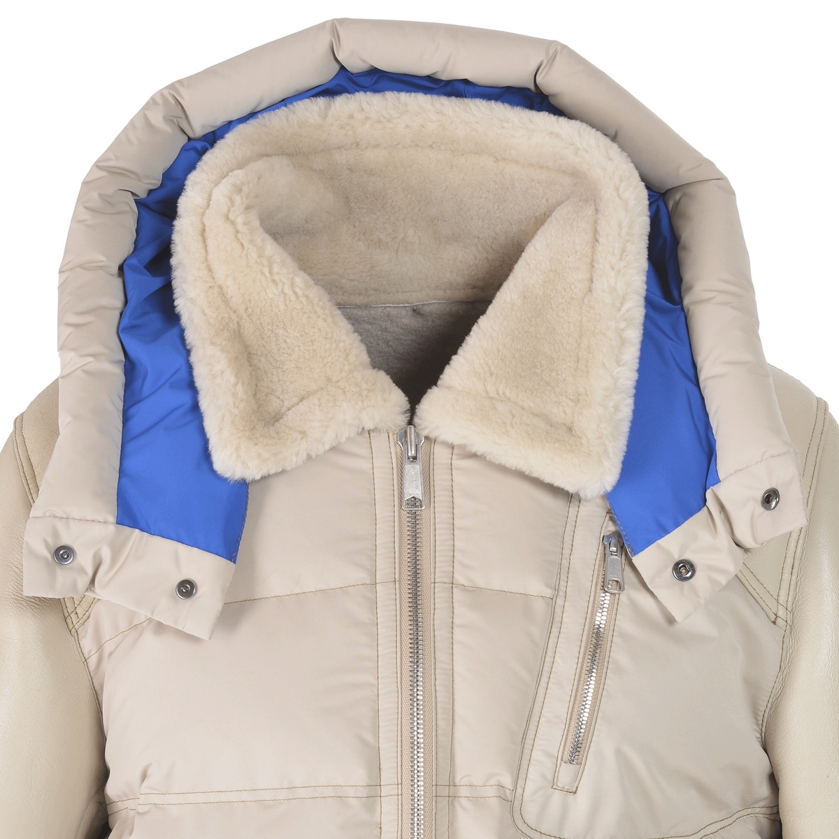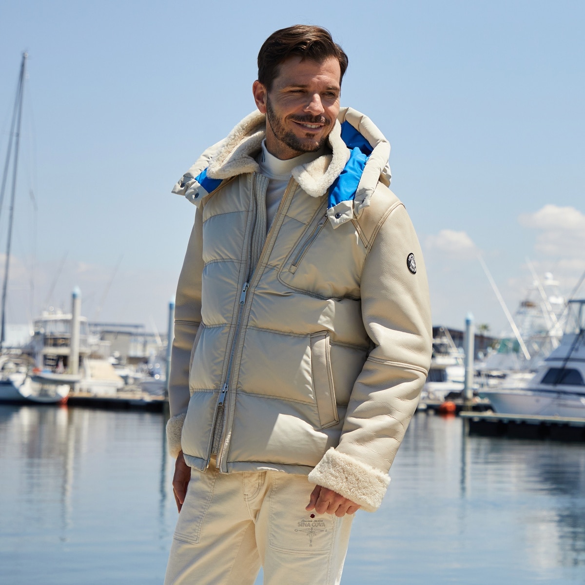 スペインラム・メリノ種でスペインの気候や環境に適応するように改良された羊革の中でも最も柔らかく、毛質も均一に保たれおり、耐久性にも優れているムートンと、高密度でありながら肉厚も厚すぎず、薄すぎないソフトで滑らかな風合いの生地を使ったダウンとのハイブリット仕様の商品です。この仕様にすることで、高級感がありながらダウンの軽さとムートンの贅沢さを感じて頂きたいハーフコートに仕上げています。袖にはワッペン付き。【SINA COVA 2024 Autumn & Winter Style Book】掲載商品モデル着用カラー:ベージュ男性 身長:180cm / 着用:L size