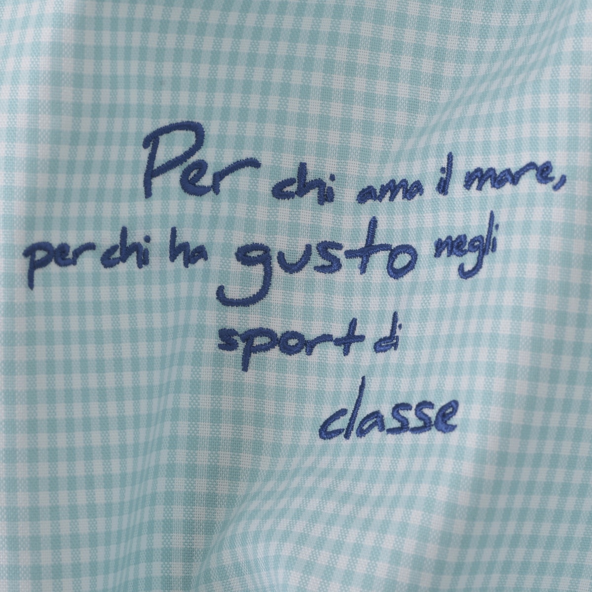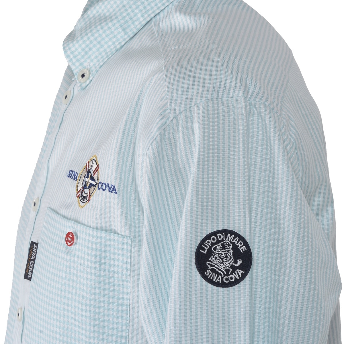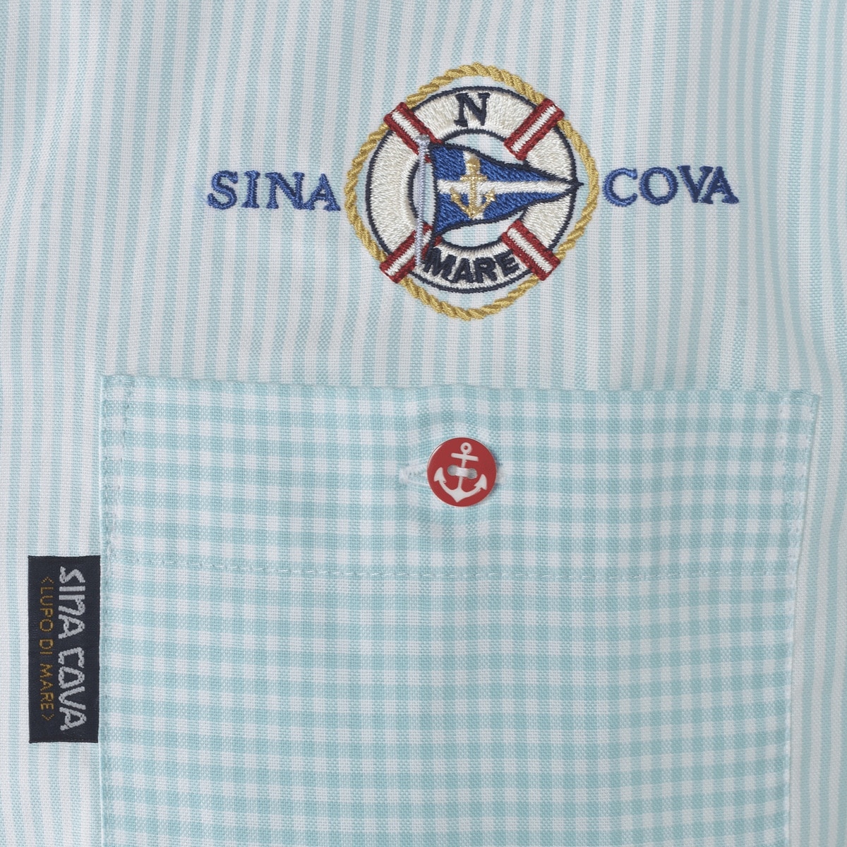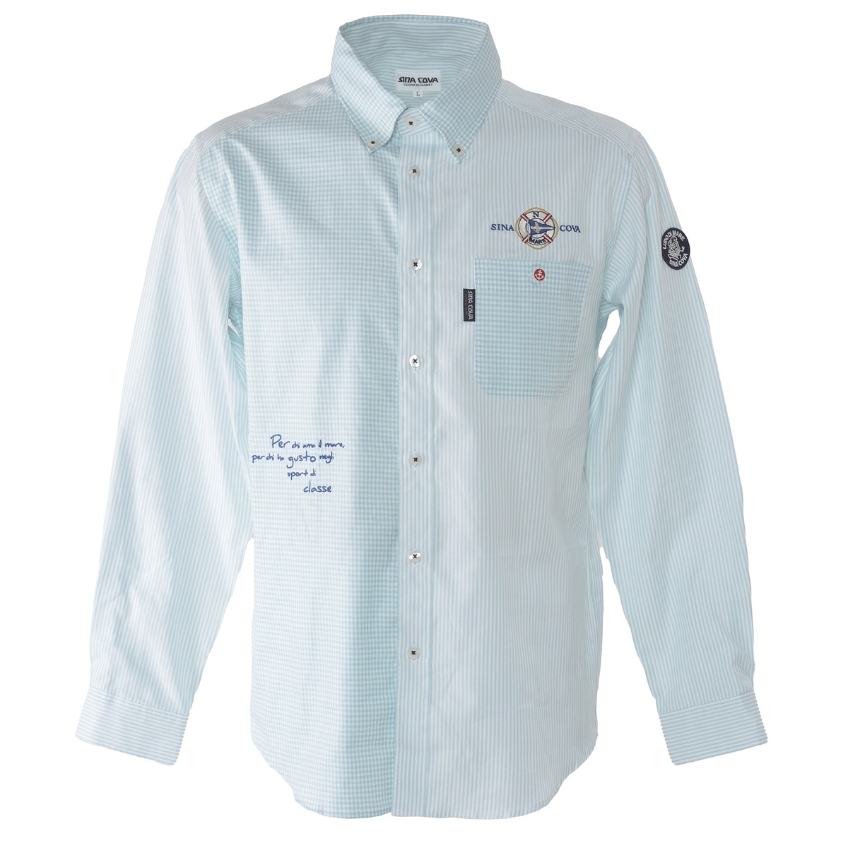 左胸ポケット上と右身頃部分にモチーフと文字の刺繍を施し、シナコバらしさ満点のシャツアイテムです。