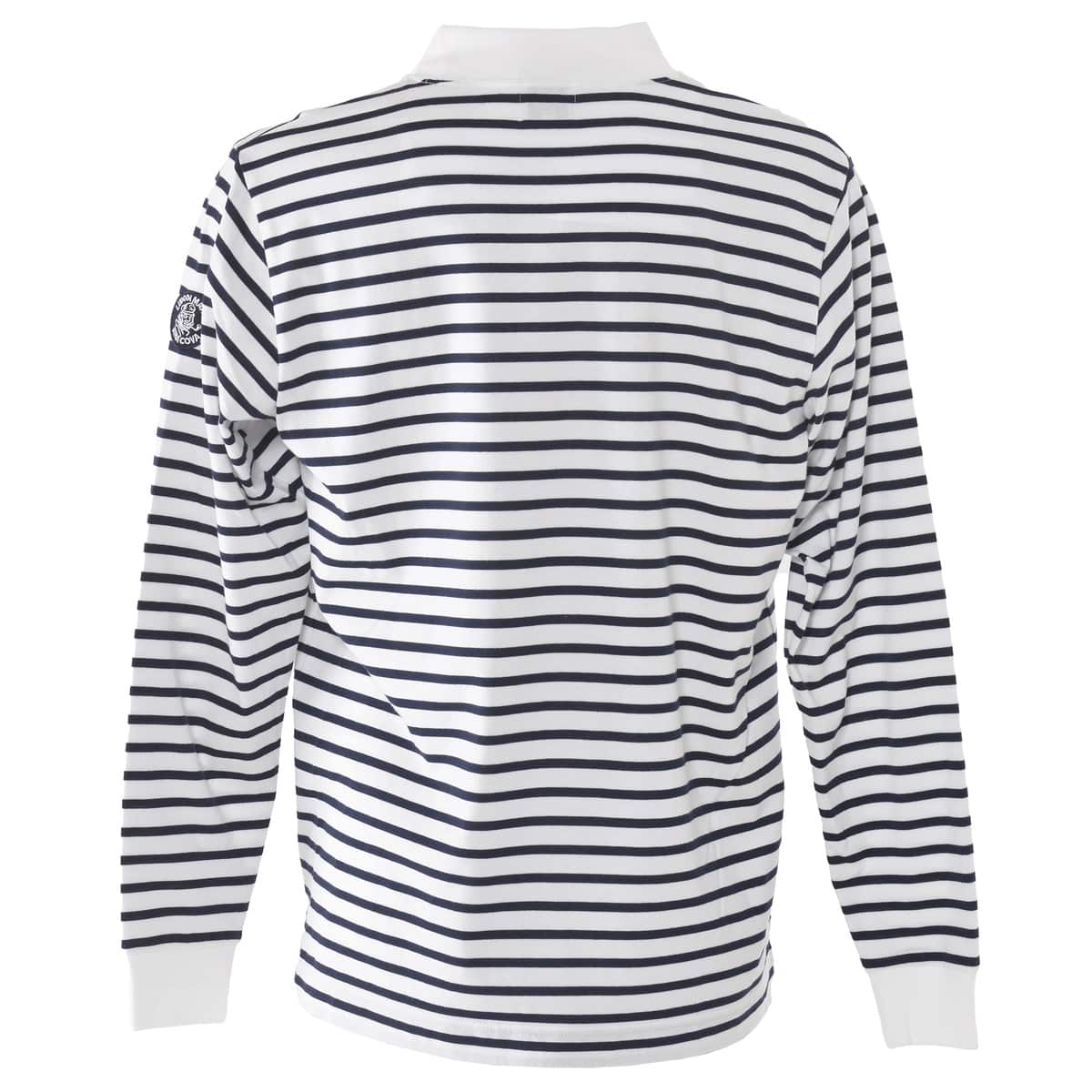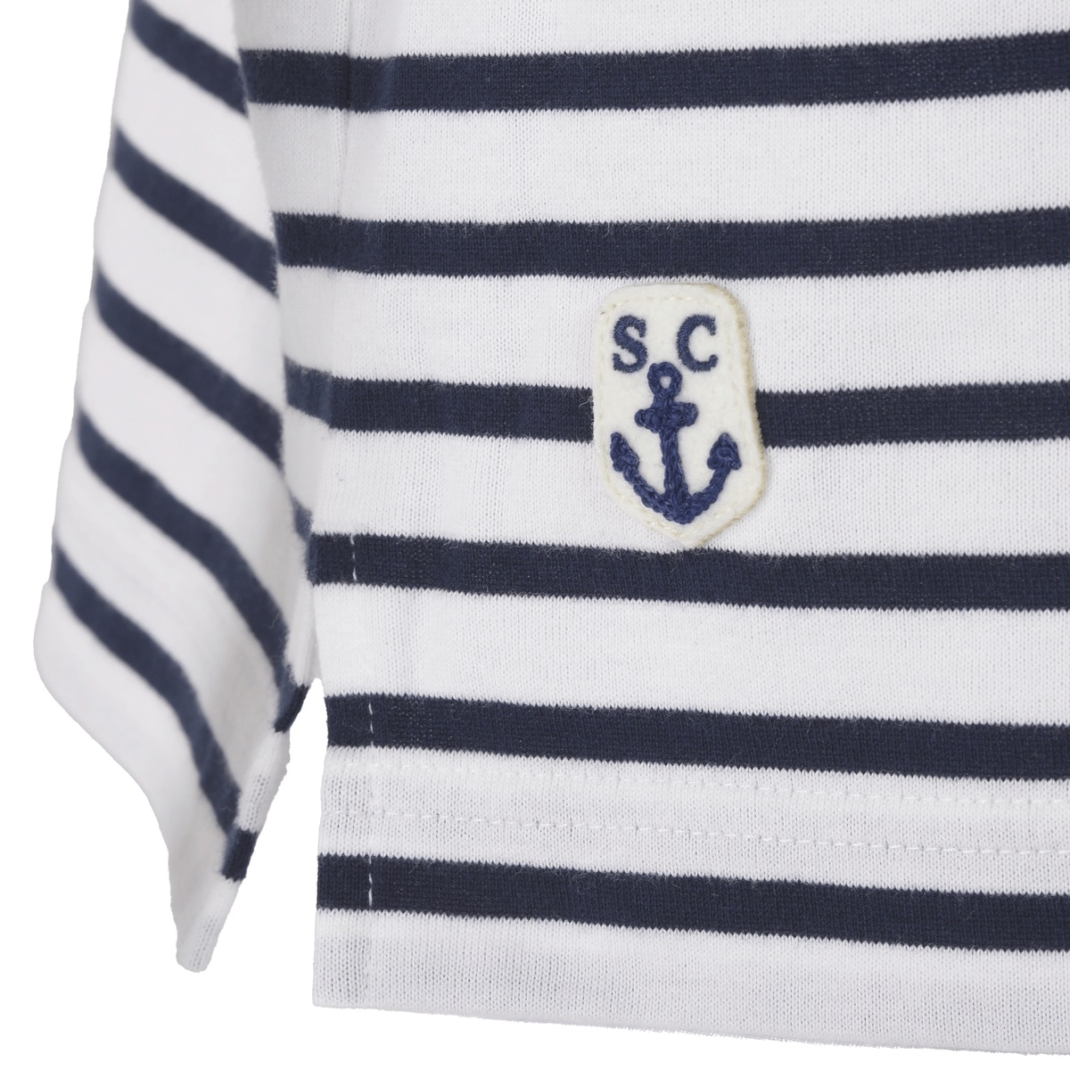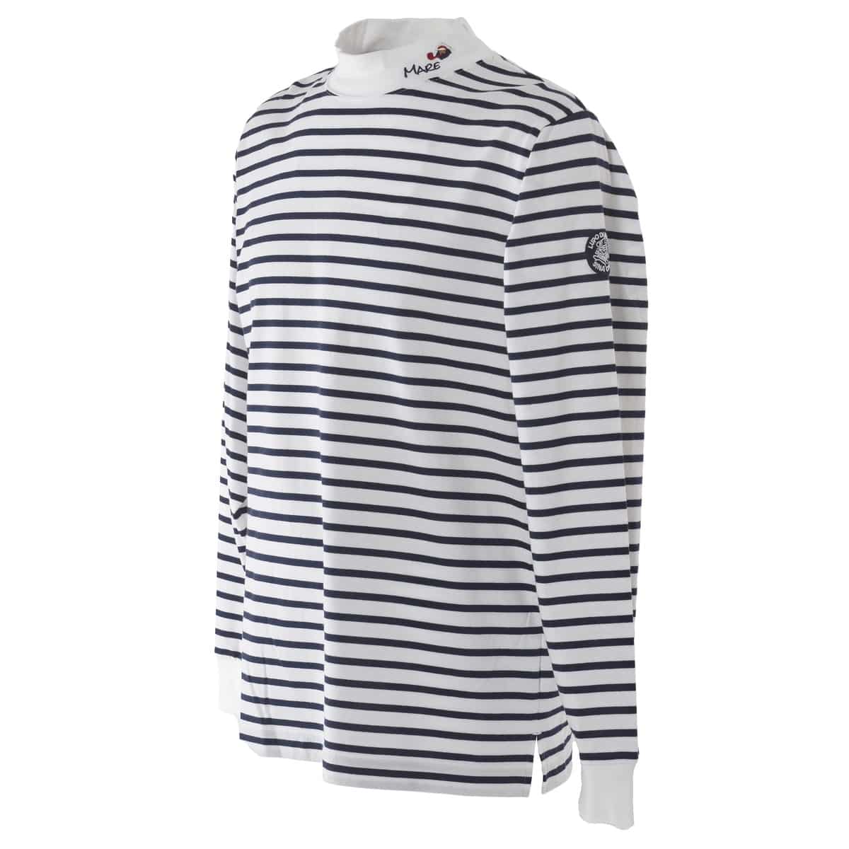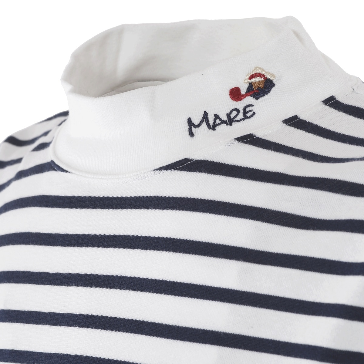 衿部分にキャプテン刺繍を施したハイネックボーダーの長袖Tシャツです。サラッとした肌触りの素材を使用した快適な着心地と程よいボーダー柄でマリン感を演出した着回し力の高いアイテムに仕上がっています。また、右前裾部分にはさりげなくアンカーのワッペンをあしらい、目立ちすぎないシナコバ感も楽しめるマルチアイテムです。【SINA COVA 2024 Autumn & Winter Style Book】掲載商品