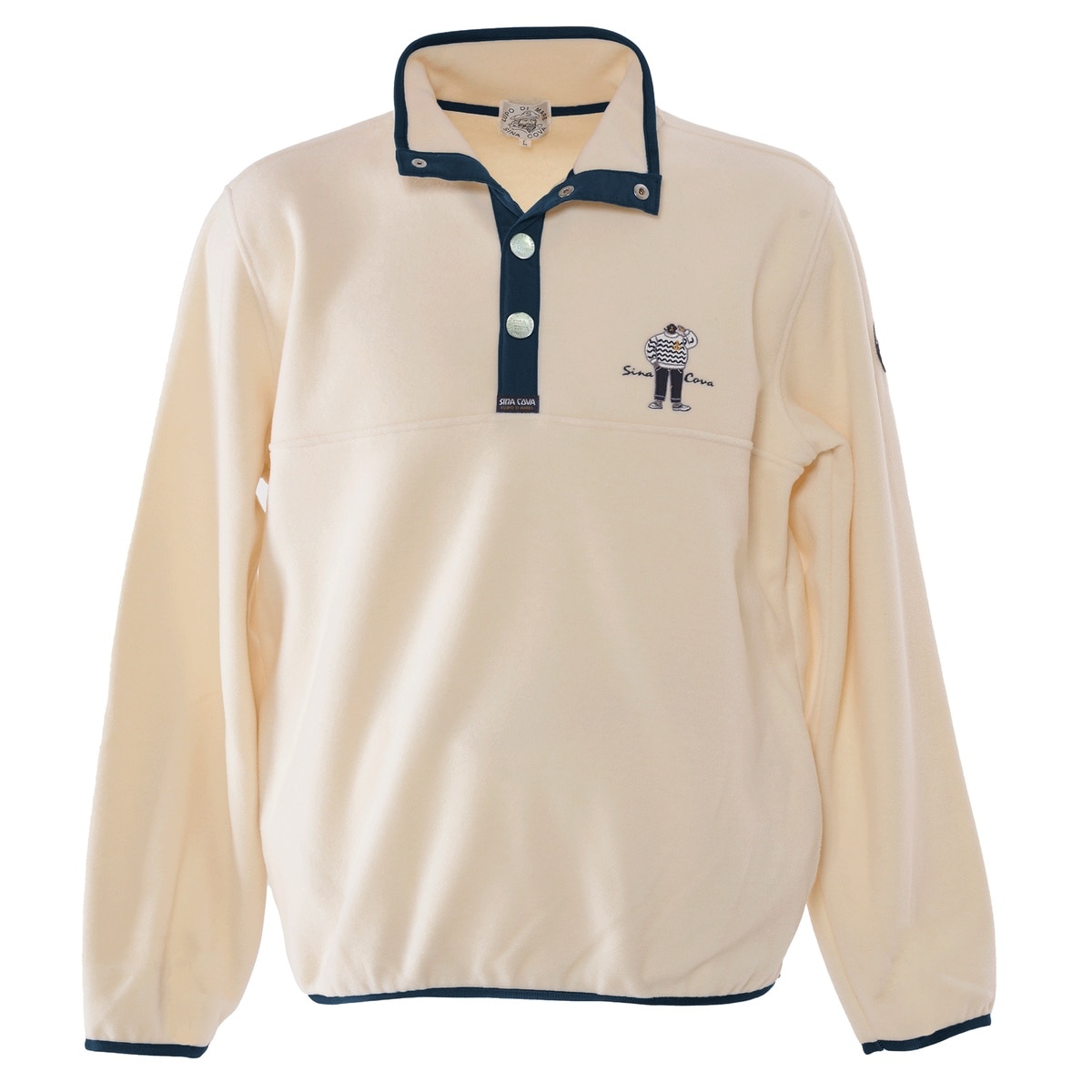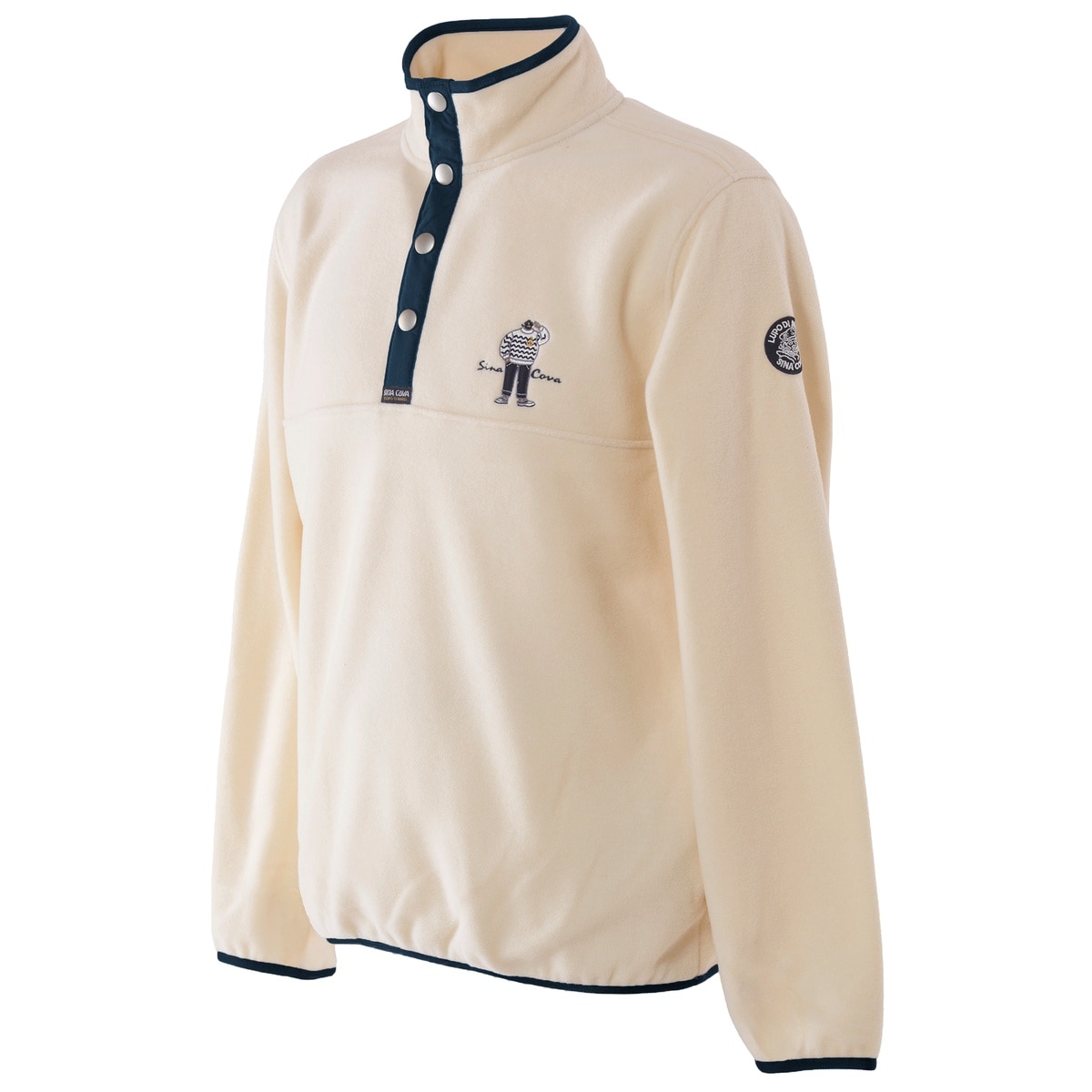 フロントにキャプテンモチーフをアップリケ刺繍でデザインしたハイネックプルオーバーです。前立てにはシナコバオリジナルのスナップボタンを付けボタンによりネックの調整ができます。生地に軽さと膨らみ、上質な柔らかさを兼ね備えたmade inイタリーのフリース素材を使用し、暖かくごわつきも抑えたストレスフリーの一着です。・ポケット 2個・フリース素材・女性にもお勧め・キャプテン刺繍・秋冬生地