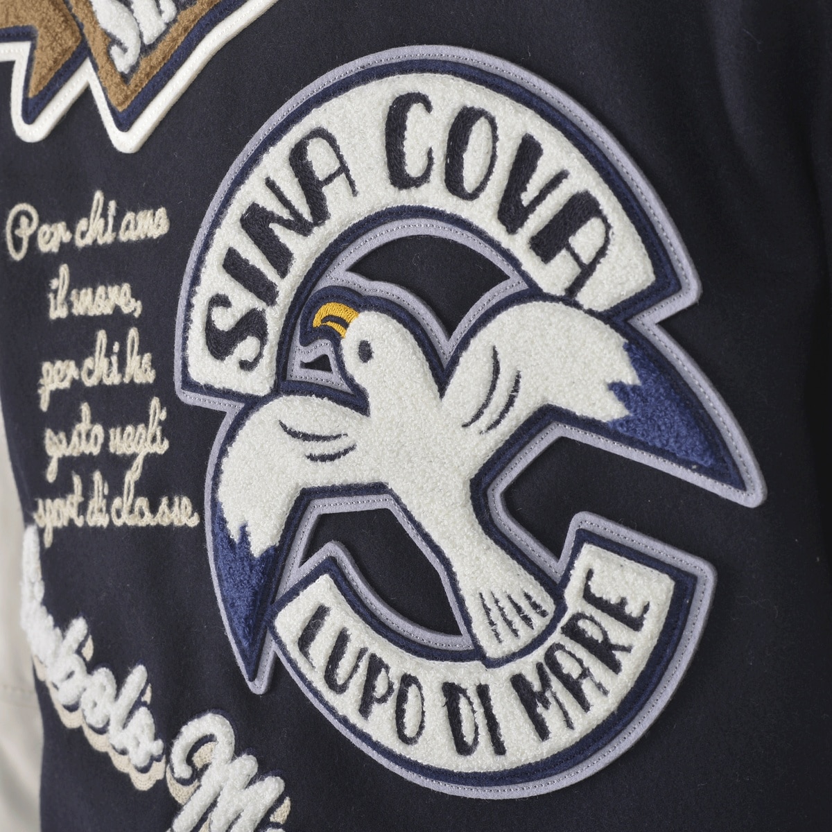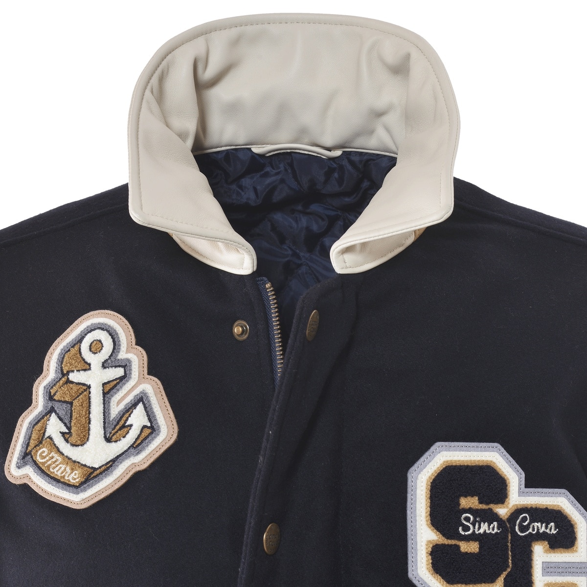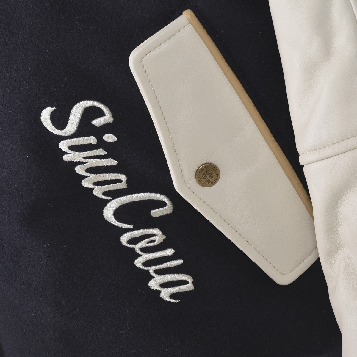 シナコバ不朽の名作に2024年秋冬新作モデルが登場!!SINACOVA刺繍ワッペンをふんだんに使用しシナコバらしさを出したスタジアムジャンパーです。身頃部分にはメルトン生地を使用し、スリーブや衿、ポケットスラップ部分には本革のラムナッパを使用。裏地にはキルティングで中綿の入った品質と防寒に優れた一着です。・こちらの商品は生産数が極めて少ない希少アイテムとなります。・シナコバモチーフワッペン多数使用・キルティング中綿入りで防寒着に最適・ポケット 外側:2つ 内側:2つ【SINA COVA 2024 Autumn & Winter Style Book】掲載商品モデル着用カラー:ベージュ男性 身長:180cm / 着用:L size