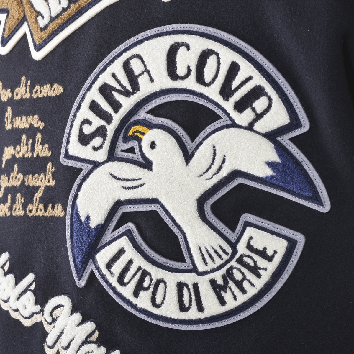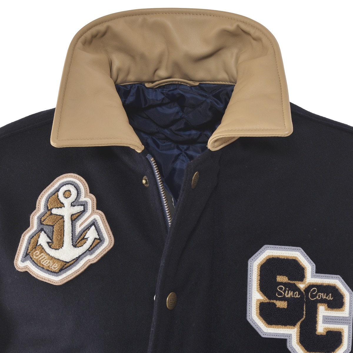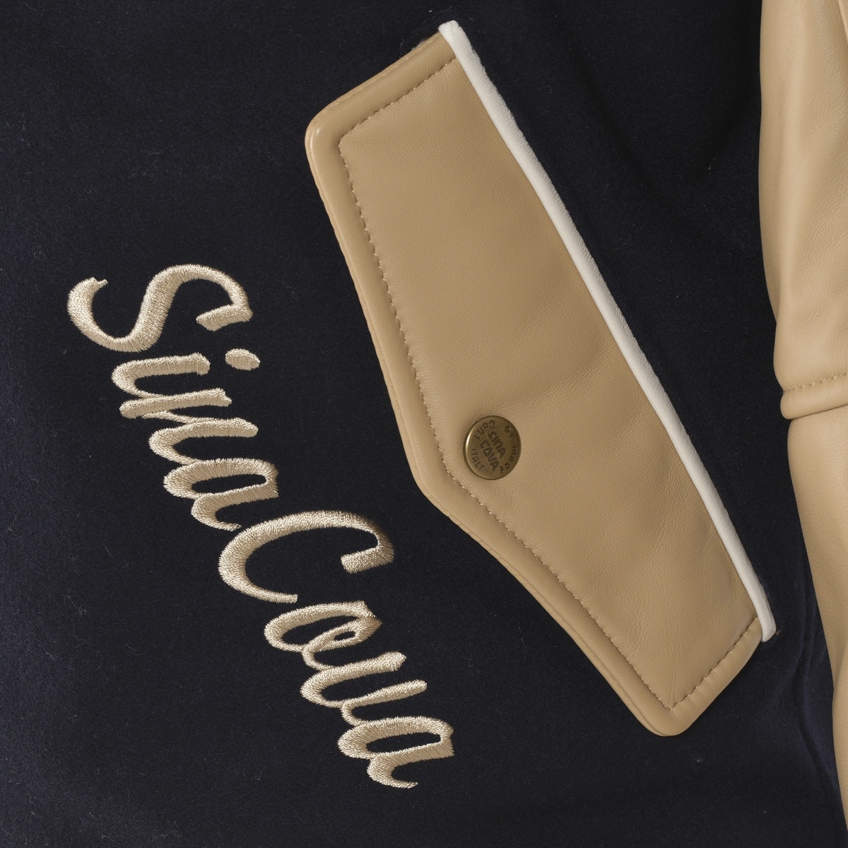 シナコバ不朽の名作に2024年秋冬新作モデルが登場!!SINACOVA刺繍ワッペンをふんだんに使用しシナコバらしさを出したスタジアムジャンパーです。身頃部分にはメルトン生地を使用し、スリーブや衿、ポケットスラップ部分には本革のラムナッパを使用。裏地にはキルティングで中綿の入った品質と防寒に優れた一着です。・こちらの商品は生産数が極めて少ない希少アイテムとなります。・シナコバモチーフワッペン多数使用・キルティング中綿入りで防寒着に最適・ポケット 外側:2つ 内側:2つ【SINA COVA 2024 Autumn & Winter Style Book】掲載商品モデル着用カラー:ベージュ男性 身長:180cm / 着用:L size