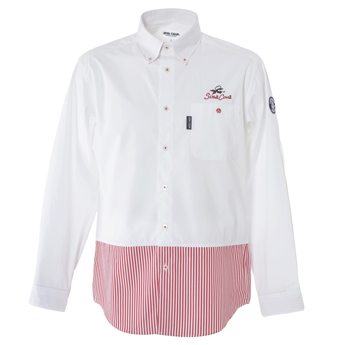左フロントポケットにキャプテンモチーフをあしらったボタンダウンシャツです。超微起毛素材を使用し、軽量で耐久性を持ちつつも、暖かさを保ってくれます。また、裾部分はボーダー柄の切り替えを施し、上品な仕上がりにしつつも、独特の風合いも楽しめるマルチアイテムとなっております。・切り替えボーダー柄・超微起毛素材・キャプテンモチーフ・ボタンダウンシャツ【SINA COVA 2024 Autumn & Winter Style Book】掲載商品
