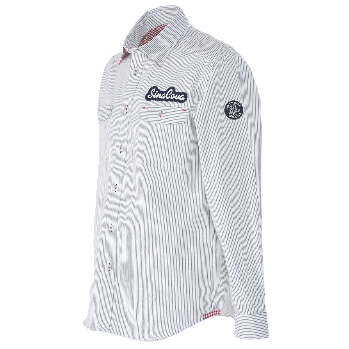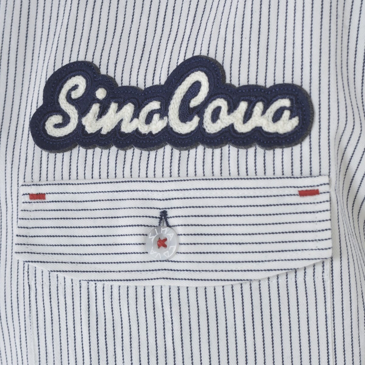 左胸ポケットにチェーン刺繍のロゴモチーフをあしらったストライプデニムシャツ。素材にはオーガニックコットンを使用し、しっかりした編み目ながらも、軽めの仕上がりで、ソフトな風合いを楽しめます。細かいストライプ柄ながらも、衿裏、カフス裏、背ヨーク裏にはギンガム柄の裏地を使用している為、クリーンで上品な仕上がりのアイテムとなりました。・オーガニックコットン・ストライプ柄・デニムシャツ・ギンガムチェック柄裏地【SINA COVA 2024 Autumn & Winter Style Book】掲載商品