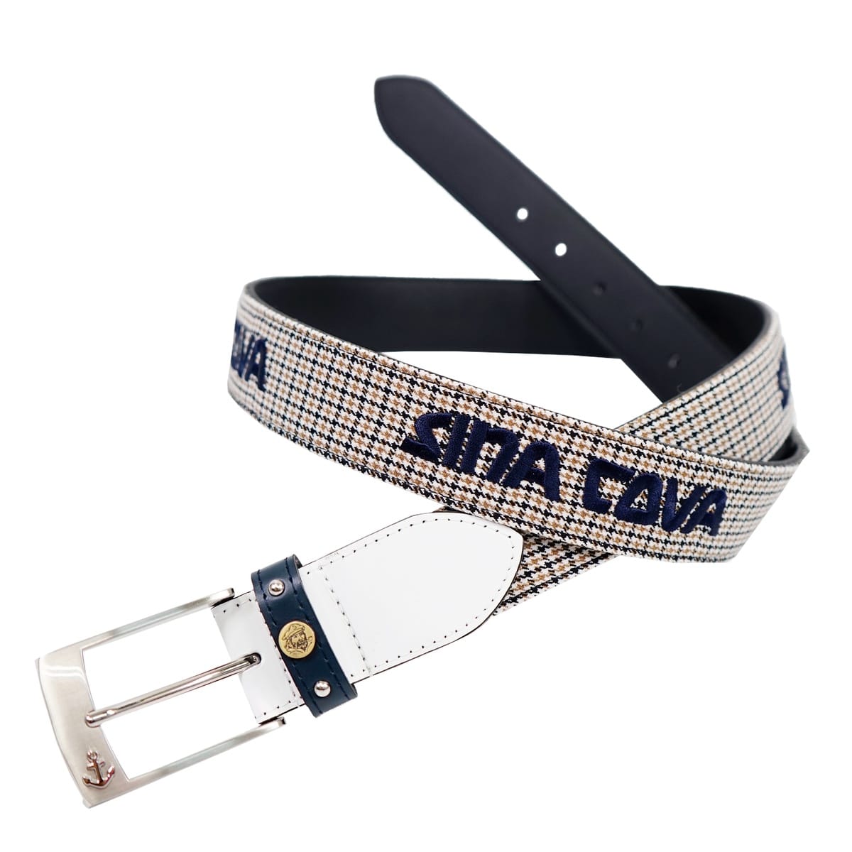 千鳥チェック柄にSINACOVAロゴ刺繍をリピートで施したオリジナルベルト。どのようなパンツスタイルにも合わせやすいく細部のパーツにもシナコバのオリジナリティー出しています。剣先部分のイカリマークがポイントです。・シナコバオリジナルベルト・お手持ちのパンツに合わせやすいデザイン・ウエストサイズに合わせて長さ調節可能・バックル部分のイカリマーク・プレゼントにぴったり