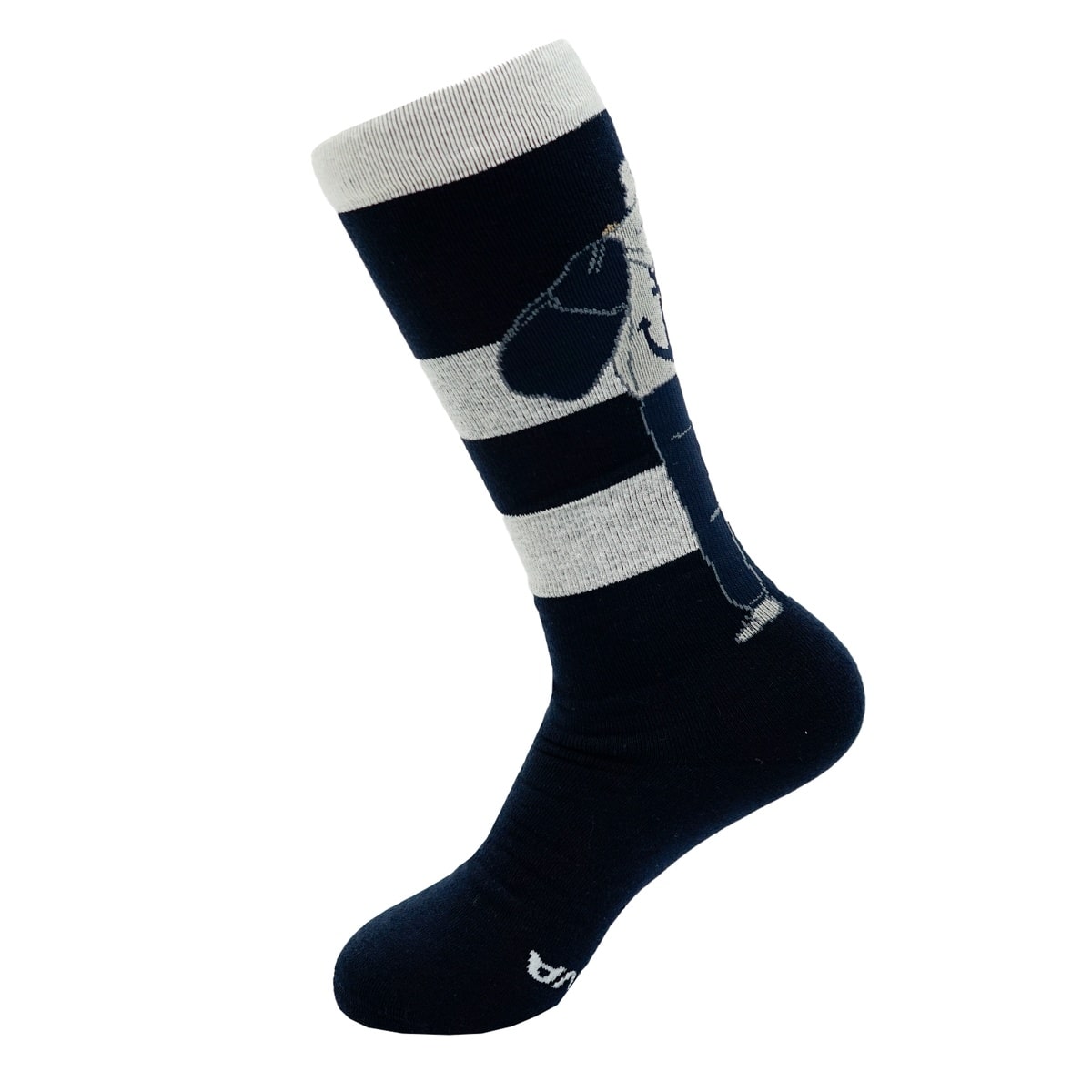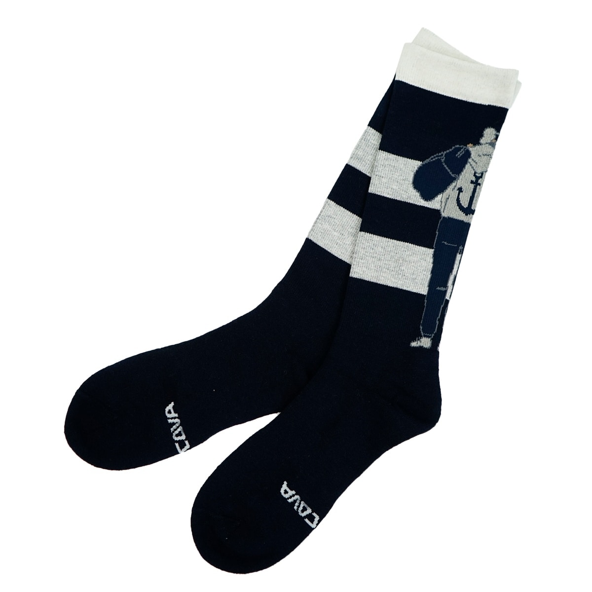 バックにキャプテンの後ろ姿をあしらったロングソックス。ソフトながらもコシのある素材しており、快適な締め心地を実現しました。シナコバ独自の世界観を表現したマリンテイスト溢れるアイテムで、プレゼントにはもちろん、普段履きにもお使いいただけるアイテムです。・可愛いデザイン・おしゃれソックス・プレゼントにもお勧め・着圧タイプ