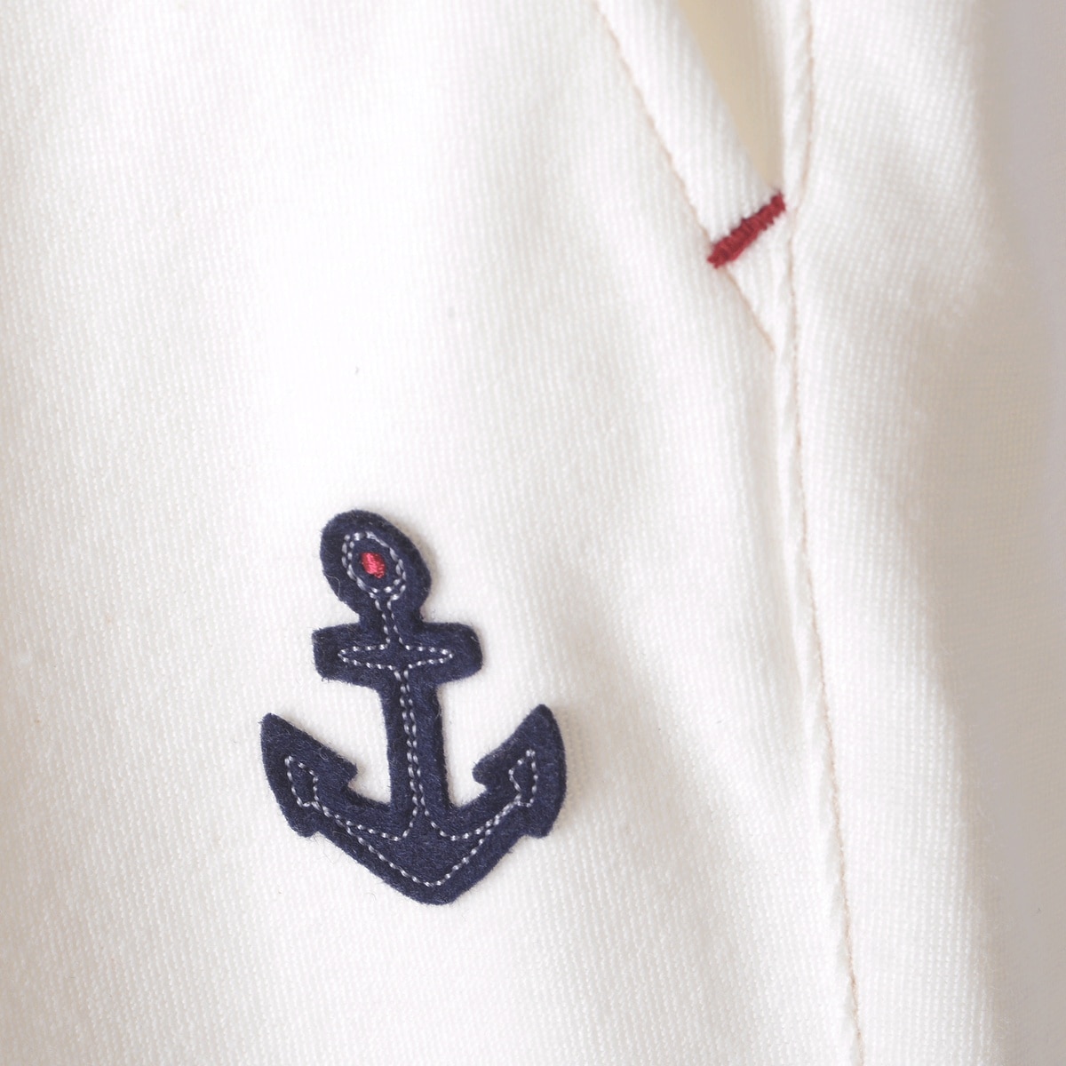 イカリのワッペンをワンポイントデザインしたスウェットパンツです。