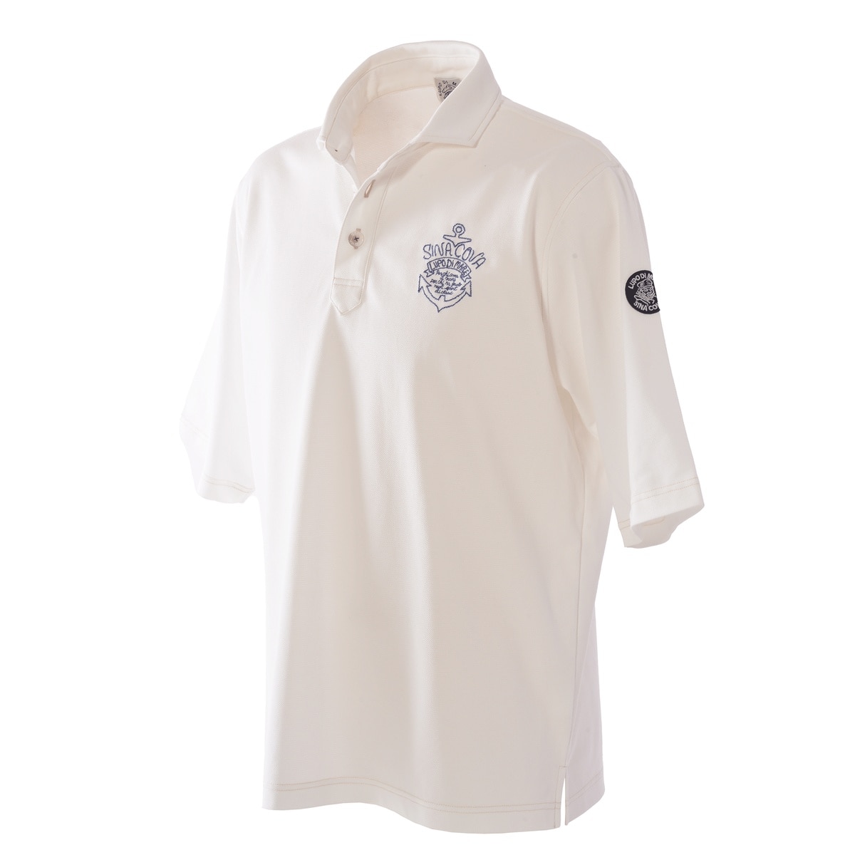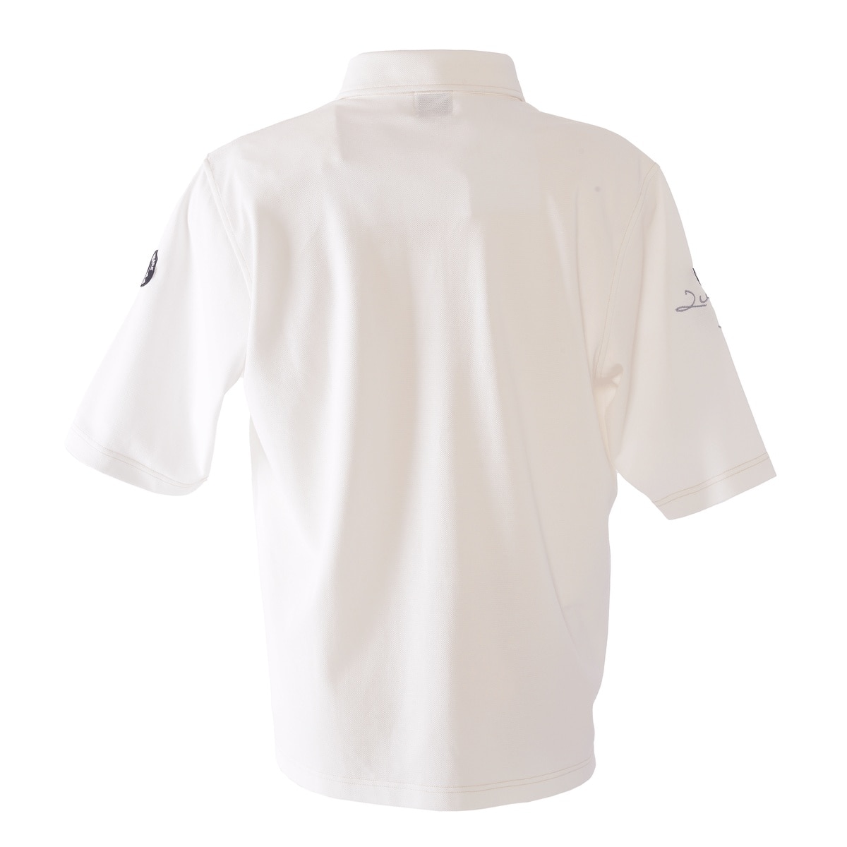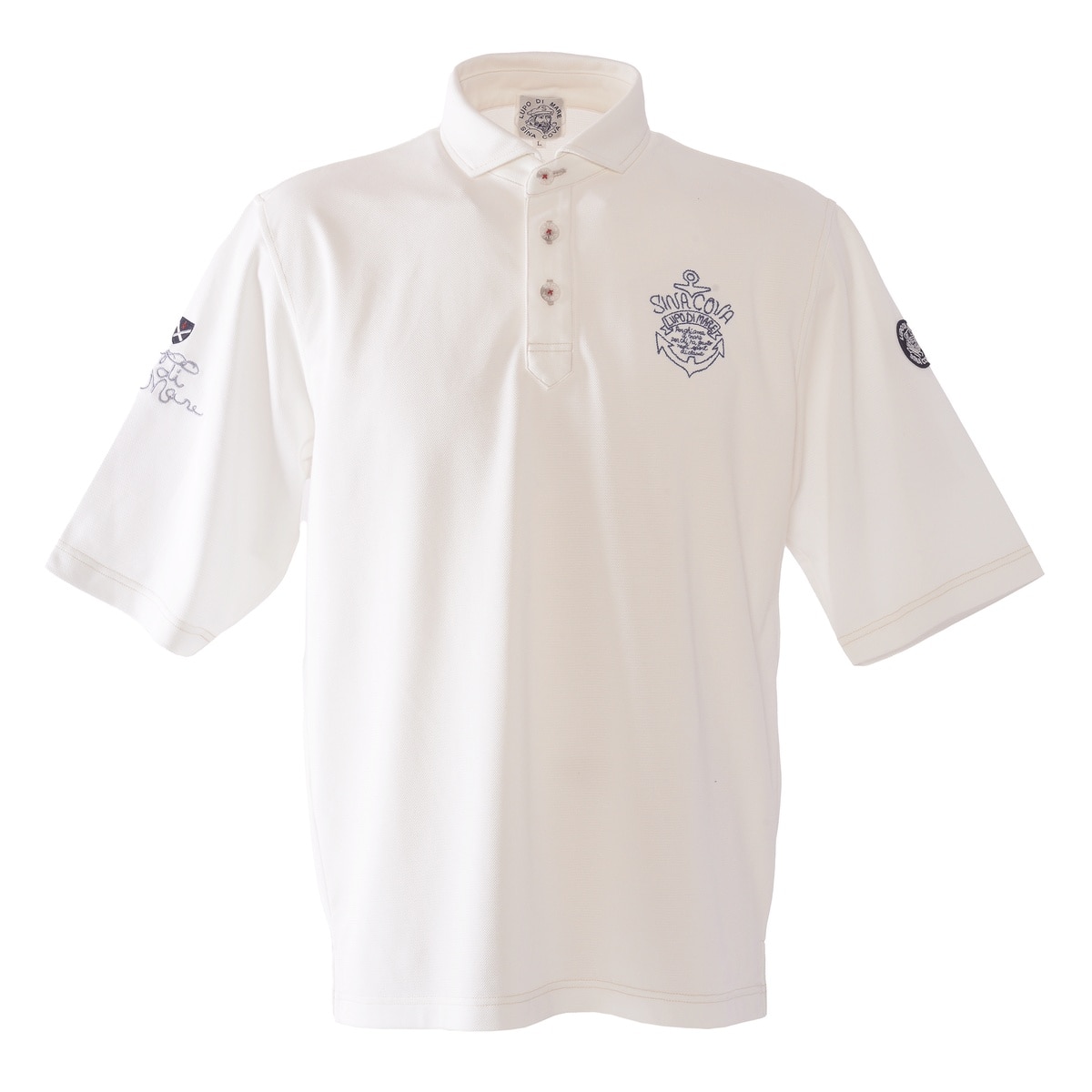 胸と袖にエンブレム調の刺繍とロゴをデザインした5分袖ポロシャツです。生地はやや薄いカノコ編みの生地を使用し肌への密着が少なく特殊構造繊維のセオαを使用することで吸水・速乾・発散の機能がプラスされ夏快適な高機能ポロシャツです。・袖の少し長5分袖・高機能生地・湿度の高い夏にピッタリ