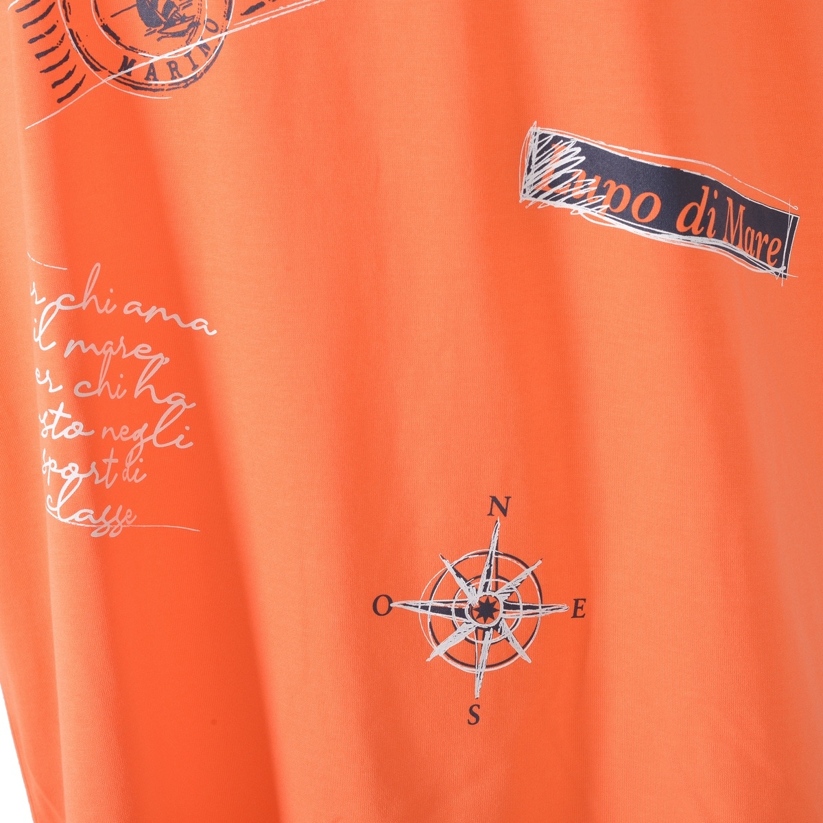 シナコバオリジナルのモチーフをフロントにデザインした半袖シャツです。生地にはハイゲージで編み立てガス焼き工程を通すことで毛羽立ちを抑えさらっとした肌触りで耐久性も優れた素材を使用しています。クリアーで高級感のあるオリジナル素材です。・シルケットバイオ加工・程よい光沢とハリのある生地