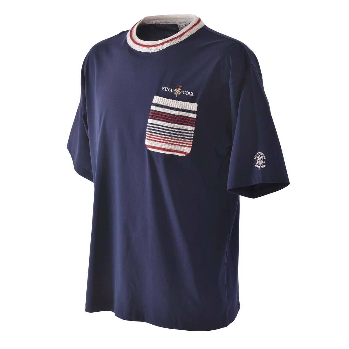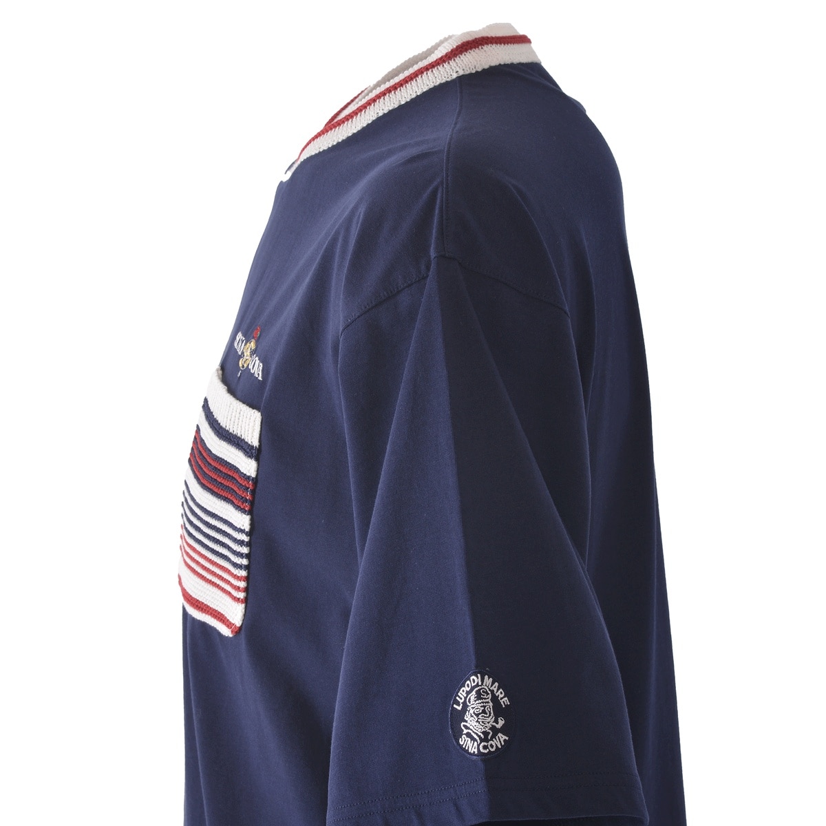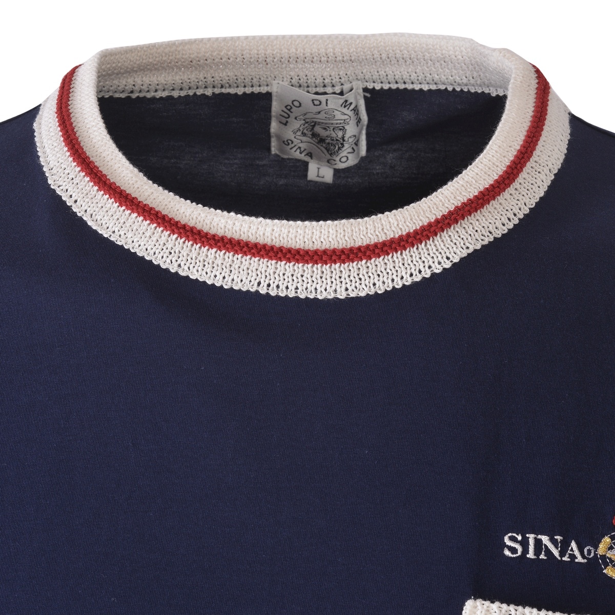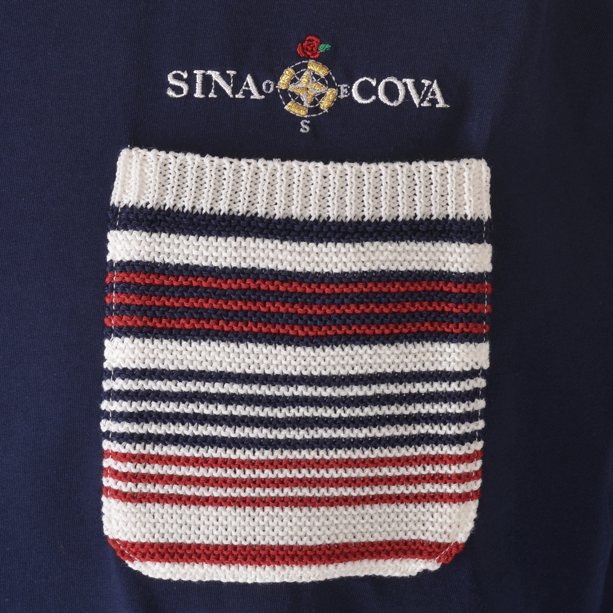 ポケットと衿をボーダー柄のニット素材を使用し、ポケット上に「SINA COVA」文字、羅針盤とバラのモチーフを刺繍デザインしたニットポケット半袖Tシャツです。生地は毛羽立ちを抑えた高品質な超長綿を使用し透けにくく肌触りにもこだわりました。・高品質綿素材・ワンポイントデザインTシャツ・透けにくい生地・バラの花モチーフ・サイズS~LL展開