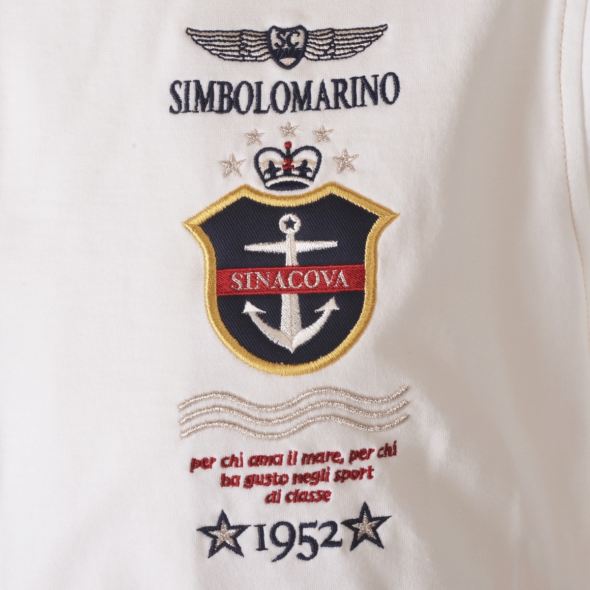 希少性の高いハイゲージの裏毛機を使用して、従来の細番手の糸を使用した薄い素材ですが生地の加工により、ソフトな風合いと膨らみのある素材を使用したパーカーです。カットソーとナイロンの異素材を組み合わせたパーカーで、胸の刺繍は、階級章とエンブレムをイメージしたアップリケ仕様となっており、腰ポケット部分には左に左舷のイメージでレッド、右に右舷のイメージでグリーンのボタンを付け、内側には内ポケットとして使用可能なセーフティポケットを付けています。