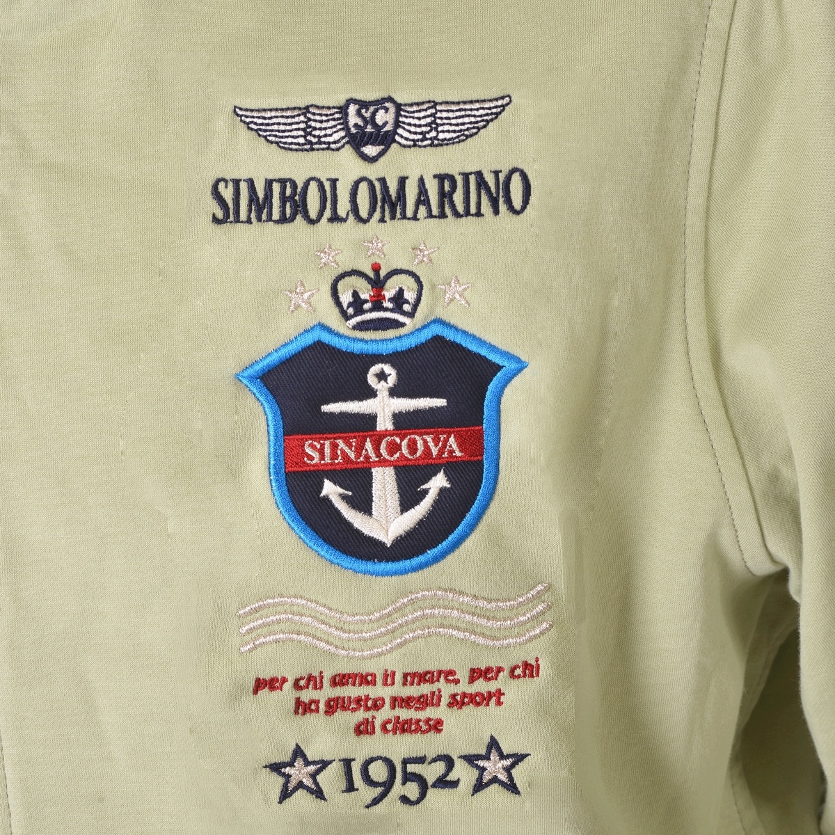 希少性の高いハイゲージの裏毛機を使用して、従来の細番手の糸を使用した薄い素材ですが生地の加工により、ソフトな風合いと膨らみのある素材を使用したパーカーです。カットソーとナイロンの異素材を組み合わせたパーカーで、胸の刺繍は、階級章とエンブレムをイメージしたアップリケ仕様となっており、腰ポケット部分には左に左舷のイメージでレッド、右に右舷のイメージでグリーンのボタンを付け、内側には内ポケットとして使用可能なセーフティポケットを付けています。