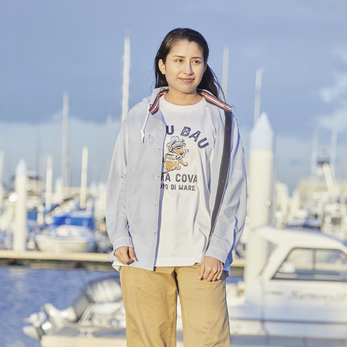 左胸と右袖に「SINA COVA」文字刺繍をデザインしたフード付きシャツジャケットです。ネック裏や袖内側に配色テープをデザインし程よいアクセントを加えました。綿混のサッカーの超軽量ドットエアーの素材を使用し特殊技術による非常に小さな通気孔により涼しさを体感していただけます。・撥水加工・上下左右に伸びる2WAYストレッチ・東レのドットエア素材使用・軽量・通気性◎・シワになりにくい・夏の冷房対策にも・サイズS~LL展開【SINA COVA 2025 Spring & Summer Style Book】掲載商品モデル着用 カラー:ブルー女性 身長:159㎝ / 着用:S size