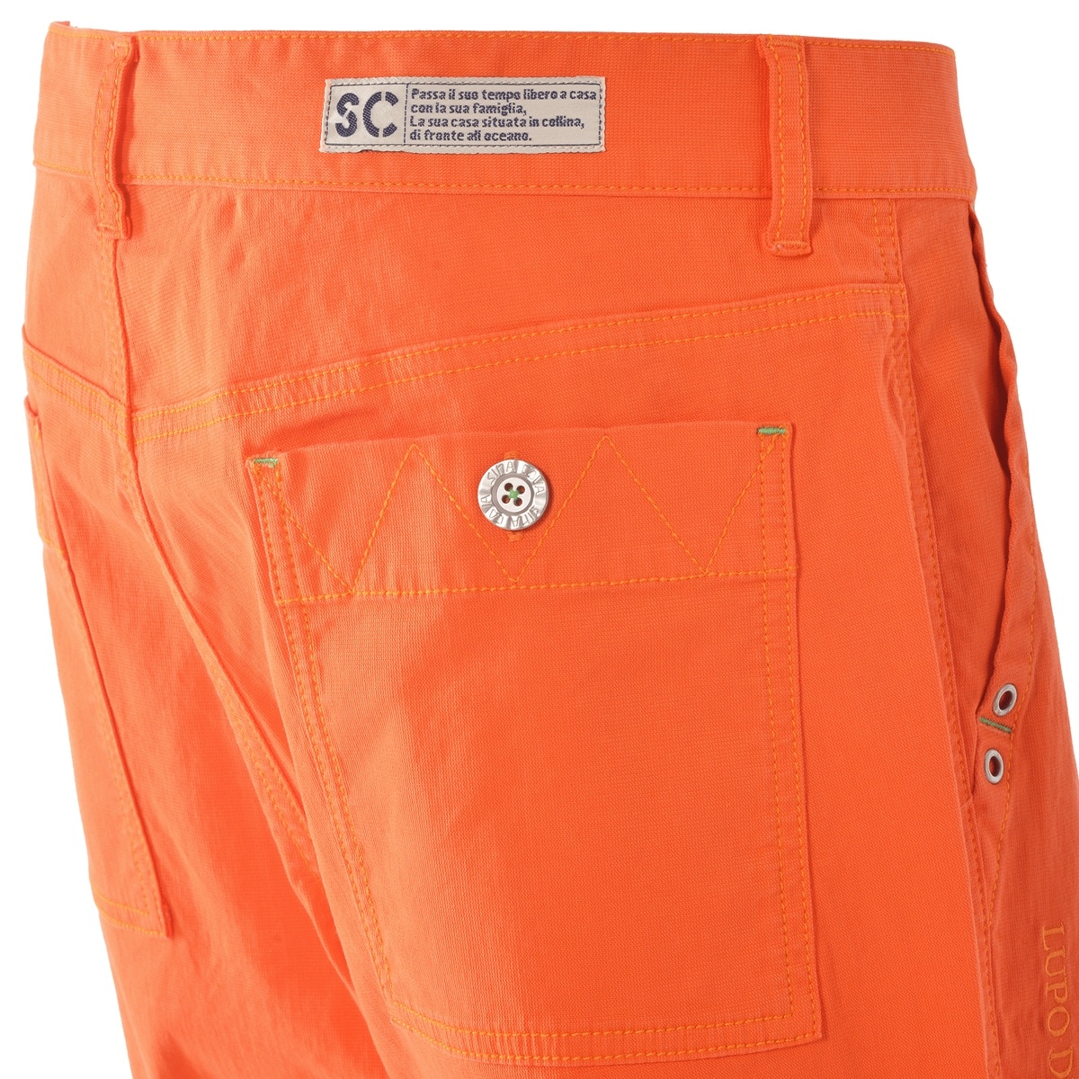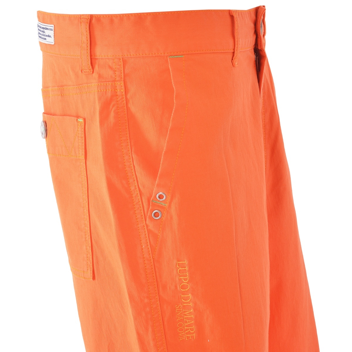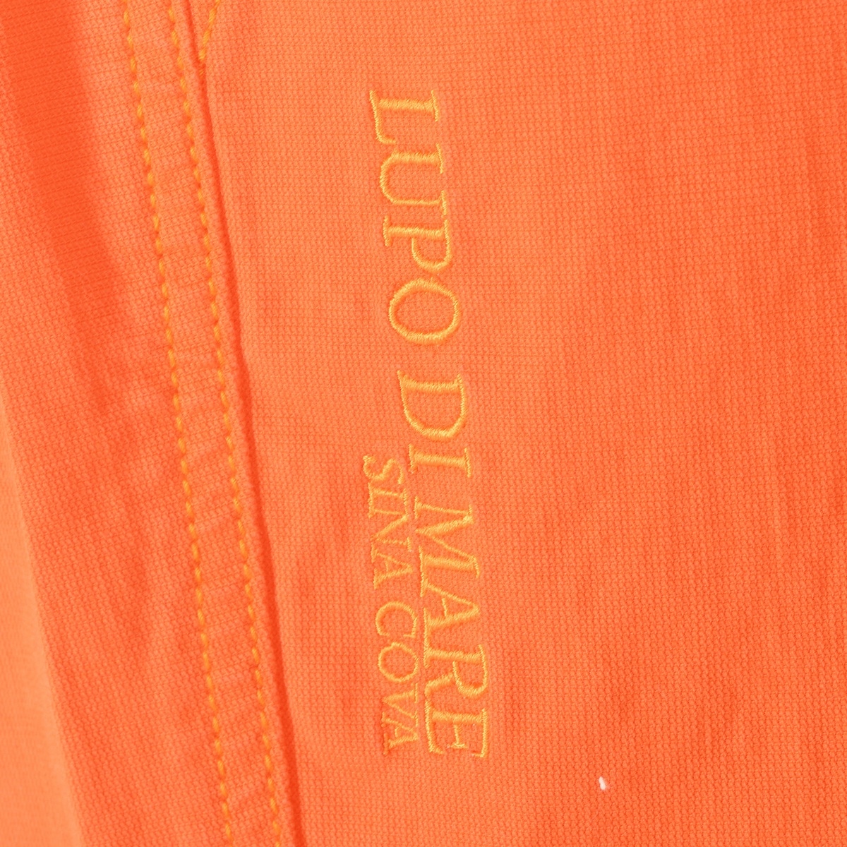 右足サイドに「LUPO DI MARE」「SINA COVA」の刺繍をデザインしたノータックテーパードパンツです。