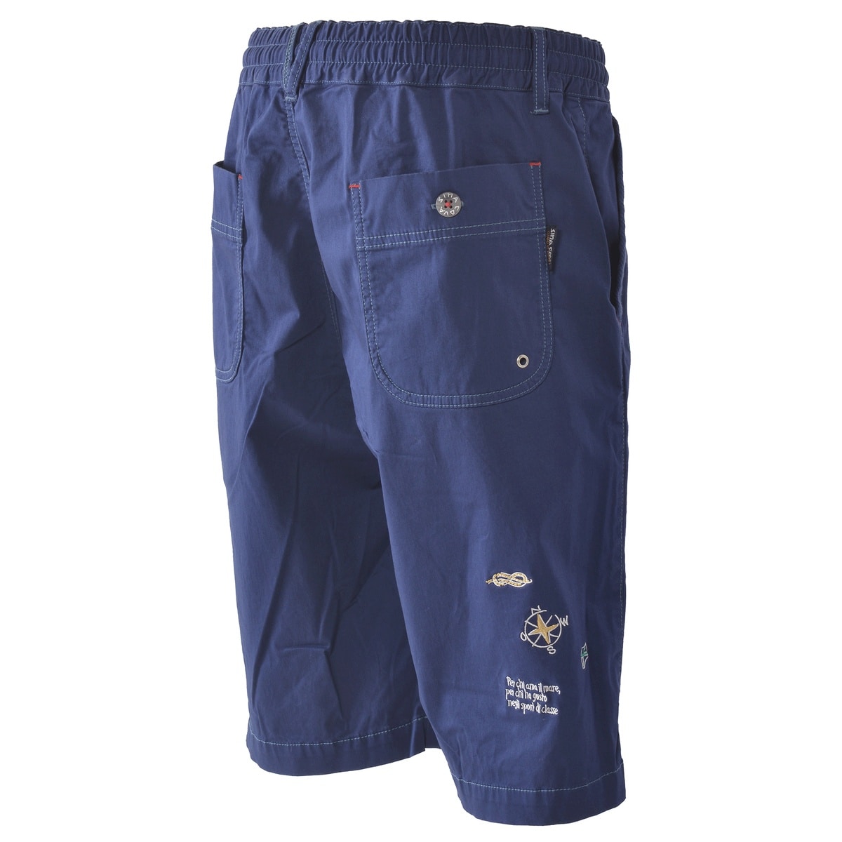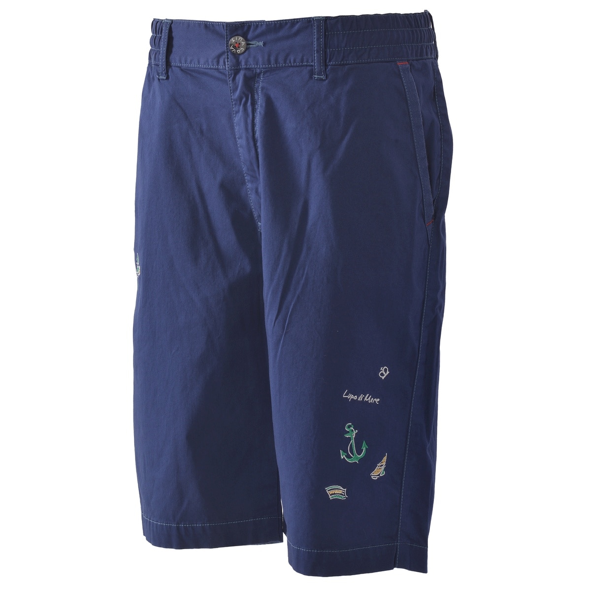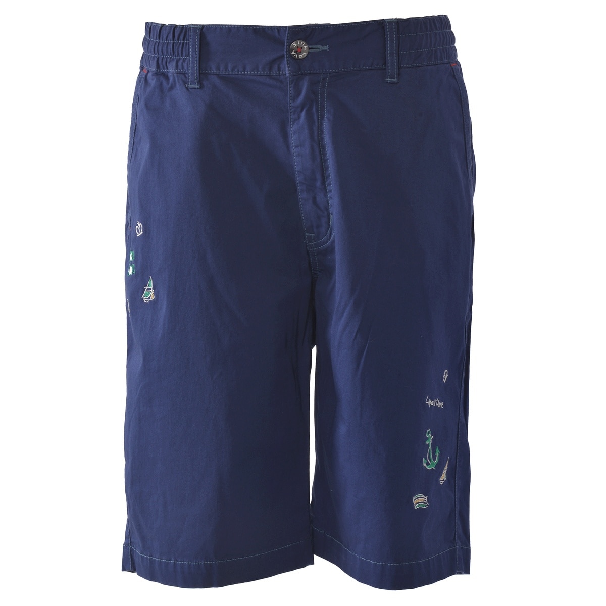シナコバマリンモチーフを刺繍やプリントで各所にデザインしたショートパンツです。オリジナルのボタンやステッチワークにもこだわりシナコバらしいマリンショートパンチに仕上げました。生地にはサテン組織で織り上げやや光沢感がありソフトでストレッチ性も高い素材を使用しています。・ウエストコード付き・ウエストシャーリング・ひざ丈・その他(K)サイズ有り経糸に60番手の細番手を使用し緯糸に40番手のストレッチ性のある糸を打ち込んで、サテン組織で織り上げ、光沢感があり、柔らかく、軽くて伸びのある素材を使用しました。ウエストシャーリングで、3か所に王冠、ロゴ、イカリなどをラフな感じで刺繍を施し、総柄とはまた違う遊び心を入れたショートパンツにしました。同系色の配色と太番手のステッチワーク、カンドメ配色が魅力の商品です。【SINA COVA 2025 Spring & Summer Style Book】掲載商品