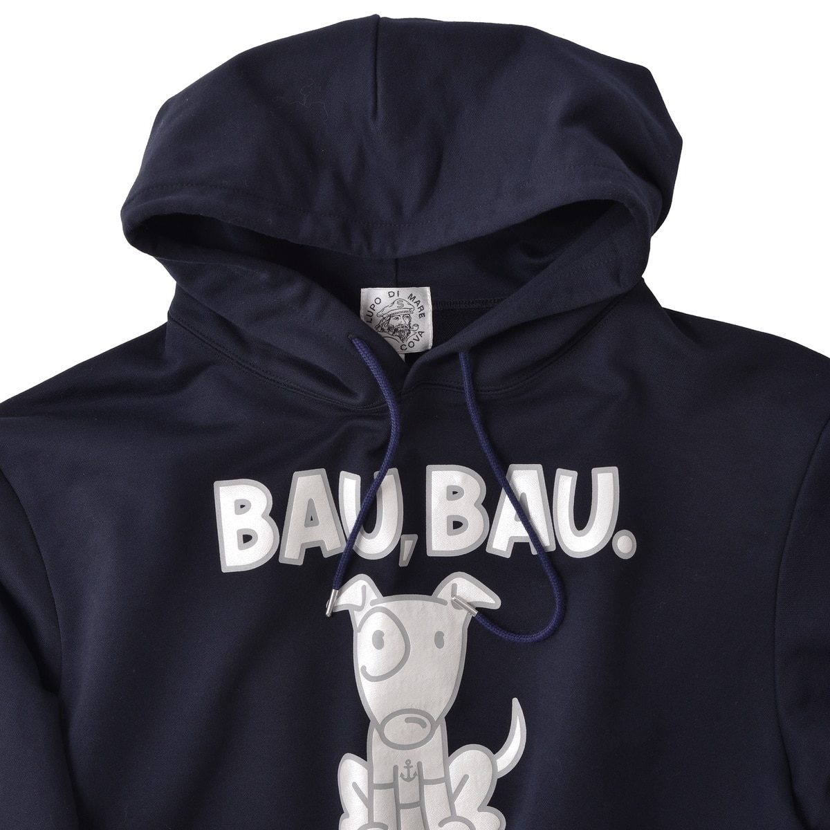 フロントにドッグモチーフを高級感のあるパール発泡プリントでデザインしたプルオーバーパーカーです。