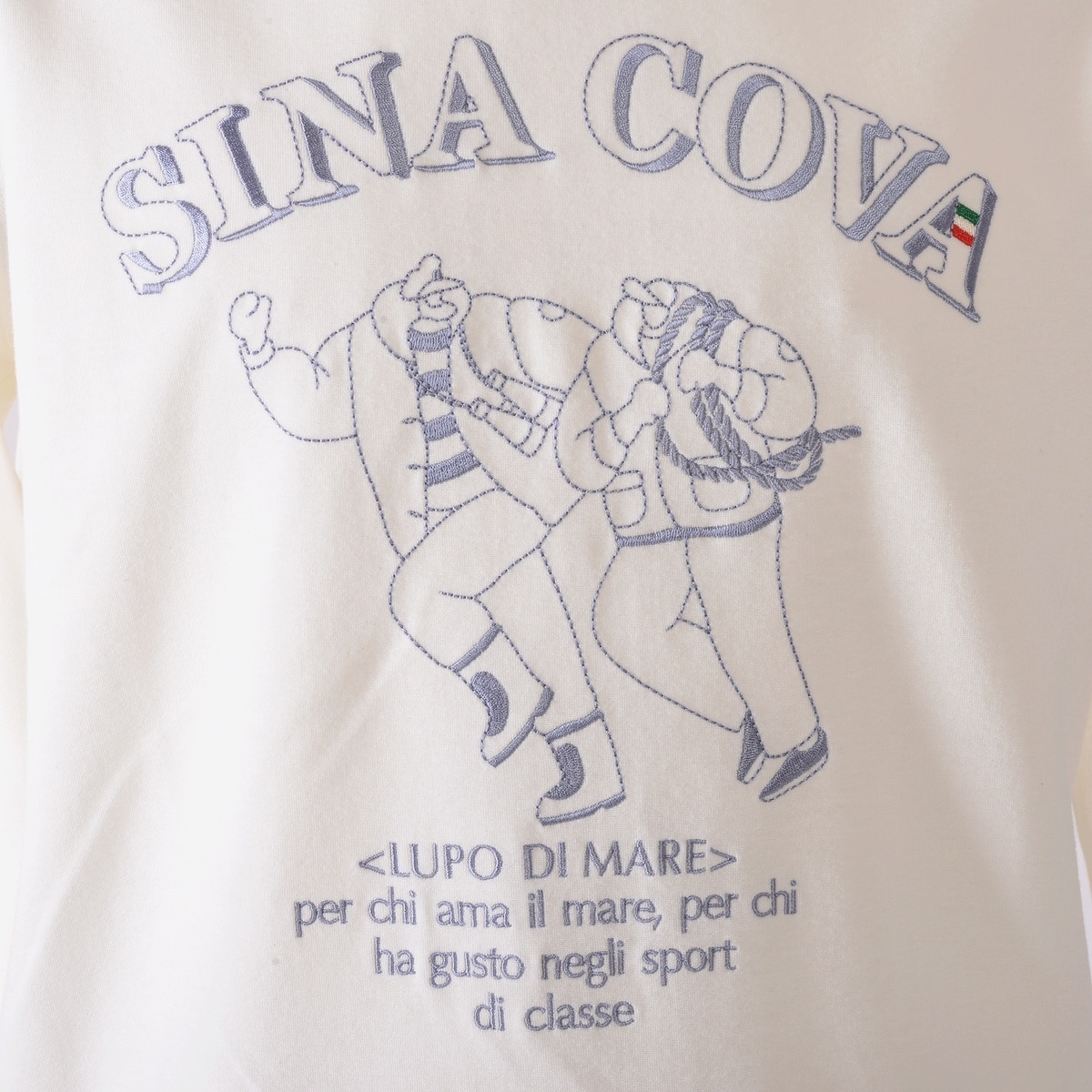 キャプテンとクルーのモチーフを生地と同系色の刺繍でデザインしたクルーネックトレーナーです。生地はソフトでコシのあるコーマ糸で編み上げ、ドットのようなコンパクトな形状により新鮮な表面感とパイルにありがちな引っ掛かりを抑えたストレッチコンパクトパイル素材を使用しています。・スウェットトレーナー・生地はやや薄め・裏毛・ストレッチコンパクトパイル素材を使用し高いストレッチ性
