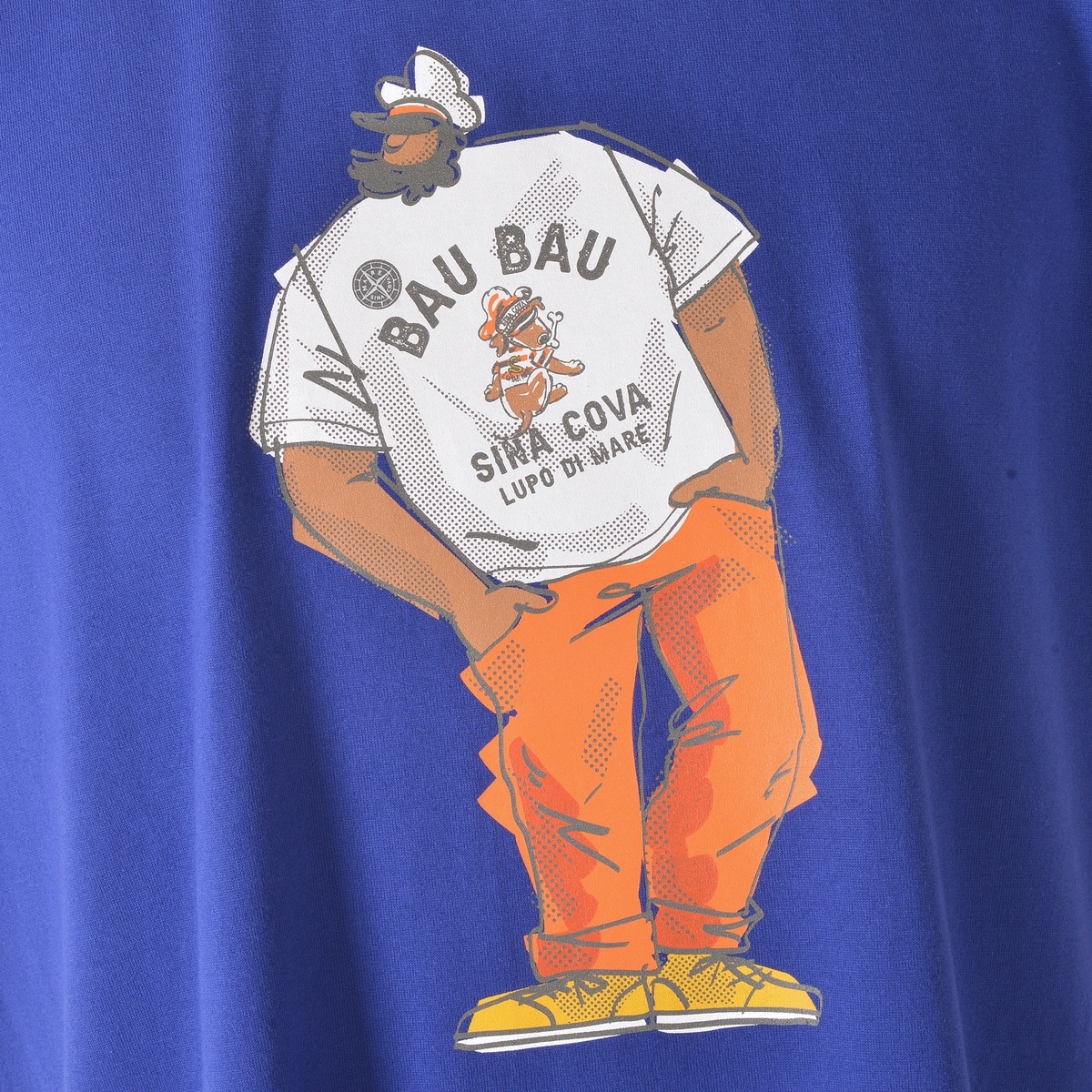 「BAU,BAU.」シリーズのモチーフのTシャツを着たキャプテンをプリントデザインした半袖Tシャツです。生地にはシナコバTシャツ定番の生地40/2天竺素材を使用し吸水性・通気性に優れたアイテムです。・ドッグモチーフ「BAU,BAU.」シリーズ・ユニセックス 男女兼用・洗濯での型崩れを抑えた生地・その他大きいサイズ(K)サイズはこちら【SINA COVA 2025 Spring & Summer Style Book】掲載商品モデル着用 カラー:ホワイト男性 身長:180cm / 着用:L sizeモデル着用 カラー:ピンク女性 身長:159㎝ / 着用:L size