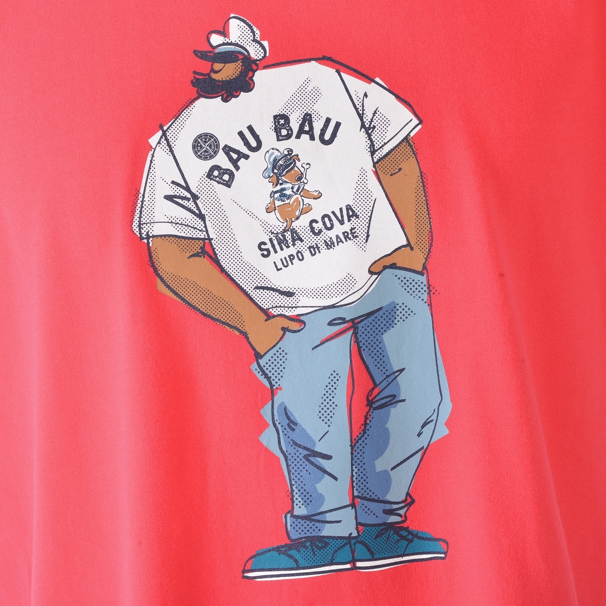 「BAU,BAU.」シリーズのモチーフのTシャツを着たキャプテンをプリントデザインした半袖Tシャツです。生地にはシナコバTシャツ定番の生地40/2天竺素材を使用し吸水性・通気性に優れたアイテムです。・ドッグモチーフ「BAU,BAU.」シリーズ・ユニセックス 男女兼用・洗濯での型崩れを抑えた生地・その他大きいサイズ(K)サイズはこちら【SINA COVA 2025 Spring & Summer Style Book】掲載商品モデル着用 カラー:ホワイト男性 身長:180cm / 着用:L sizeモデル着用 カラー:ピンク女性 身長:159㎝ / 着用:L size