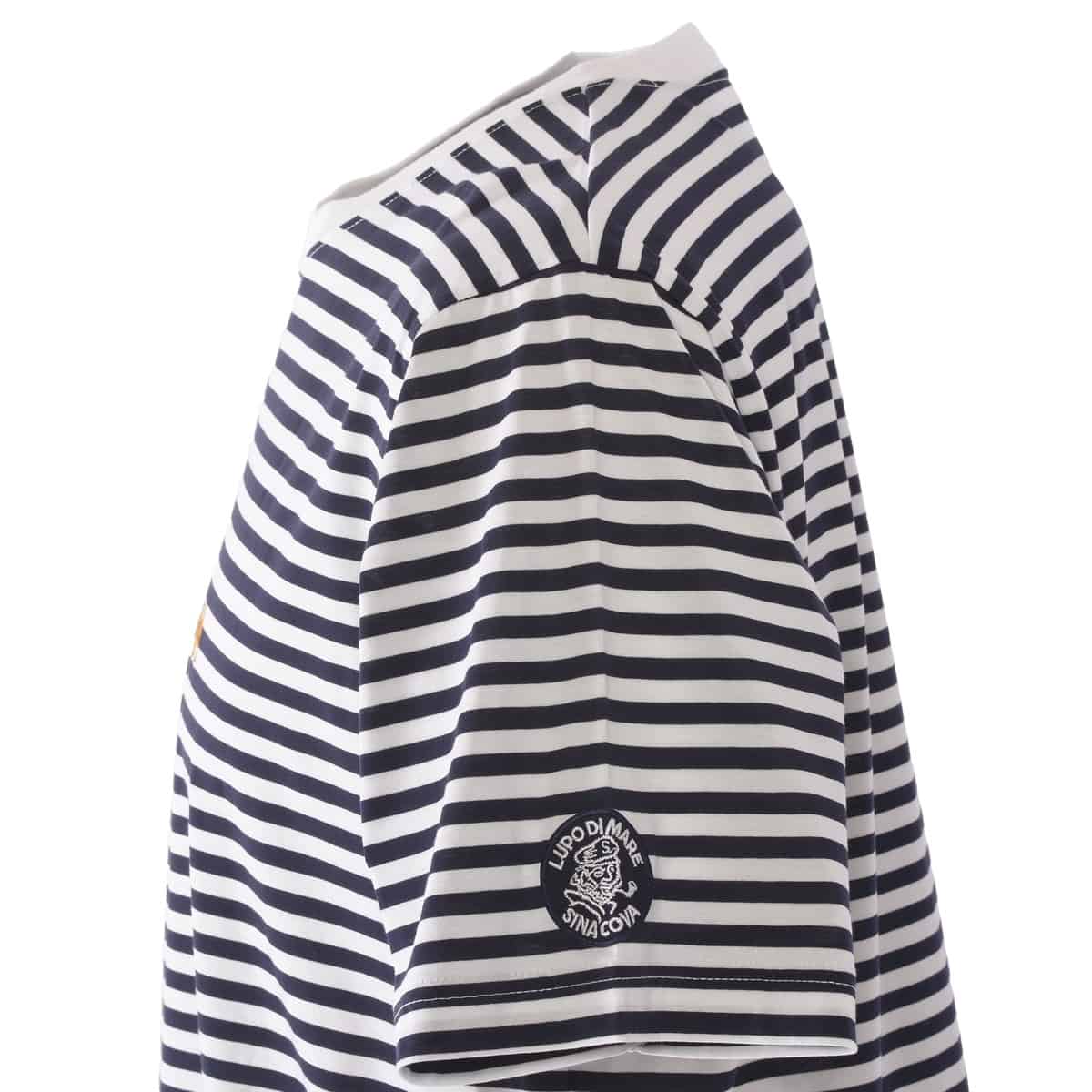 「SINA COVA」文字刺繍にさり気なくキャプテンの刺繍をデザインしたボーダー柄半袖Tシャツです。特殊なシルケットバイオ加工により美しい光沢が特徴の素材プリマシャインを使用。元々毛羽の少ないコンパクト糸をハイゲージに編むことによりクリアで滑らかなタッチが心地よい素材です。通気性や吸水性はもちろんのこと、くたびれにくい強度を誇っております。接触冷感性もあり、夏のコーデ向きのアイテムです・サイズS~LL展開・横ストライプ柄・接触冷感・高い吸水性と通気性