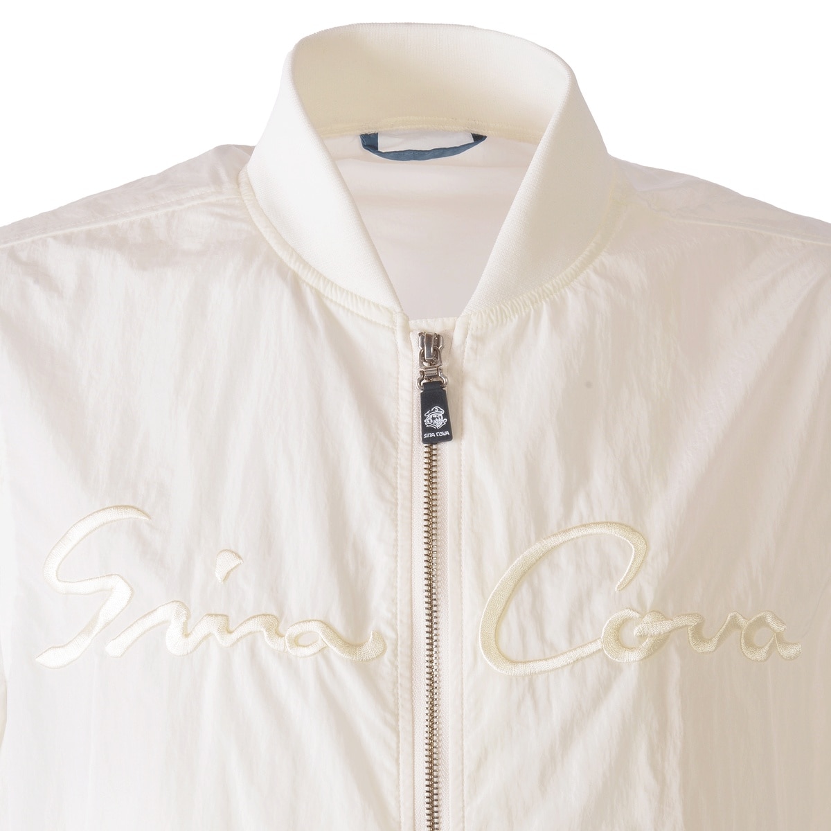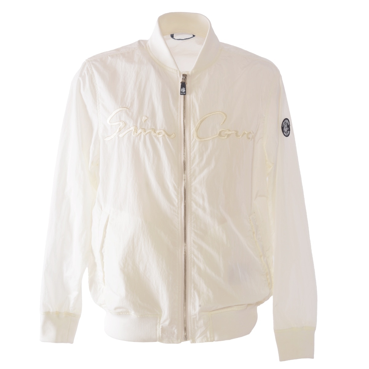 「SINA COVA」文字刺繍を本体のカラーと同色でデザインし鮮やかな色でクールさとキレイなムードを演出したボンバージャケットです。