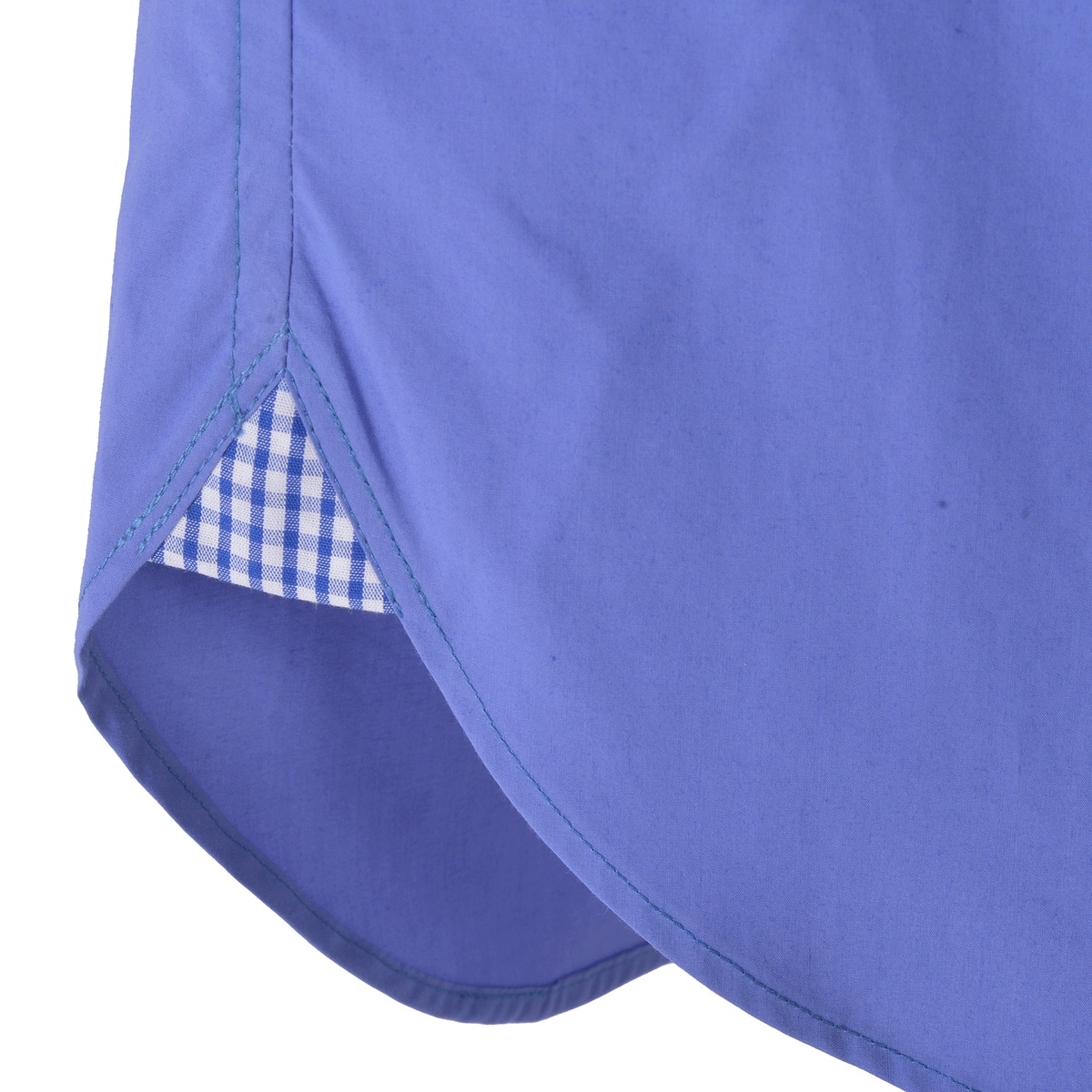 カフス裏や衿裏、にギンガムチェック柄の生地を使用しアクセントをプラスしました。