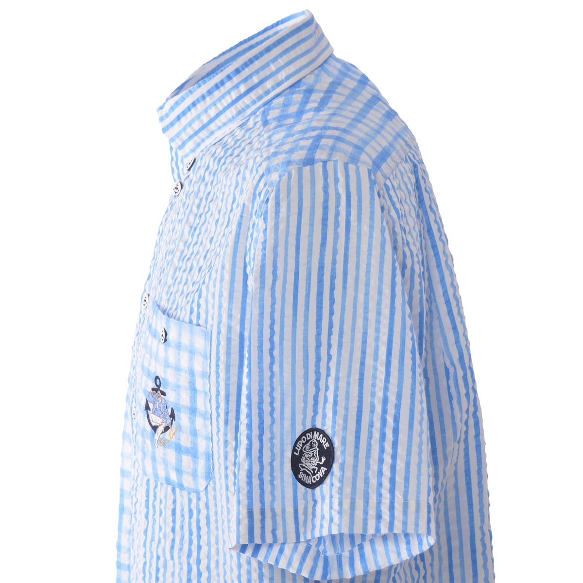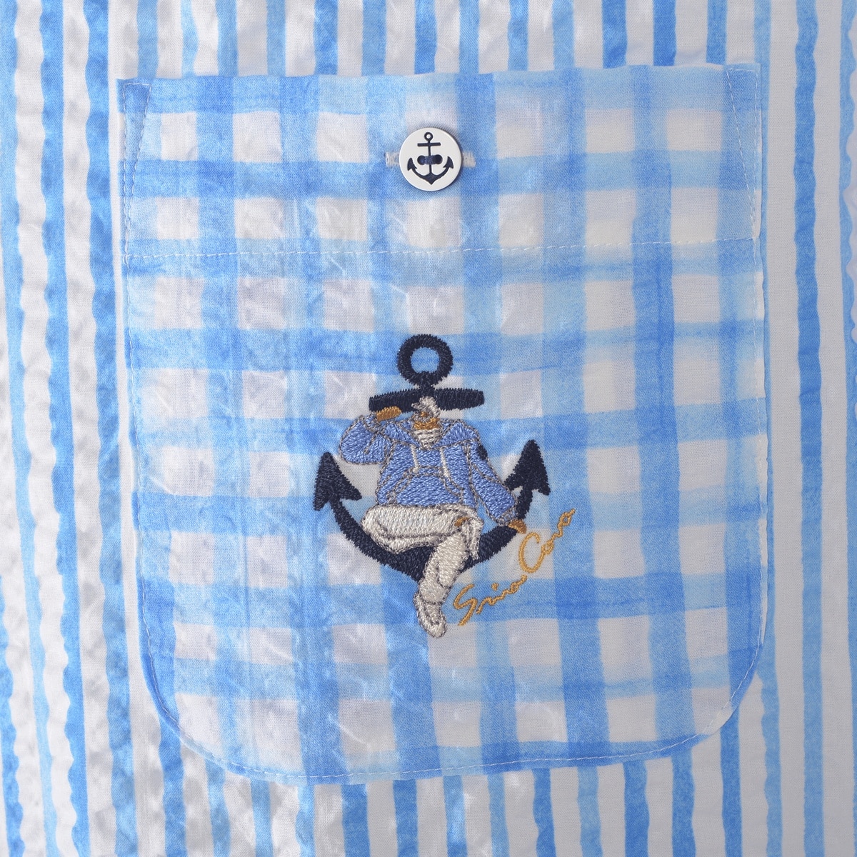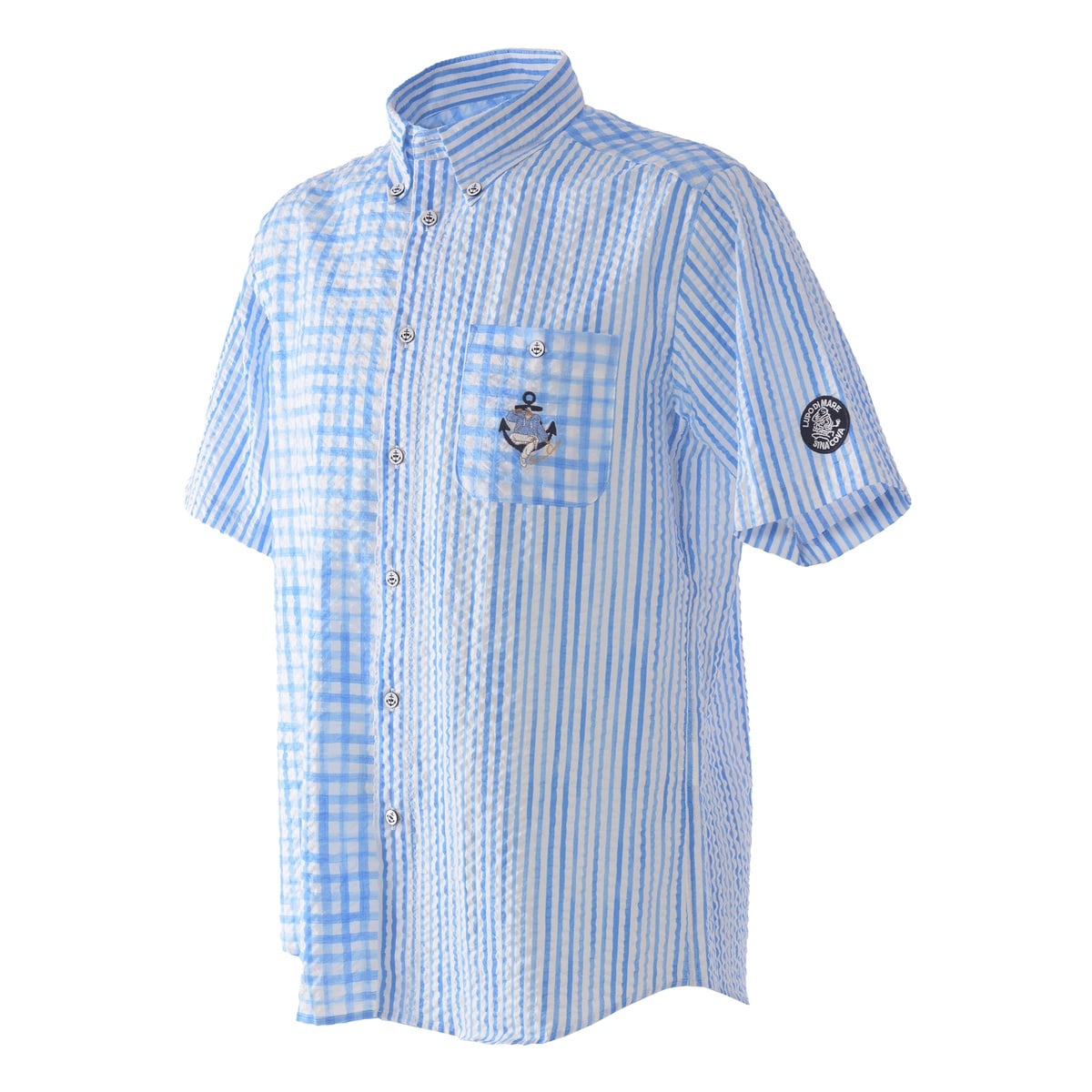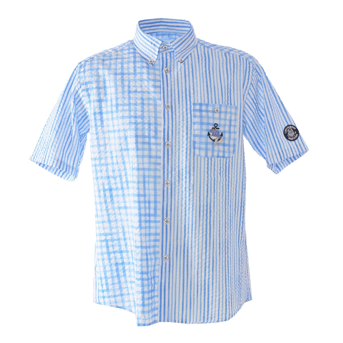 胸ポケットにキャプテンの刺繍をデザインしたクレイジーパターン半袖ボタンダウンシャツです。シナコバシャツの代名詞でもあるクレイジーパターンシャツを手書き風のチェックとストライプ柄でデザインしました。夏に快適なサッカー生地を使用し体のラインを拾わないボックスシルエットを採用し清涼感のある一着に仕上げました。・さらっと肌離れが良く通気性のある素材・表面に凹凸があり汗をかいてもまとわりつきにくい【SINA COVA 2025 Spring & Summer Style Book】掲載商品
