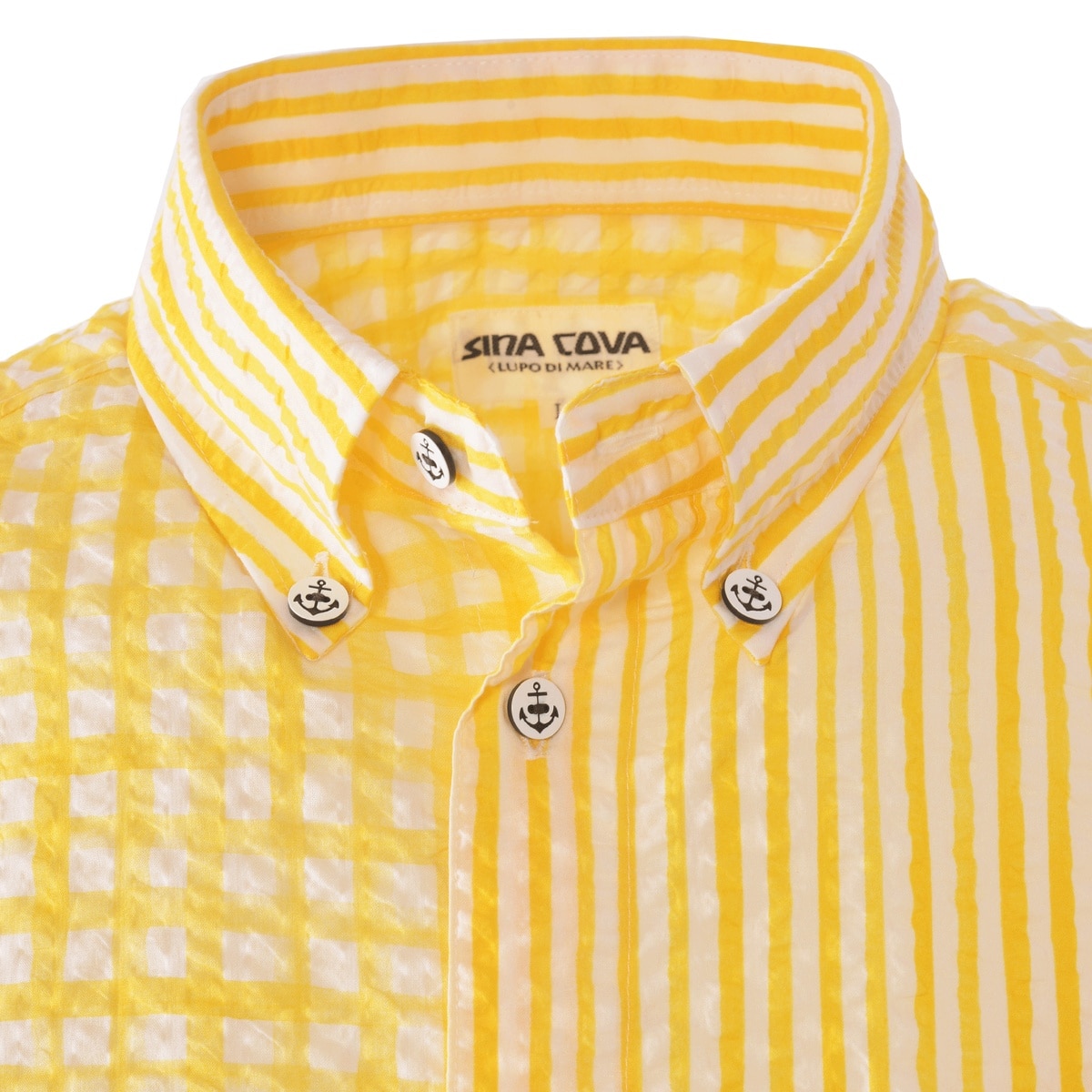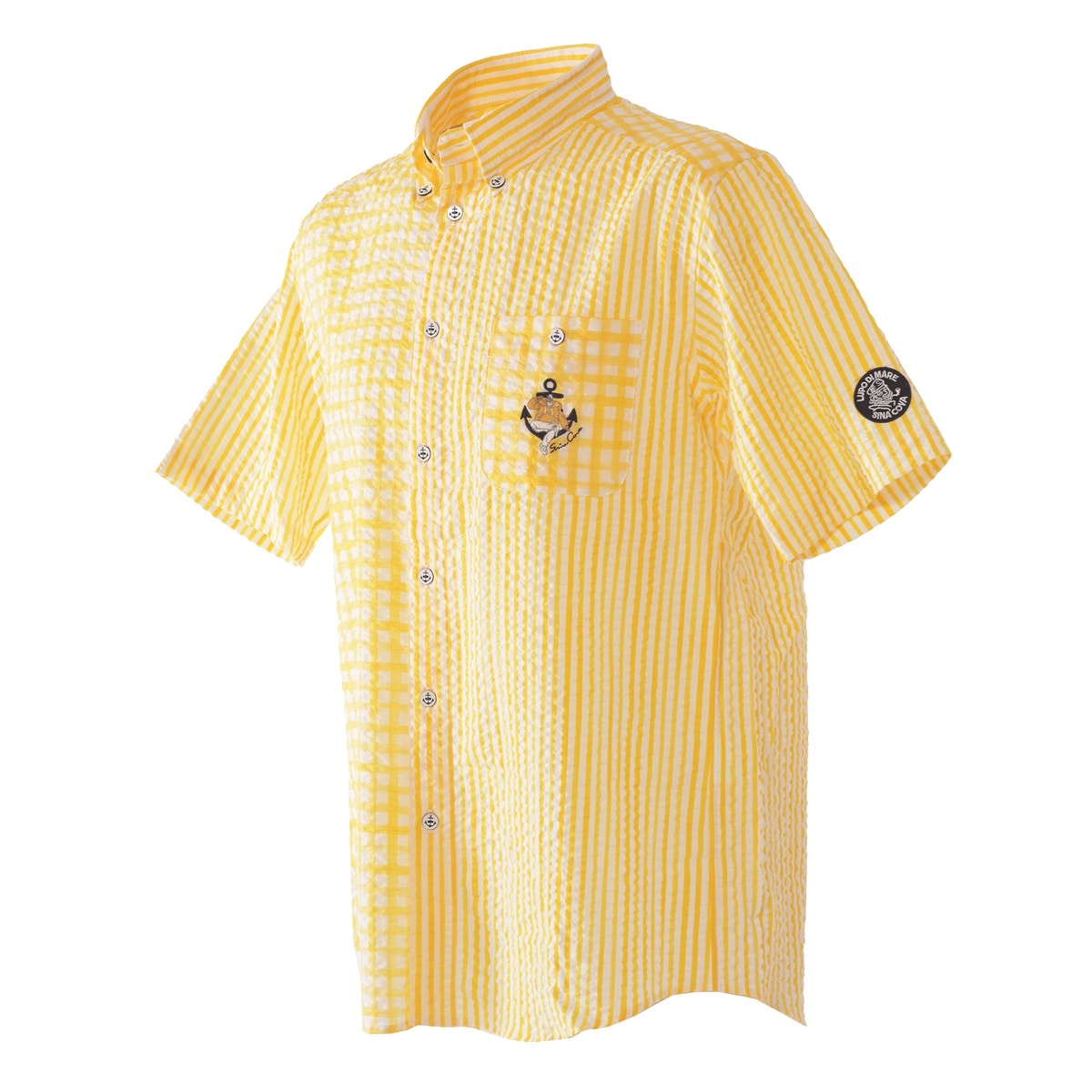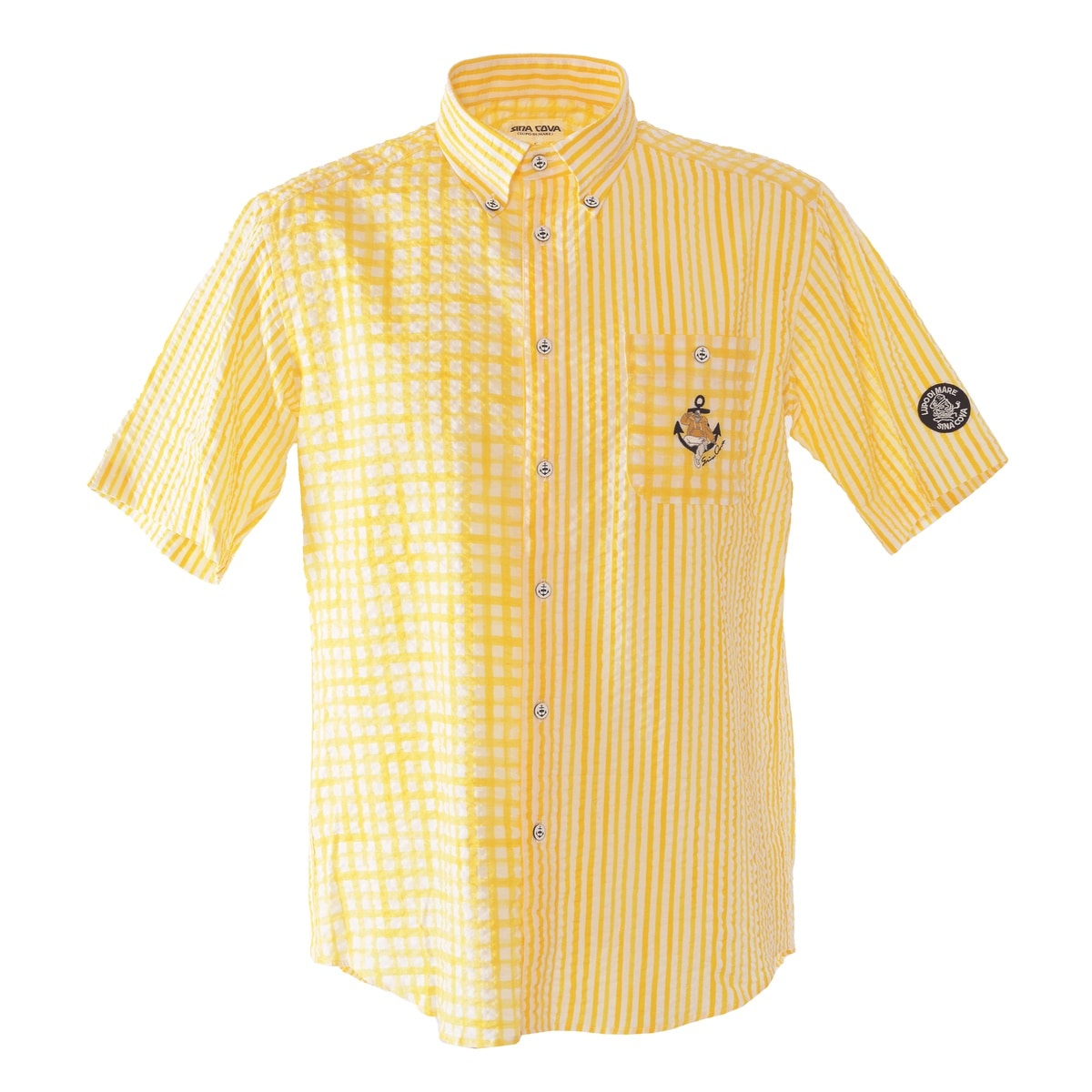 胸ポケットにキャプテンの刺繍をデザインしたクレイジーパターン半袖ボタンダウンシャツです。シナコバシャツの代名詞でもあるクレイジーパターンシャツを手書き風のチェックとストライプ柄でデザインしました。夏に快適なサッカー生地を使用し体のラインを拾わないボックスシルエットを採用し清涼感のある一着に仕上げました。・さらっと肌離れが良く通気性のある素材・表面に凹凸があり汗をかいてもまとわりつきにくい【SINA COVA 2025 Spring & Summer Style Book】掲載商品