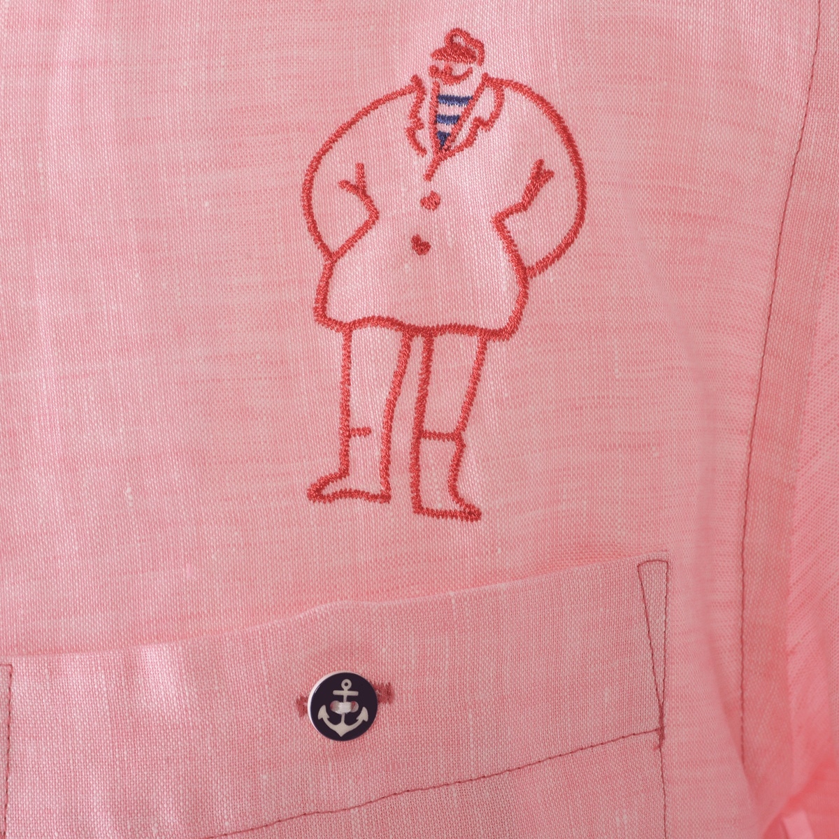 キャンプテンとクルーの刺繍をフロントには前面にバックには右裾にさり気なくデザインした麻100%半袖レギュラーシャツです。ミルキーカラーでの展開で春夏のムードを一気に上げる半袖シャツです。体の線を拾わないボックスシルエットです。シャツの定番として幅広い層から愛されているレギュラーカラーの衿型です。盛夏にぴったりな清涼感のある細番手フレンチリネン100%のシャンブレー素材を使用。麻特有のシャリ感を兼ね備えながら、発色性が良く、ソフトで軽く、通気性も良く洗濯してもへたれにくい強度を持っています。アイテム全体にキャプテンや水夫モチーフの刺繍を施してブランドらしさを演出しています。大人っぽく同系色でまとめ、高級感のある仕上がりです。