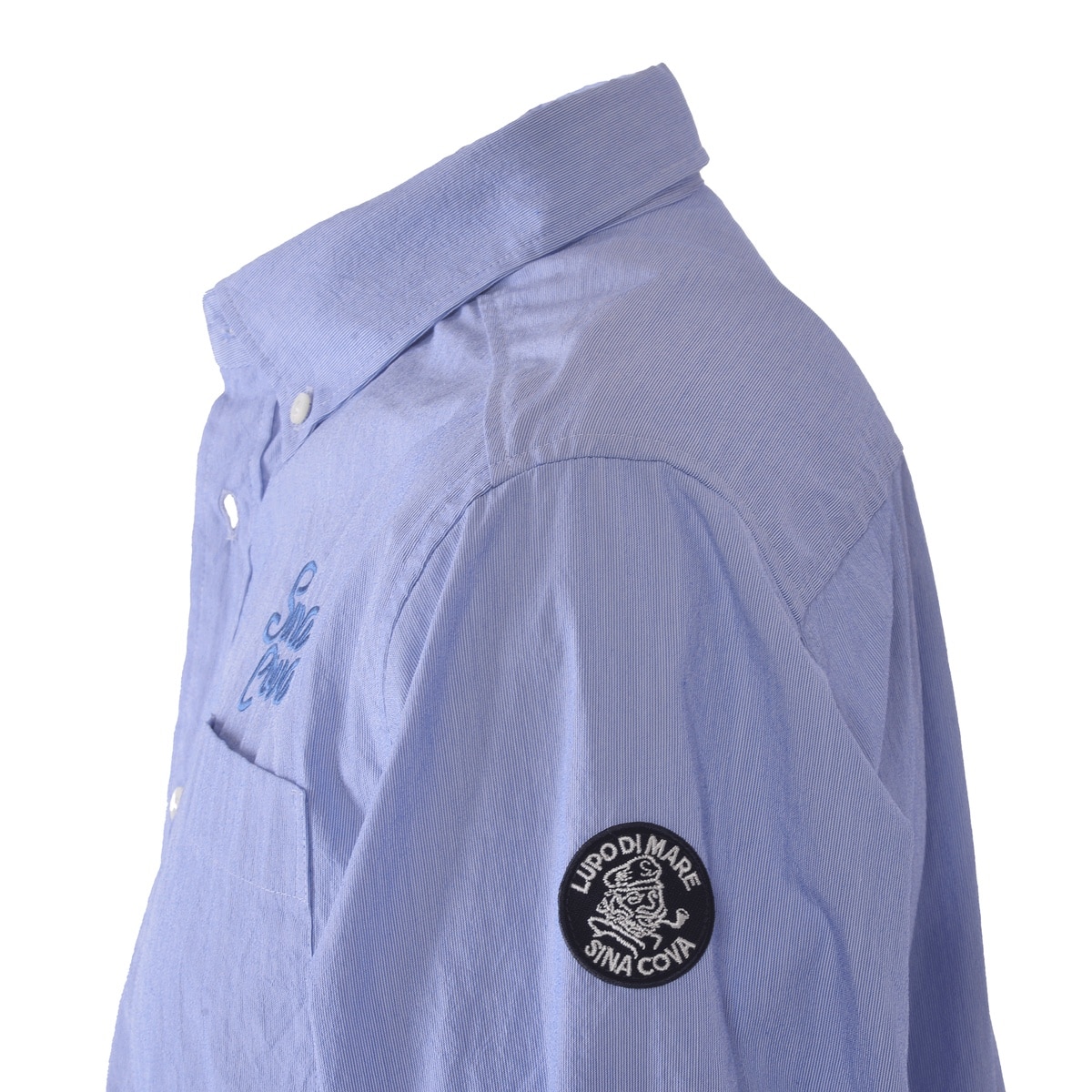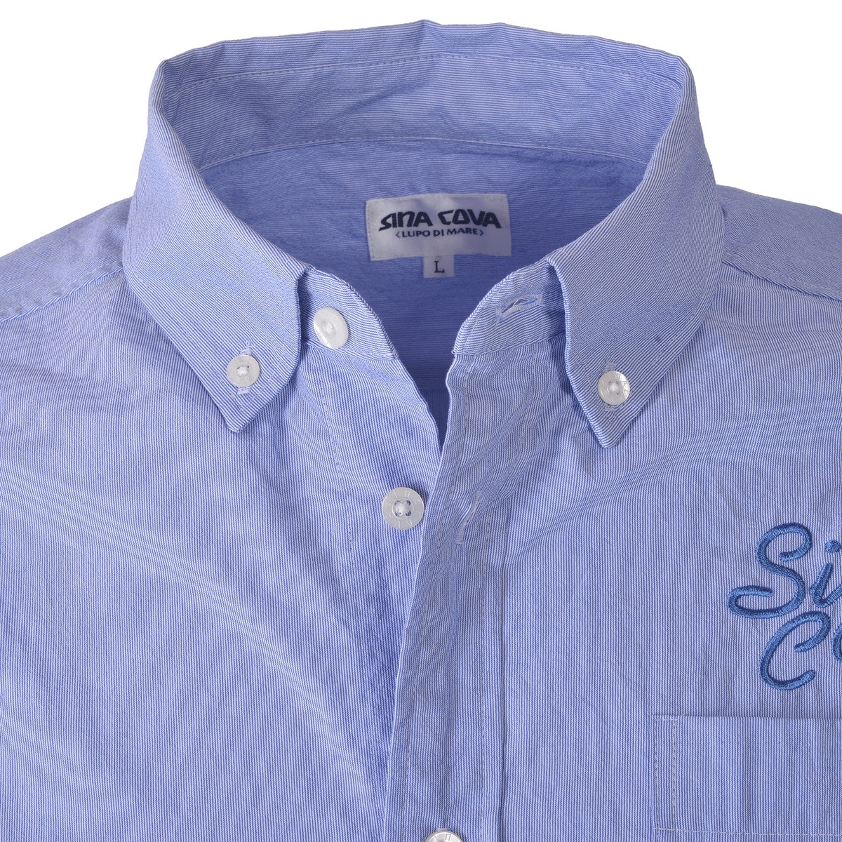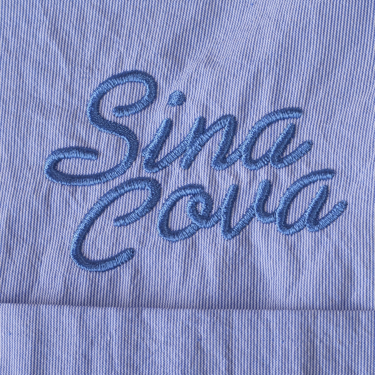 左胸に同系色で「SINA COVA」刺繍をデザインし、ワッシャー加工で程よいシワ感を出した細かい