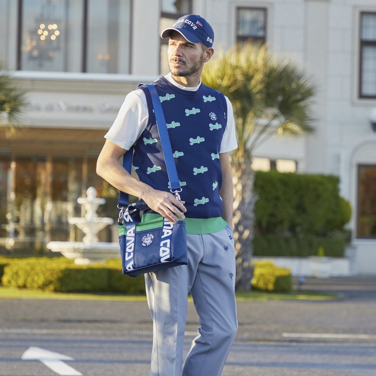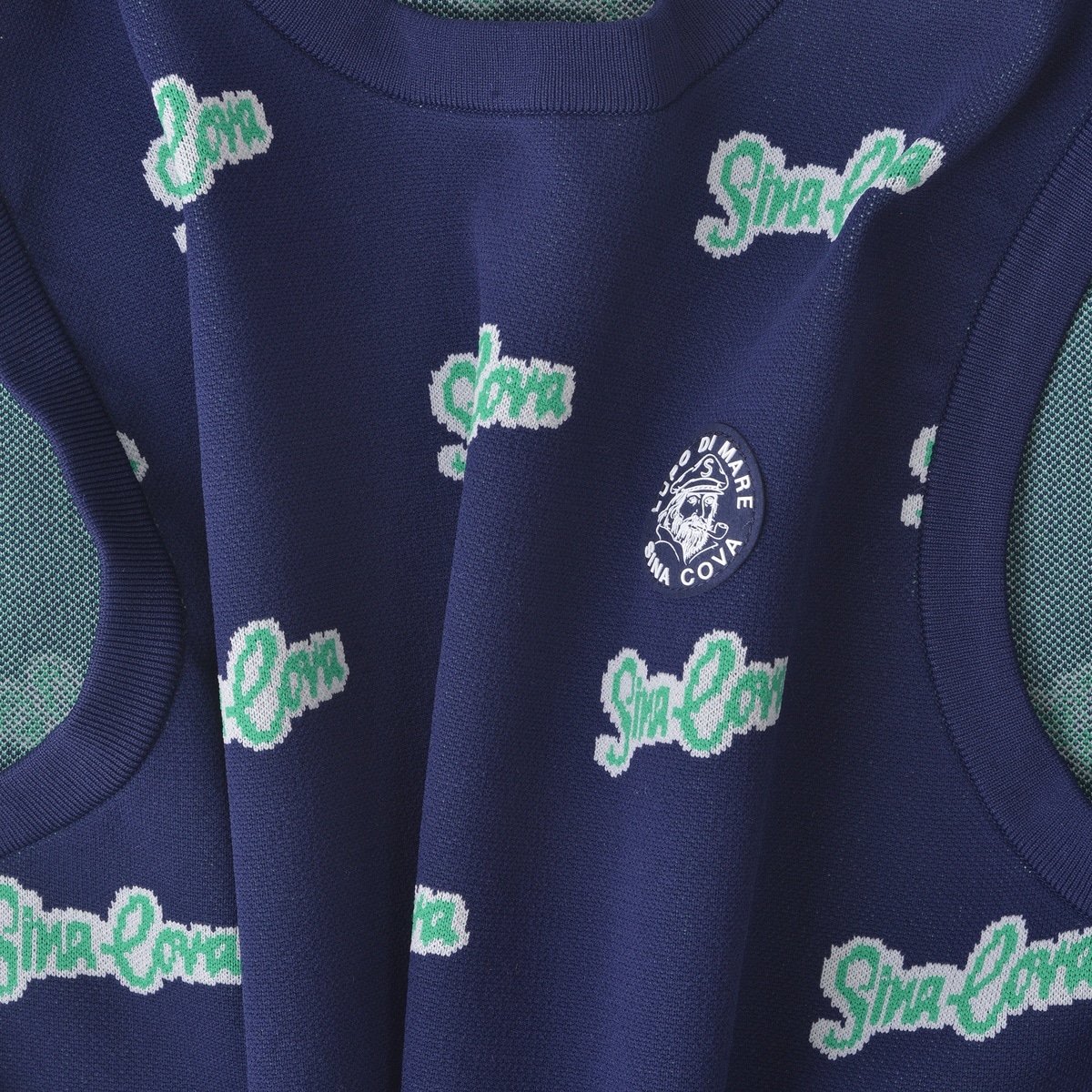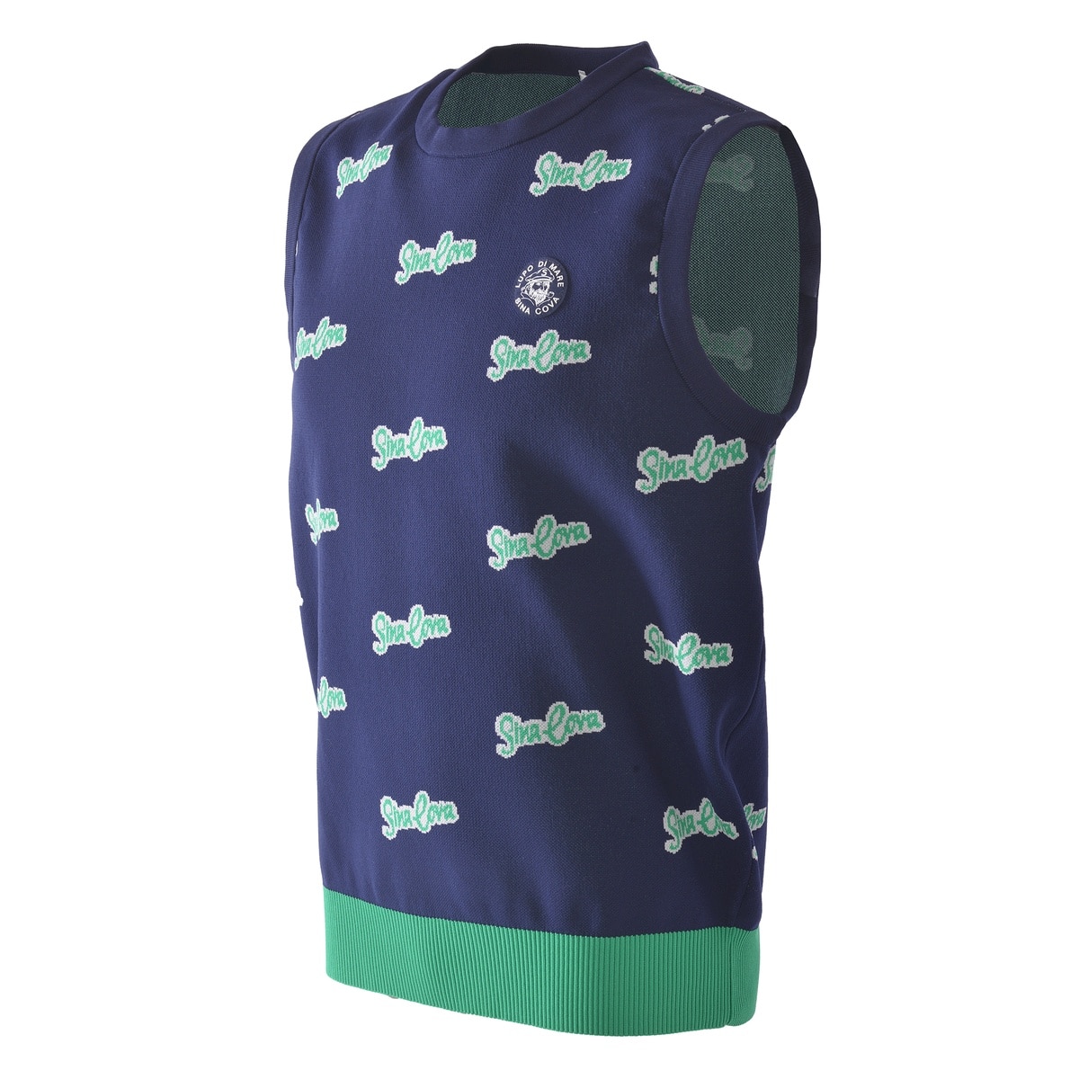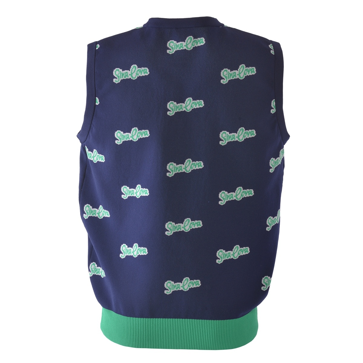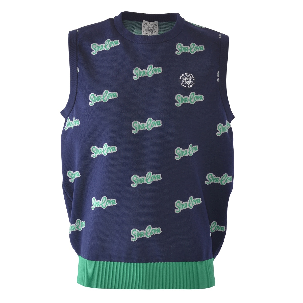 「SINA COVA」ロゴを総柄でデザインしたニットベストです。