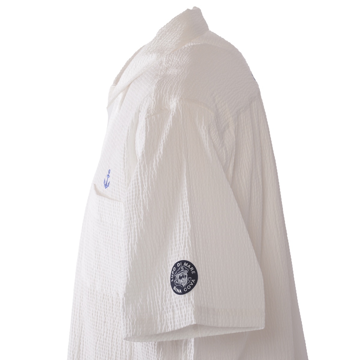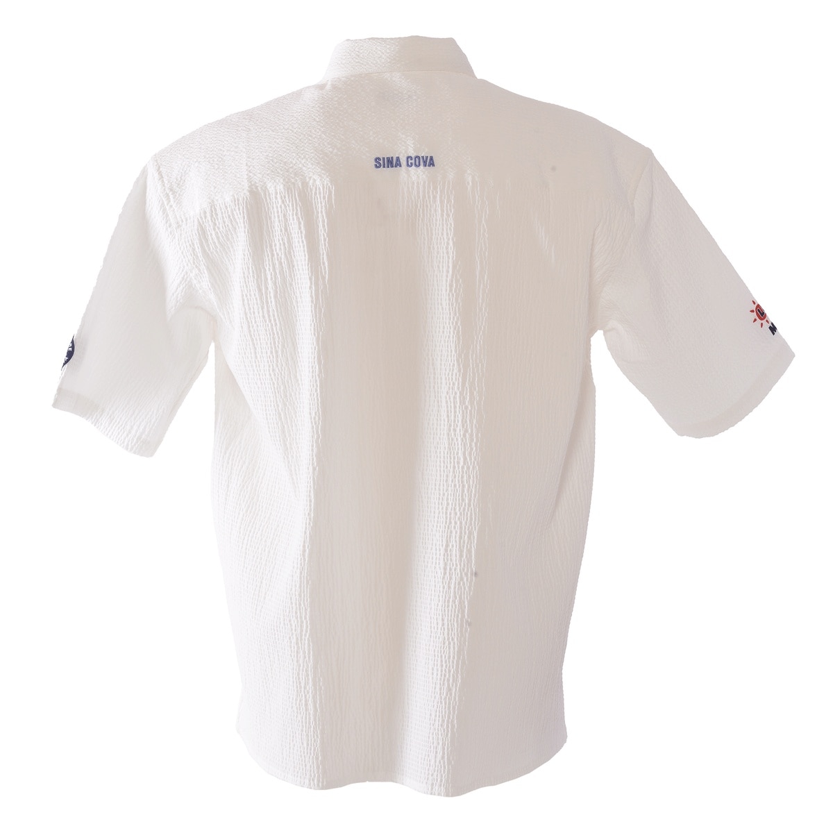 胸元にイカリの刺繍、バックに「SINA COVA」、袖に「LUPO DI MARE」のプリントをデザインしたオープンカラー半袖シャツです。トルコメーカーACARで高品質なコットンを使用して作成されており、天然素材のナチュラルな風合いです。ボコボコとした生地表情のユニークさに加え高温多湿な日本の夏でも肌離れの良さ、天然素材の吸湿性の高さにより汗をかいても快適な素材です。・ゴルフの行き帰りスタイル・開襟シャツ・ウォシャブル対応でアイロン要らずのイージーケア・ゴルフの行き帰りの羽織ものとしてもお勧め