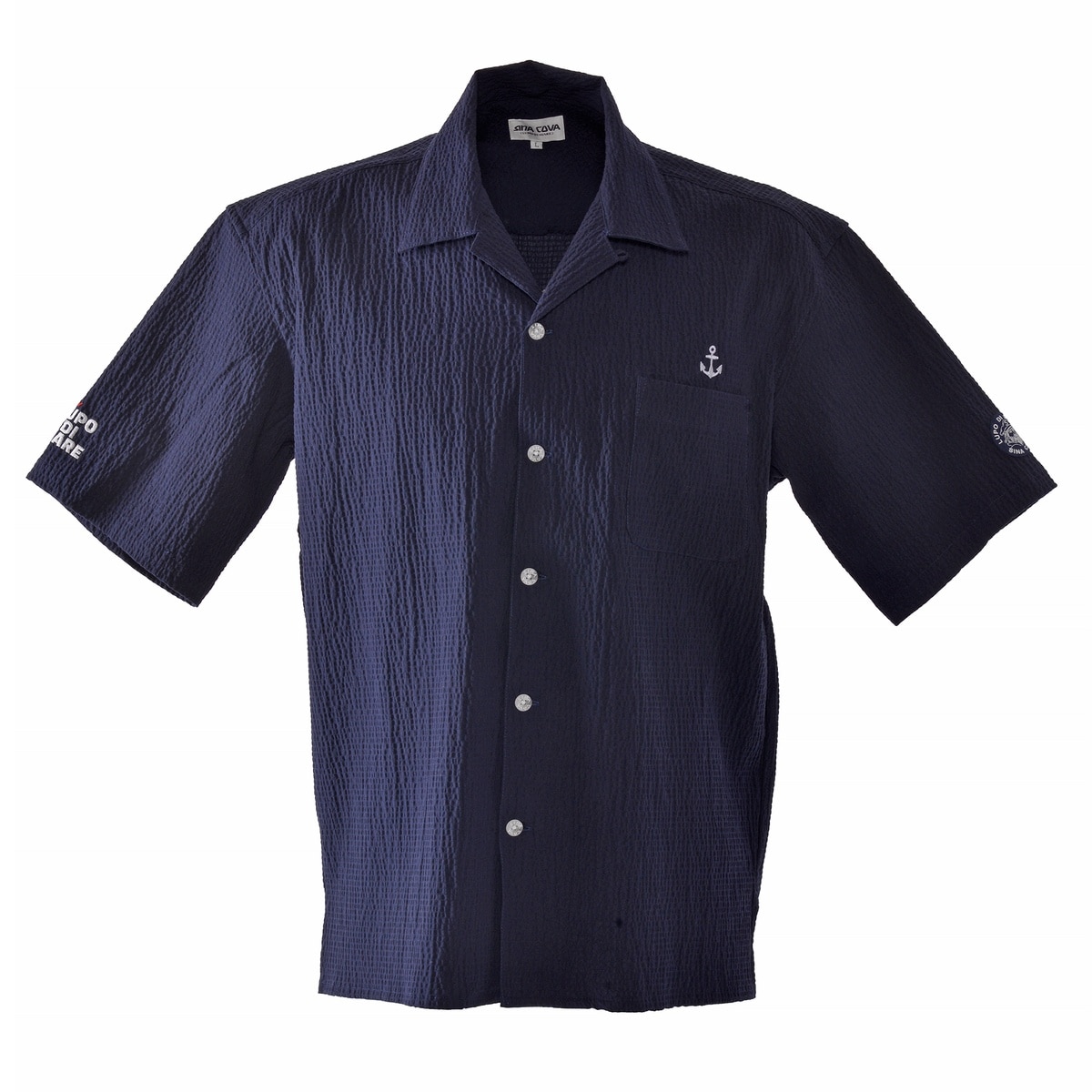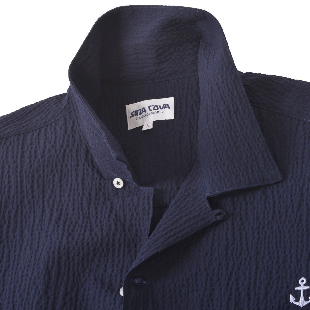 胸元にイカリの刺繍、バックに「SINA COVA」、袖に「LUPO DI MARE」のプリントをデザインしたオープンカラー半袖シャツです。トルコメーカーACARで高品質なコットンを使用して作成されており、天然素材のナチュラルな風合いです。ボコボコとした生地表情のユニークさに加え高温多湿な日本の夏でも肌離れの良さ、天然素材の吸湿性の高さにより汗をかいても快適な素材です。・ゴルフの行き帰りスタイル・開襟シャツ・ウォシャブル対応でアイロン要らずのイージーケア・ゴルフの行き帰りの羽織ものとしてもお勧め