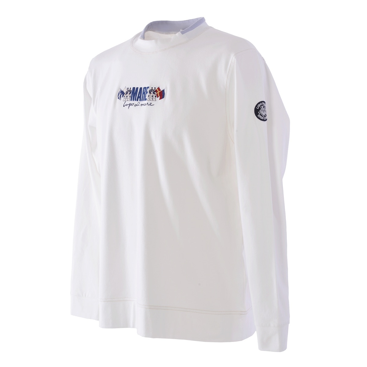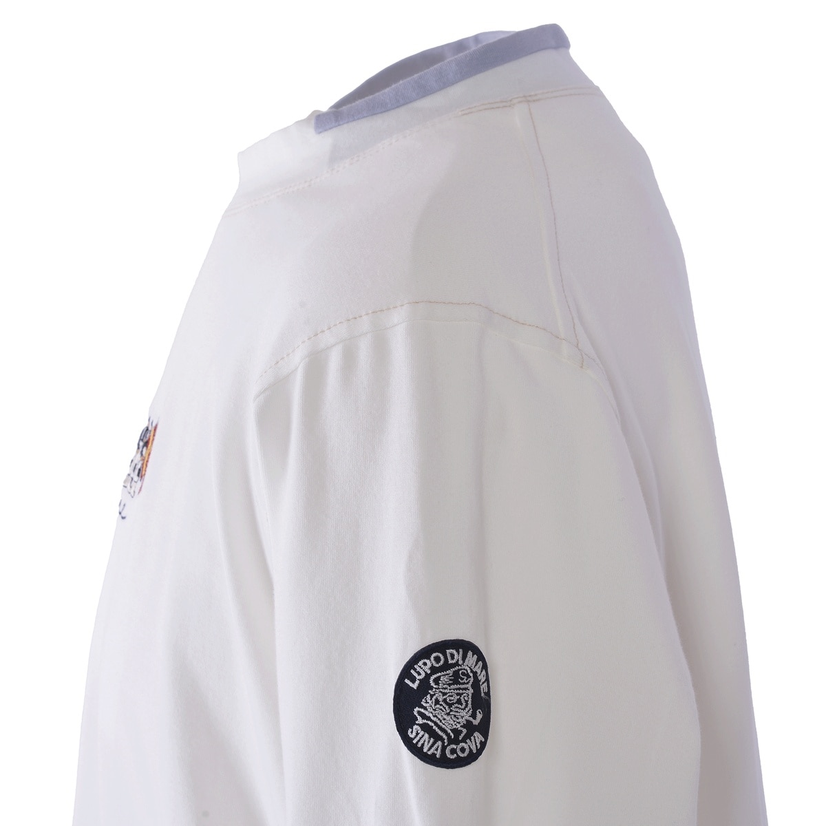 オーガニックコットン(農薬や化学肥料を使わない農地で育て上げた綿)を使用した素材を使い、ややスタンドネックの衿を切替の配色でデザインしたTシャツです。肌に優しいオーガニックコットンとややストレッチがある素材のため、着脱にもストレスフリーの感覚で着用していただけます。また、左胸にフラッグとメッセージ系の文字の刺繍を入れています。